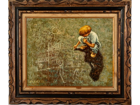 Oil On Canvas Chalk Scene Signed N. Field #440693. Black Rock Galleries provides high end estate liquidation services through online estate auctions and a 50,000 sq ft designer showroom. estate liquidator, estate sale, online auction, antiques, fine art, liquidation, clean outs, auction, consignment, interior design, fine jewelry, collectibles, appraisals, estate appraisals, estate services, decor, furniture, furniture consignment, antique center, consignment shop. We offer appraisal services and specialize in fine art, jewelry, antiques and decorative arts. Sell with us. Black Rock Galleries is the tri-state's largest estate liquidator serving New England and the greater New York City area. We are the trusted source for expert appraisals, auction services, estate sales, and consignments. Black Rock Galleries is the east coast's largest and most trusted estate liquidator, with locations in Connecticut, greater Boston, MA and Raleigh, NC, Fairfield, Southport, Apex, TX. We are the best source for expert appraisals, auction services, estate sales and consignments. We have served thousands of families and estates with compassion, professionalism and expertise. BRG works with attorneys, executors, realtors and families to bring the greatest return on personal and estate property in the current market. Our unique combination of services make us the easy choice to get the job done in a timely and stress-free manner. We are with you from the initial consultation to the final clean out. Our house-built online auction software platform offers clients a dynamic approach to liquidating their personal property. This venue is most successful in bringing the best return with the least amount of disruption for our clients. See our services page for a complete description of this offering. Oil On Canvas Chalk Scene Signed N. Field #440693