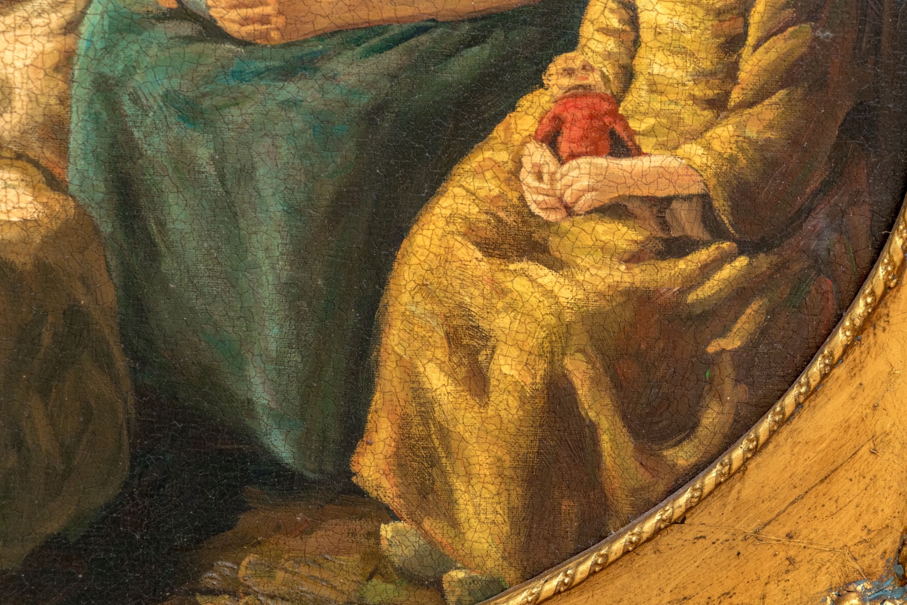 Craquelure with minor losses and wear commensurate with age and display but overall still presents beautifully.