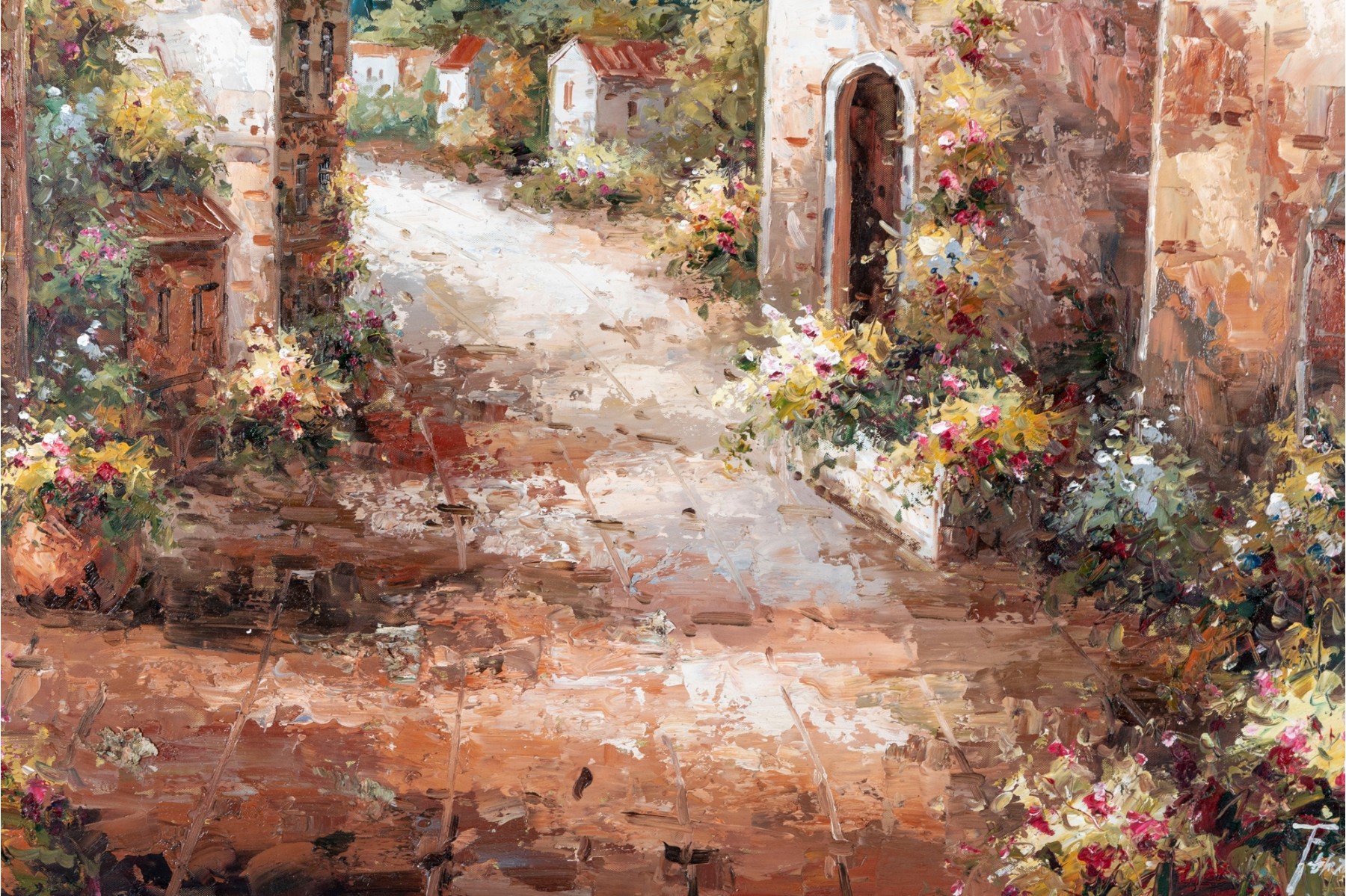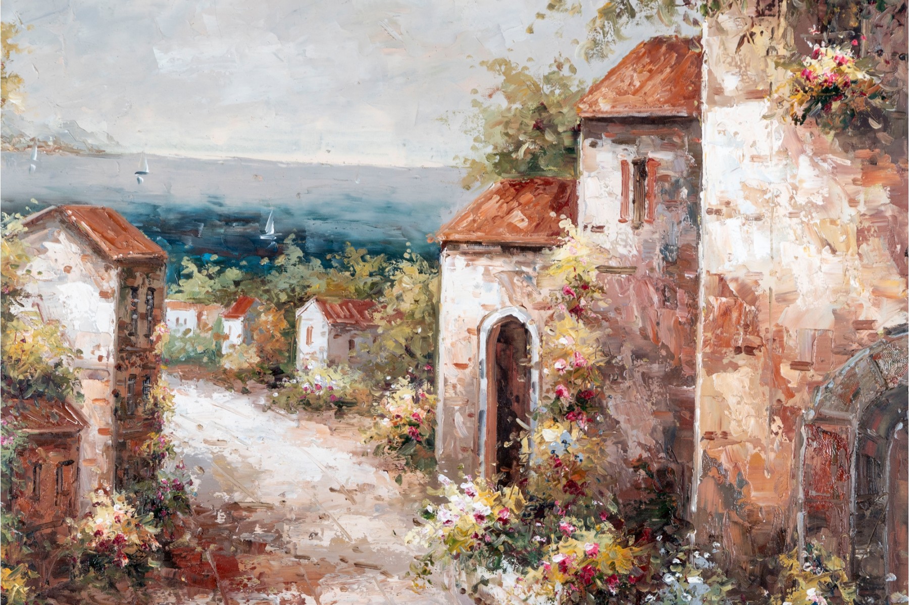 Oil On Canvas Tuscan Village Painting — Signed #450611. Black Rock Galleries provides high end estate liquidation services through online estate auctions and a 50,000 sq ft designer showroom. estate liquidator, estate sale, online auction, antiques, fine art, liquidation, clean outs, auction, consignment, interior design, fine jewelry, collectibles, appraisals, estate appraisals, estate services, decor, furniture, furniture consignment, antique center, consignment shop. We offer appraisal services and specialize in fine art, jewelry, antiques and decorative arts. Sell with us. Black Rock Galleries is the tri-state's largest estate liquidator serving New England and the greater New York City area. We are the trusted source for expert appraisals, auction services, estate sales, and consignments. Black Rock Galleries is the east coast's largest and most trusted estate liquidator, with locations in Connecticut, greater Boston, MA and Raleigh, NC, Fairfield, Southport, Apex, TX. We are the best source for expert appraisals, auction services, estate sales and consignments. We have served thousands of families and estates with compassion, professionalism and expertise. BRG works with attorneys, executors, realtors and families to bring the greatest return on personal and estate property in the current market. Our unique combination of services make us the easy choice to get the job done in a timely and stress-free manner. We are with you from the initial consultation to the final clean out. Our house-built online auction software platform offers clients a dynamic approach to liquidating their personal property. This venue is most successful in bringing the best return with the least amount of disruption for our clients. See our services page for a complete description of this offering. Oil On Canvas Tuscan Village Painting — Signed #450611
