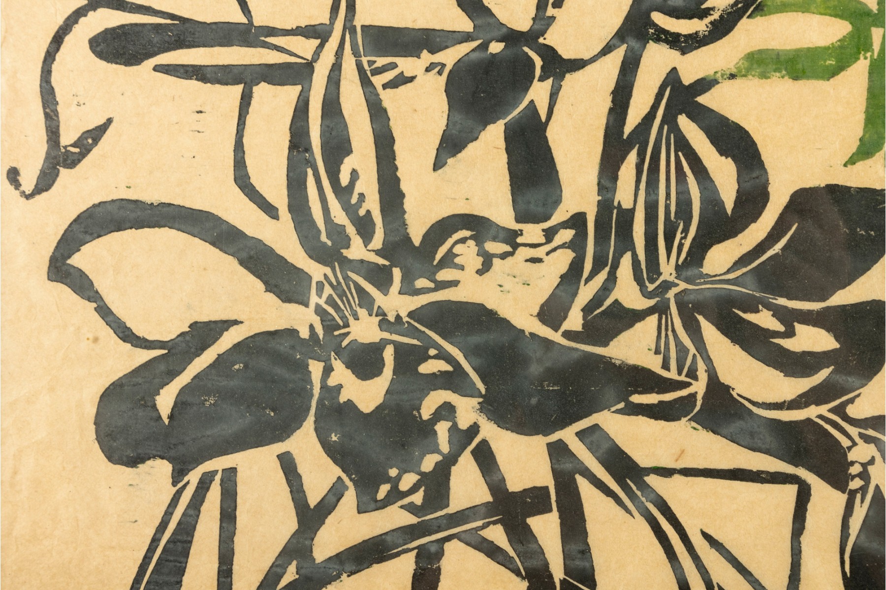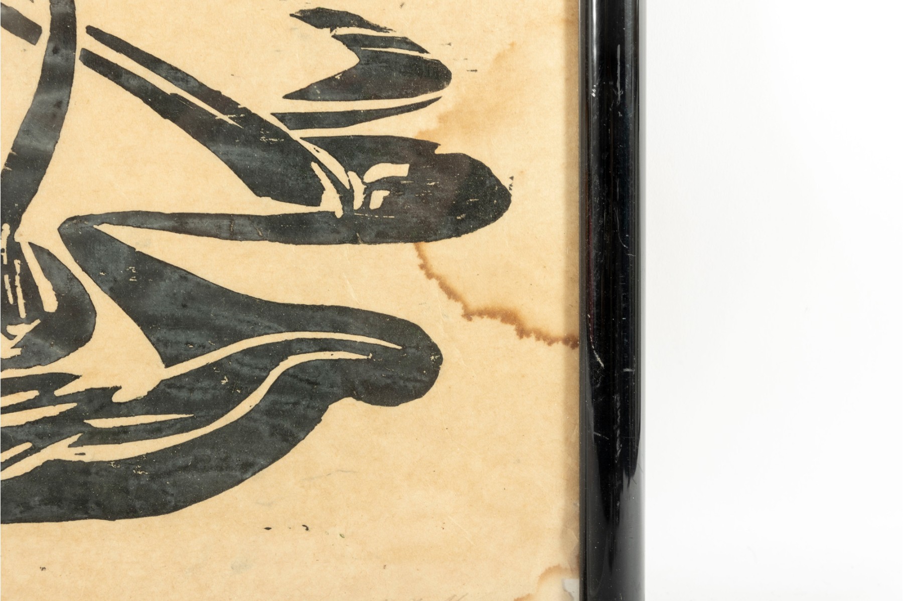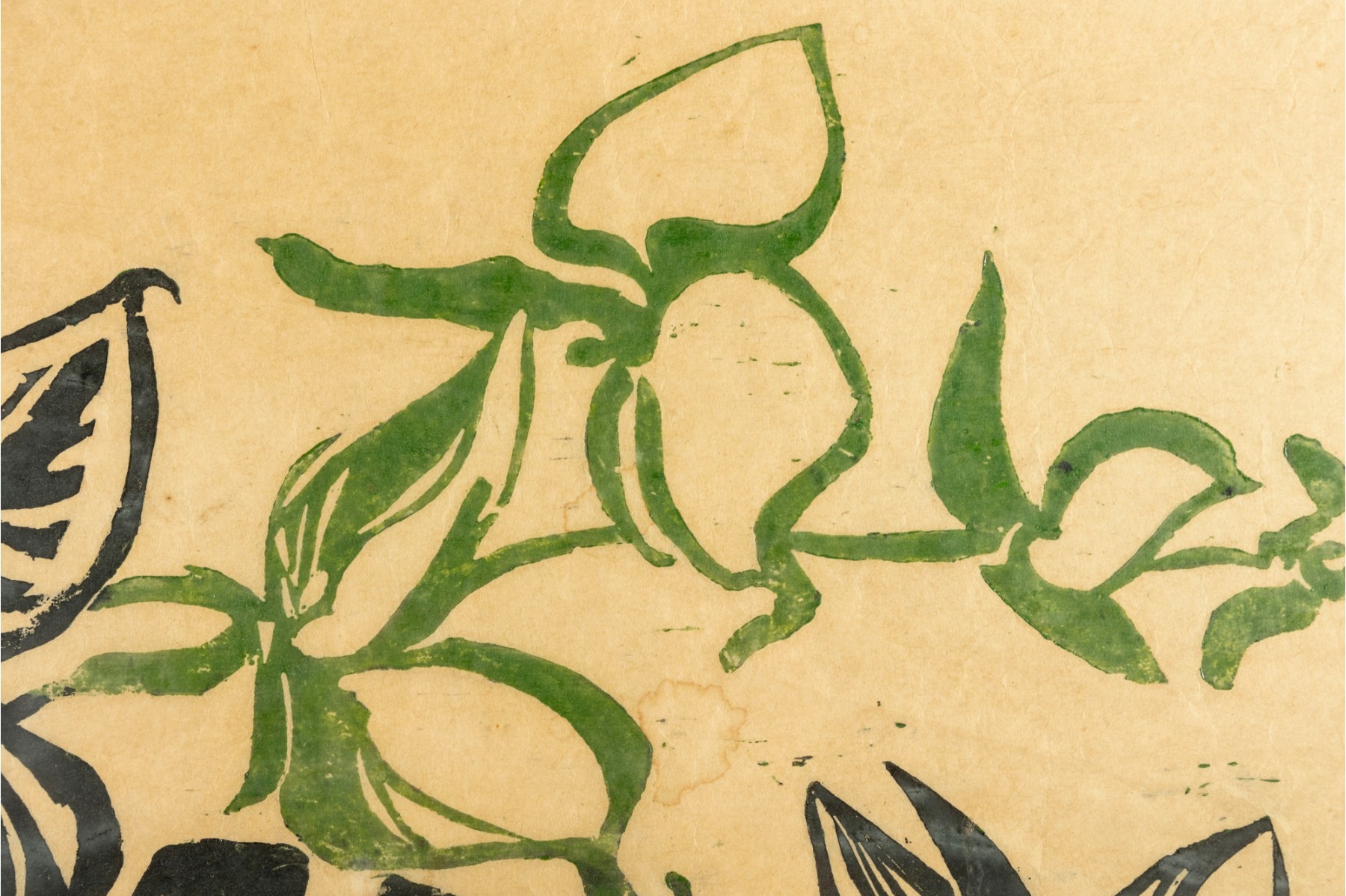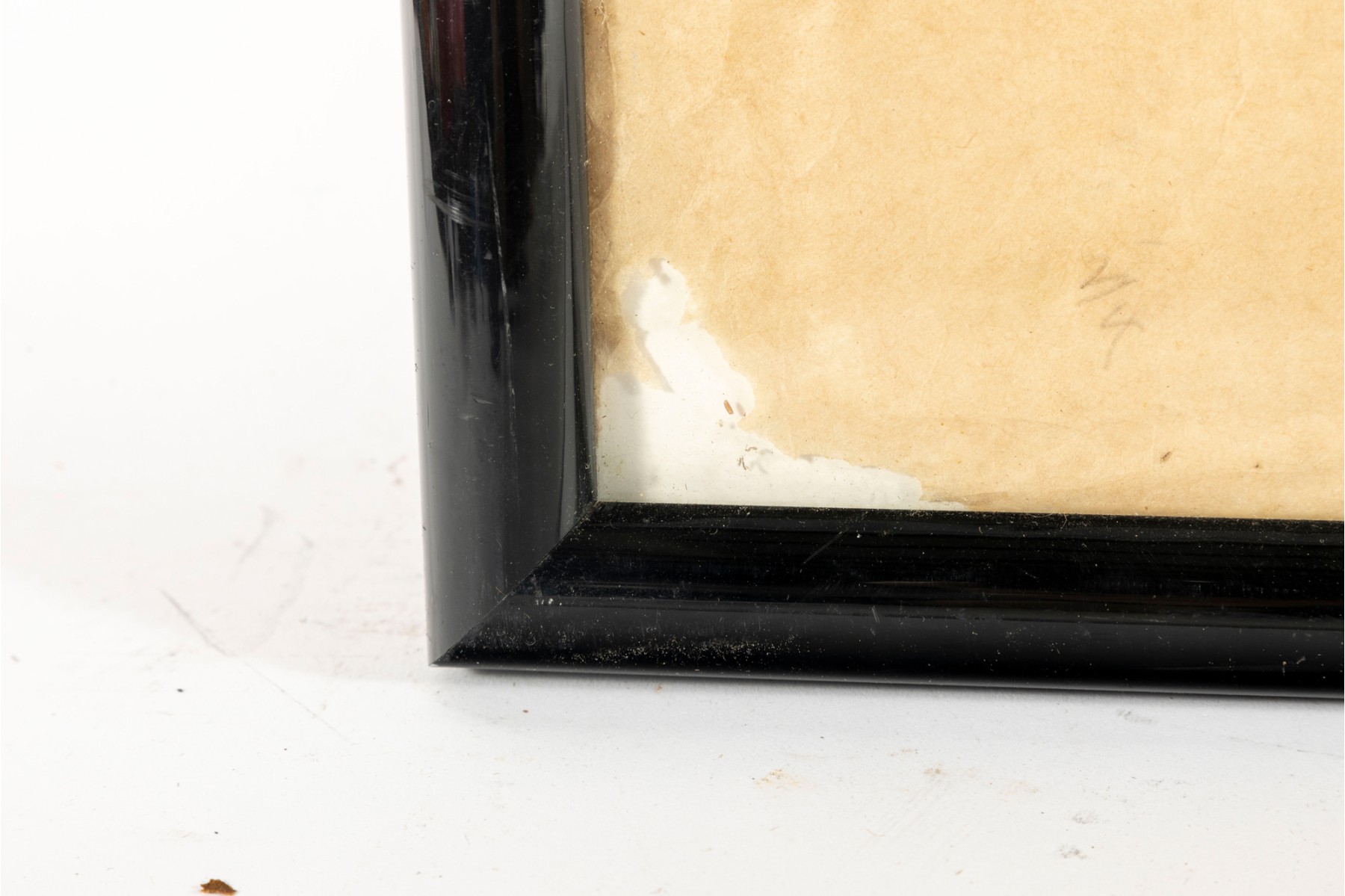 Tear to rice paper on bottom left corner. Water damage present.