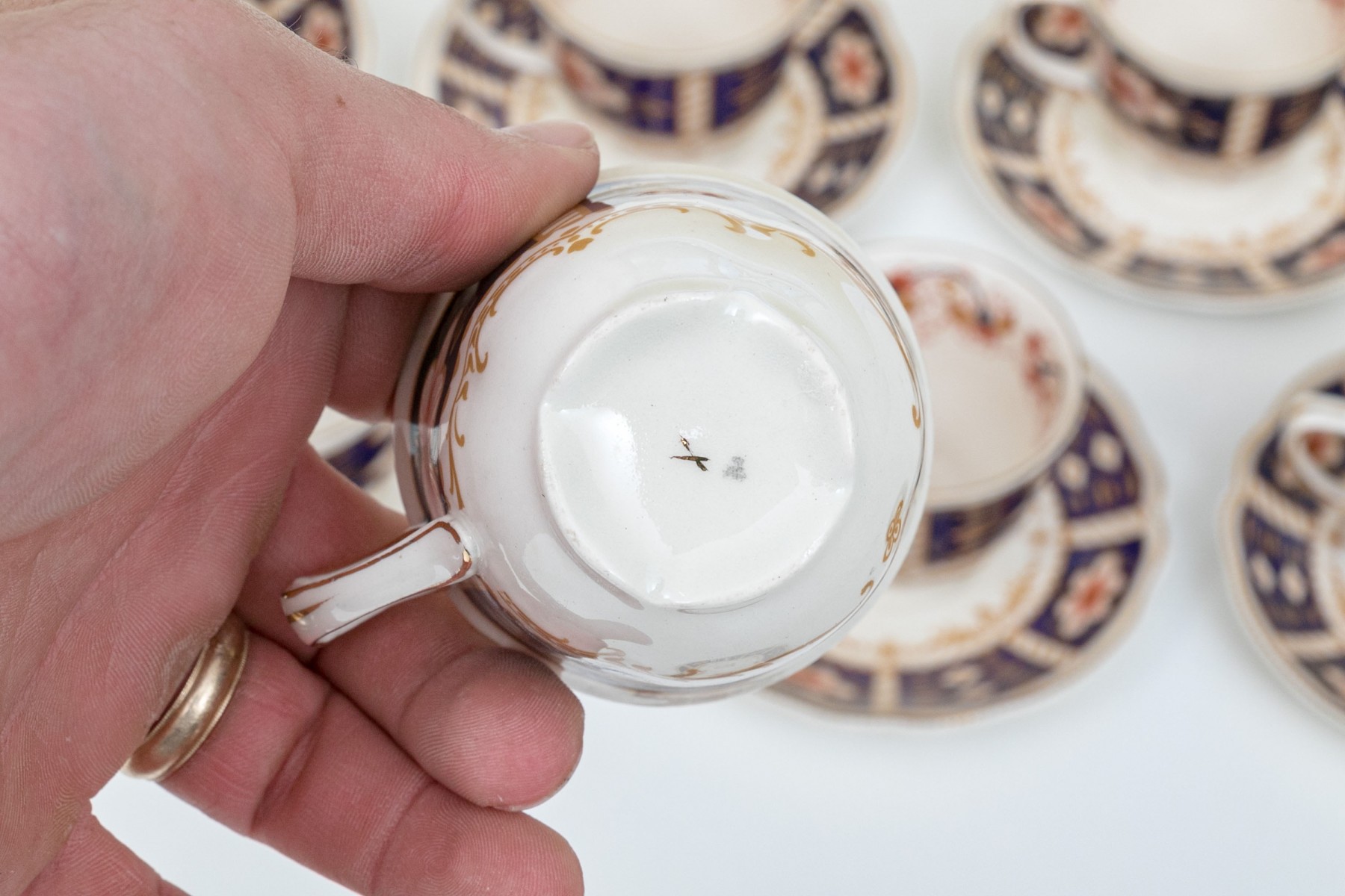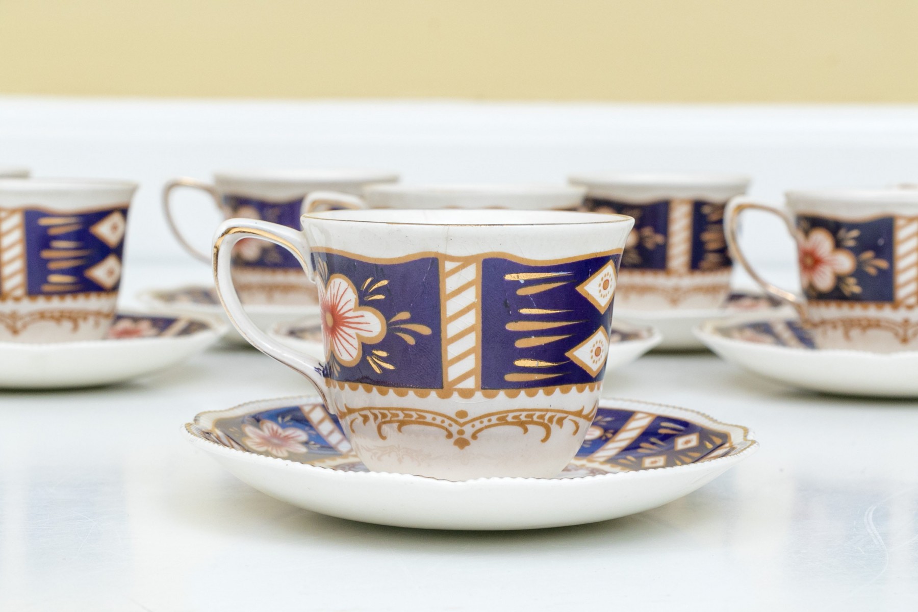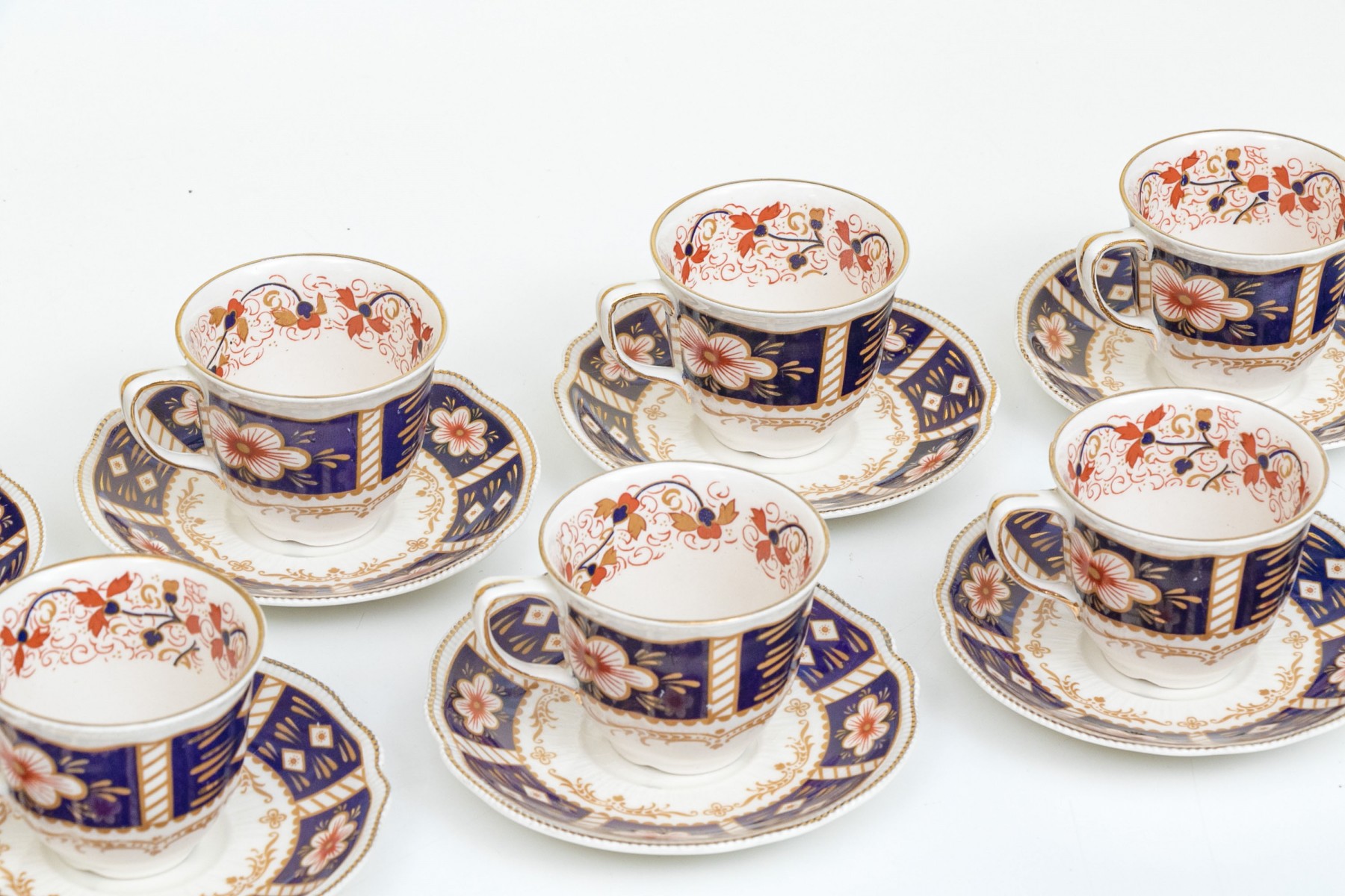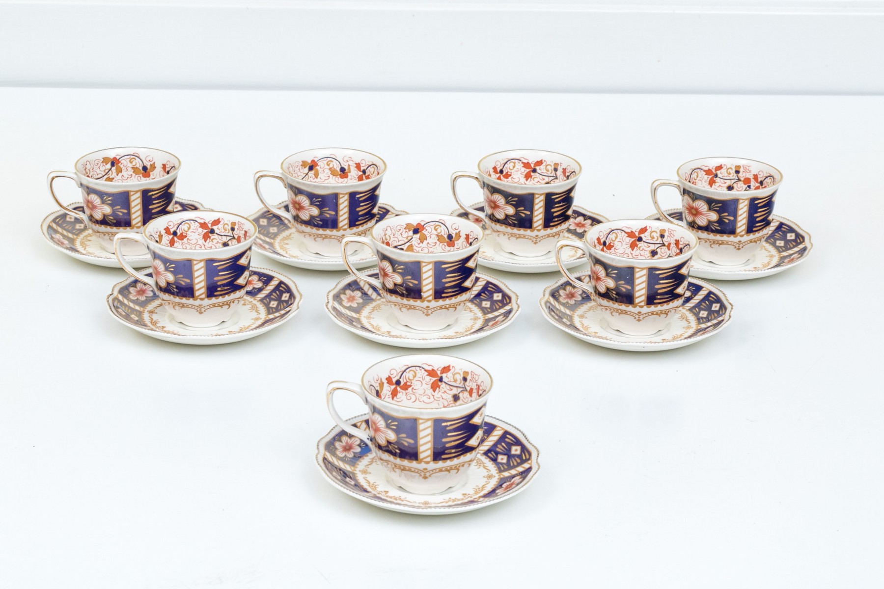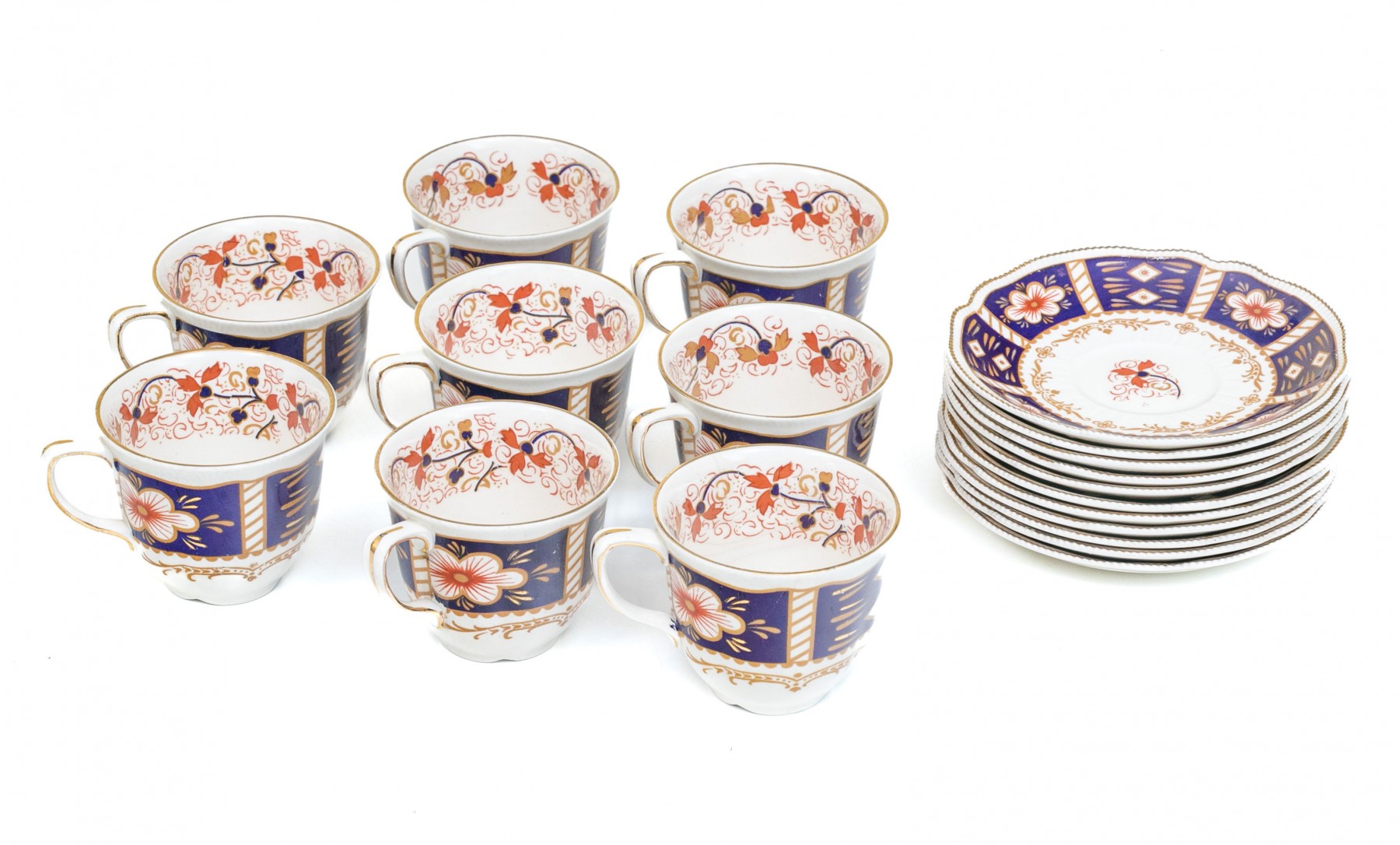 Including 8 tea cups and 11 saucers in a beautiful floral and gilt rimmed design.