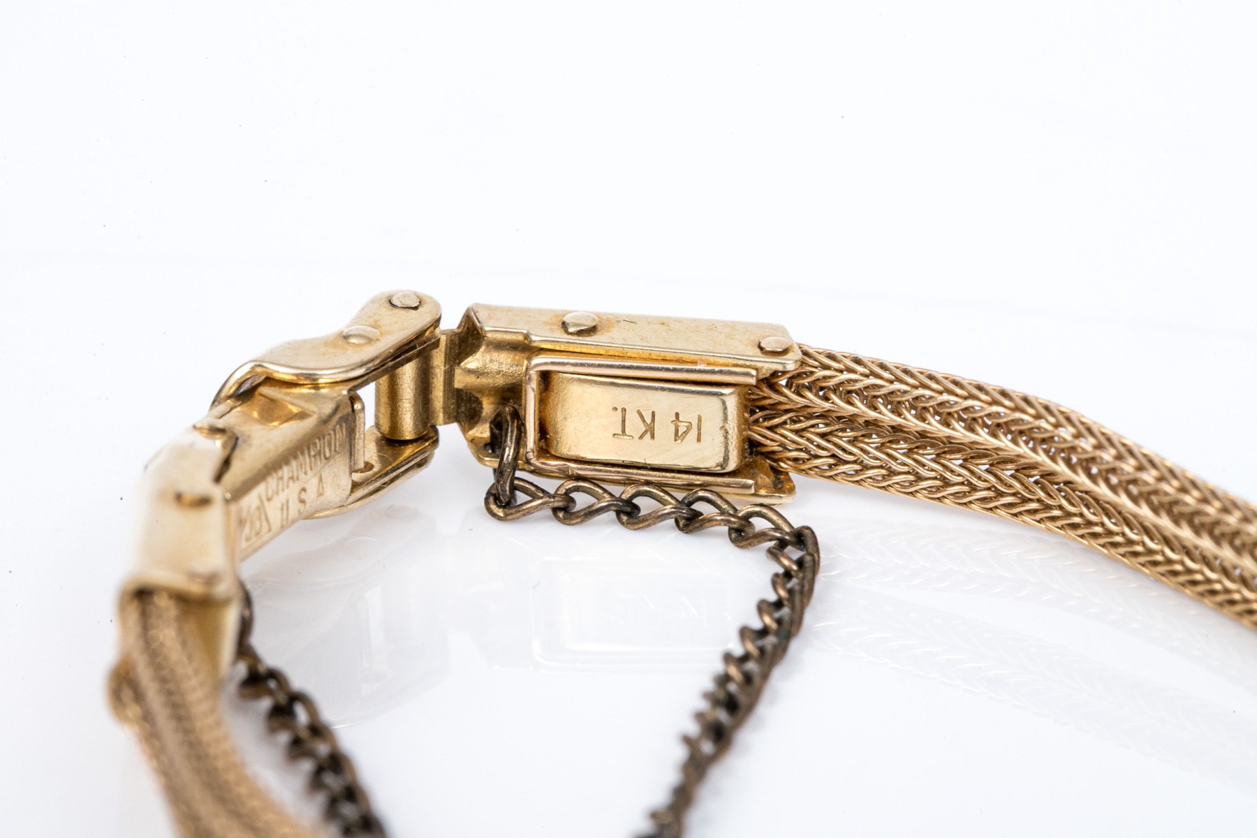 Marks: Omega, 14k, clasp 14k; mesh bracelet tests 14k