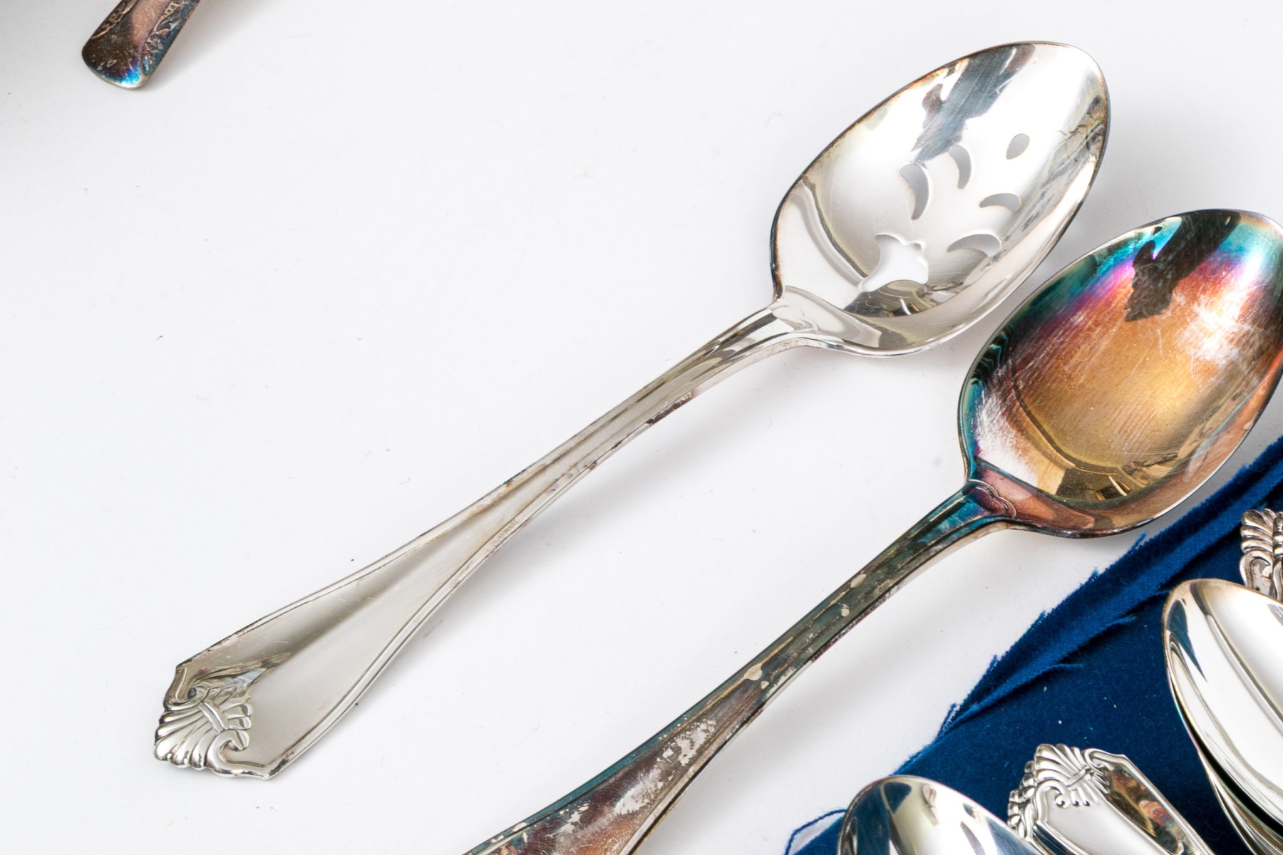 Oneida "King James" Silver Plated 64 Piece Flatware Service #465004. Black Rock Galleries provides high end estate liquidation services through online estate auctions and a 50,000 sq ft designer showroom. estate liquidator, estate sale, online auction, antiques, fine art, liquidation, clean outs, auction, consignment, interior design, fine jewelry, collectibles, appraisals, estate appraisals, estate services, decor, furniture, furniture consignment, antique center, consignment shop. We offer appraisal services and specialize in fine art, jewelry, antiques and decorative arts. Sell with us. Black Rock Galleries is the tri-state's largest estate liquidator serving New England and the greater New York City area. We are the trusted source for expert appraisals, auction services, estate sales, and consignments. Black Rock Galleries is the east coast's largest and most trusted estate liquidator, with locations in Connecticut, greater Boston, MA and Raleigh, NC, Fairfield, Southport, Apex, TX. We are the best source for expert appraisals, auction services, estate sales and consignments. We have served thousands of families and estates with compassion, professionalism and expertise. BRG works with attorneys, executors, realtors and families to bring the greatest return on personal and estate property in the current market. Our unique combination of services make us the easy choice to get the job done in a timely and stress-free manner. We are with you from the initial consultation to the final clean out. Our house-built online auction software platform offers clients a dynamic approach to liquidating their personal property. This venue is most successful in bringing the best return with the least amount of disruption for our clients. See our services page for a complete description of this offering. Oneida "King James" Silver Plated 64 Piece Flatware Service #465004