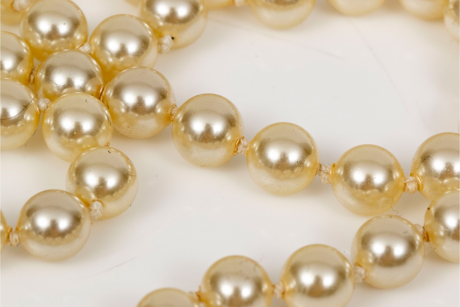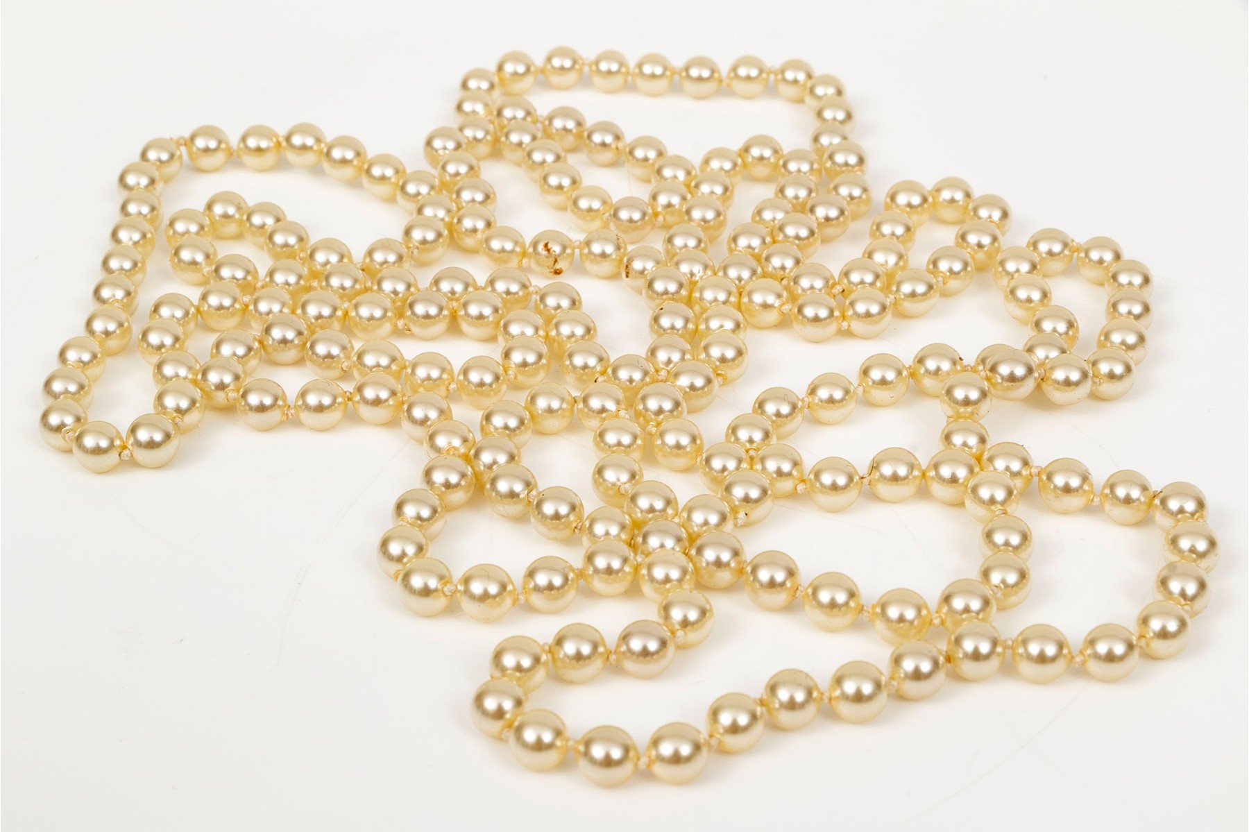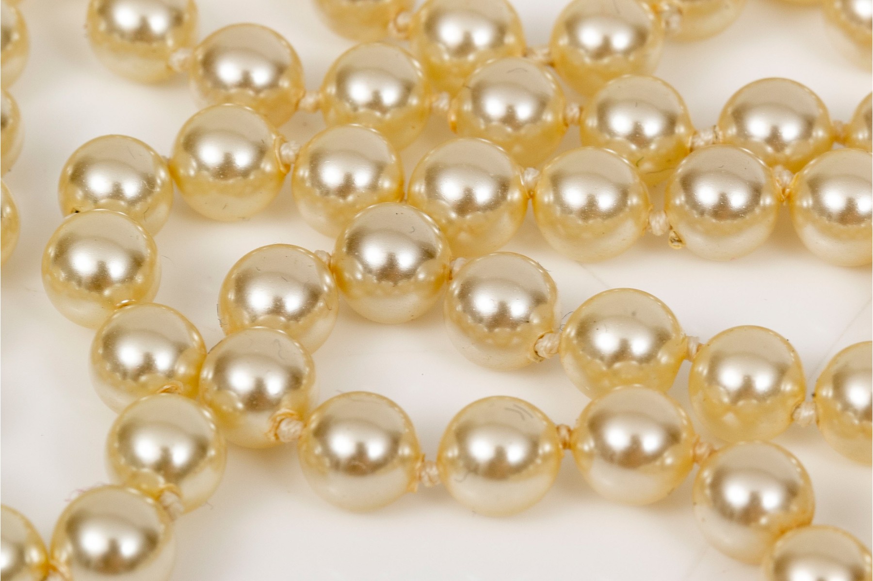 An eternity strand of ivory white faux pearls. Faux pearls average 6.3mm.