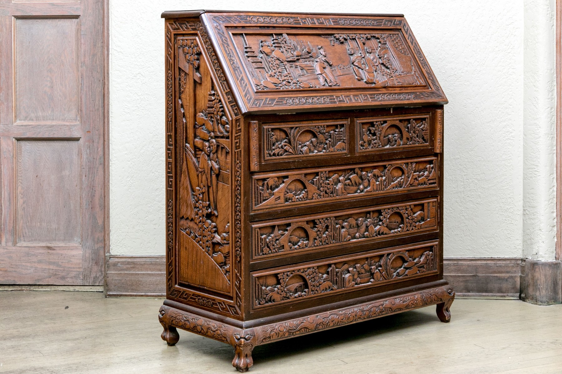 Ornate Carved Chinoiserie Secretary #340457. Black Rock Galleries provides high end estate liquidation services through online estate auctions and a 50,000 sq ft designer showroom. estate liquidator, estate sale, online auction, antiques, fine art, liquidation, clean outs, auction, consignment, interior design, fine jewelry, collectibles, appraisals, estate appraisals, estate services, decor, furniture, furniture consignment, antique center, consignment shop. We offer appraisal services and specialize in fine art, jewelry, antiques and decorative arts. Sell with us. Black Rock Galleries is the tri-state's largest estate liquidator serving New England and the greater New York City area. We are the trusted source for expert appraisals, auction services, estate sales, and consignments. Black Rock Galleries is the east coast's largest and most trusted estate liquidator, with locations in Connecticut, greater Boston, MA and Raleigh, NC, Fairfield, Southport, Apex, TX. We are the best source for expert appraisals, auction services, estate sales and consignments. We have served thousands of families and estates with compassion, professionalism and expertise. BRG works with attorneys, executors, realtors and families to bring the greatest return on personal and estate property in the current market. Our unique combination of services make us the easy choice to get the job done in a timely and stress-free manner. We are with you from the initial consultation to the final clean out. Our house-built online auction software platform offers clients a dynamic approach to liquidating their personal property. This venue is most successful in bringing the best return with the least amount of disruption for our clients. See our services page for a complete description of this offering. Ornate Carved Chinoiserie Secretary #340457
