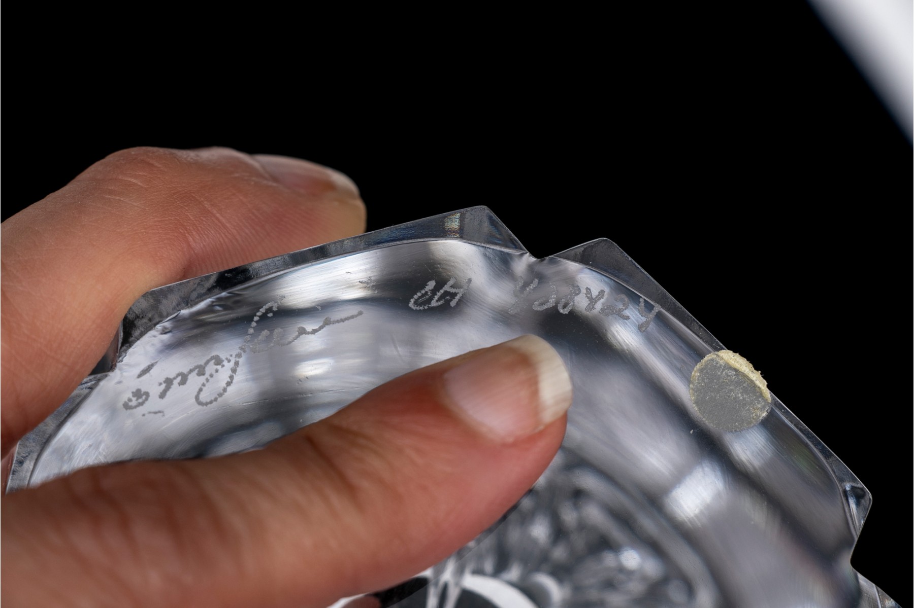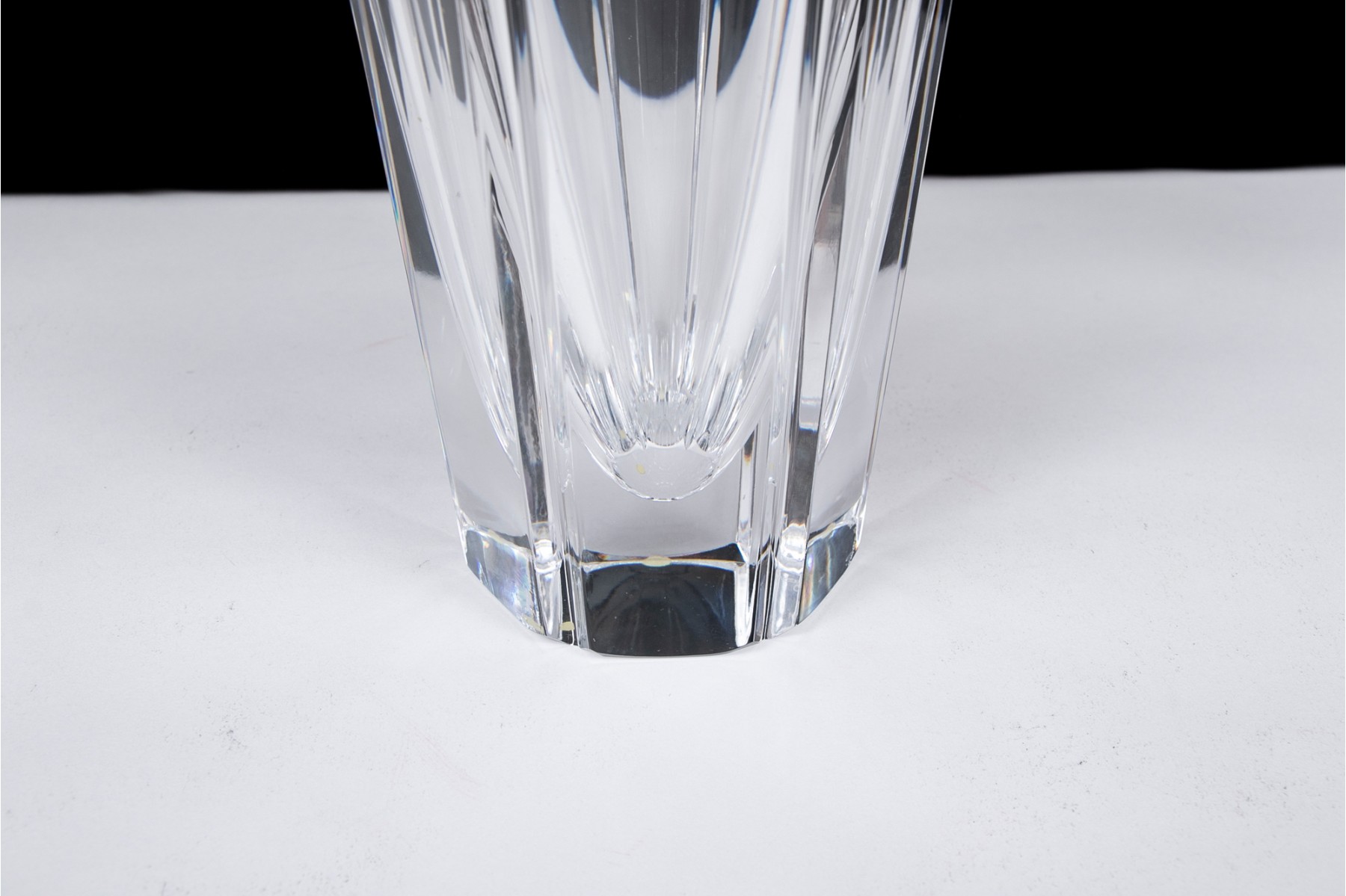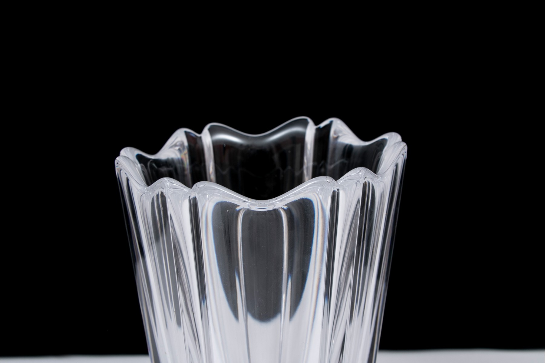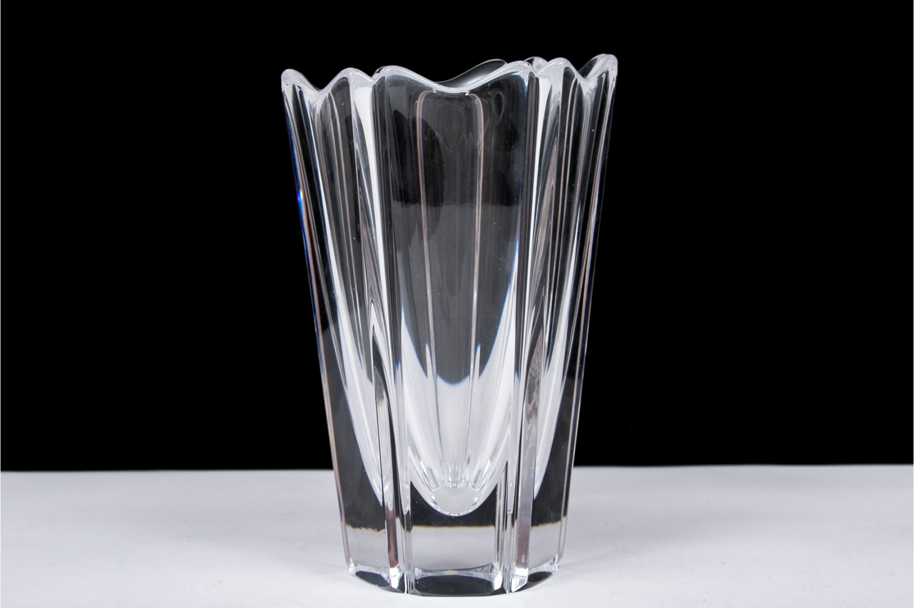 Orrefors crystal scalloped and fluted vase, signed on verso LH for Lars Hellsten.