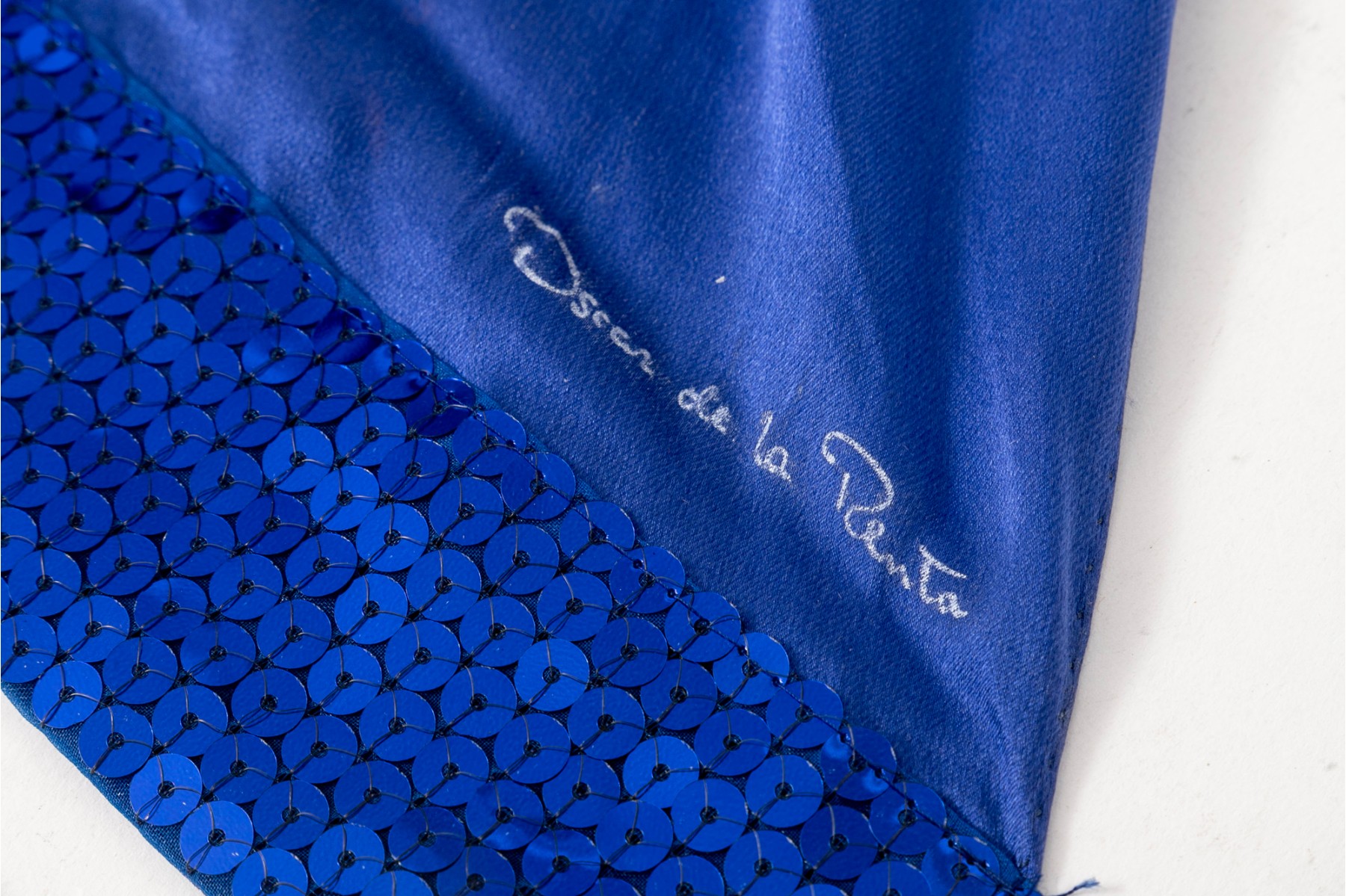 Oscar De La Renta - Blue Sequin silk scarf, vintage