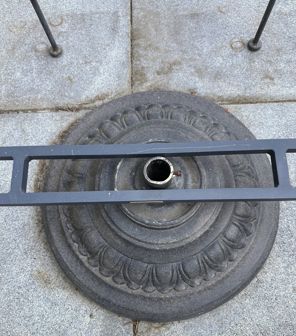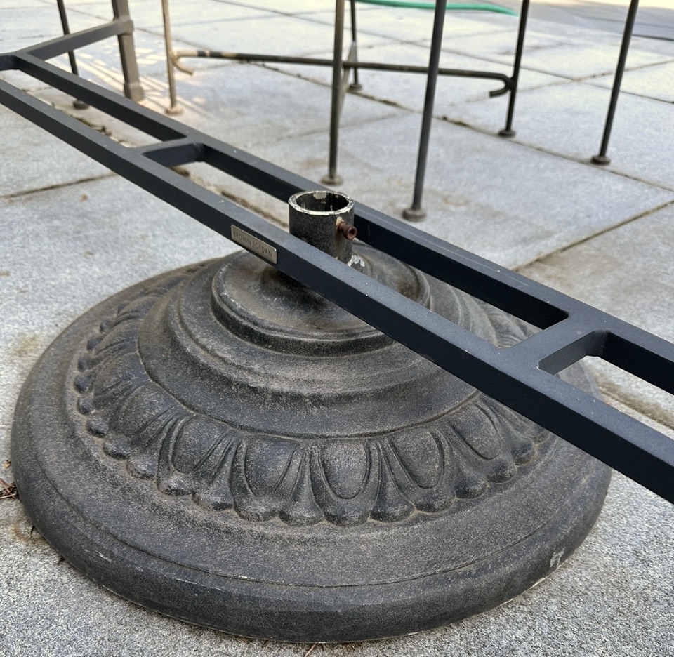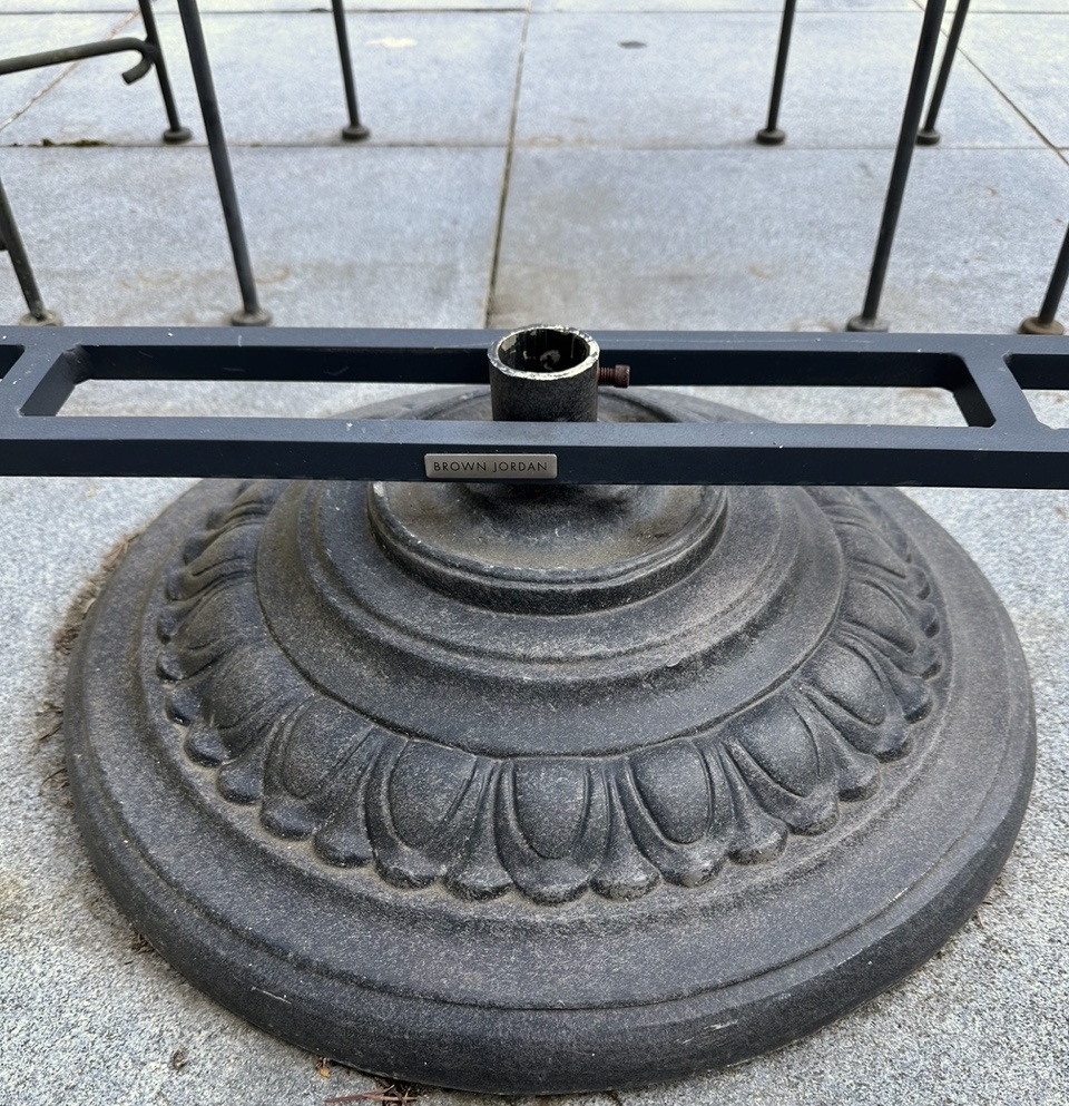 Umbrella stand made from cast iron. Will fit most outdoor patio umbrellas.