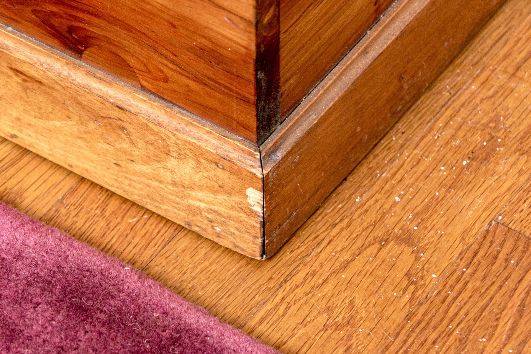 Good condition, some surface scuffs and scratches with slight paint spots near the foot of the chest.