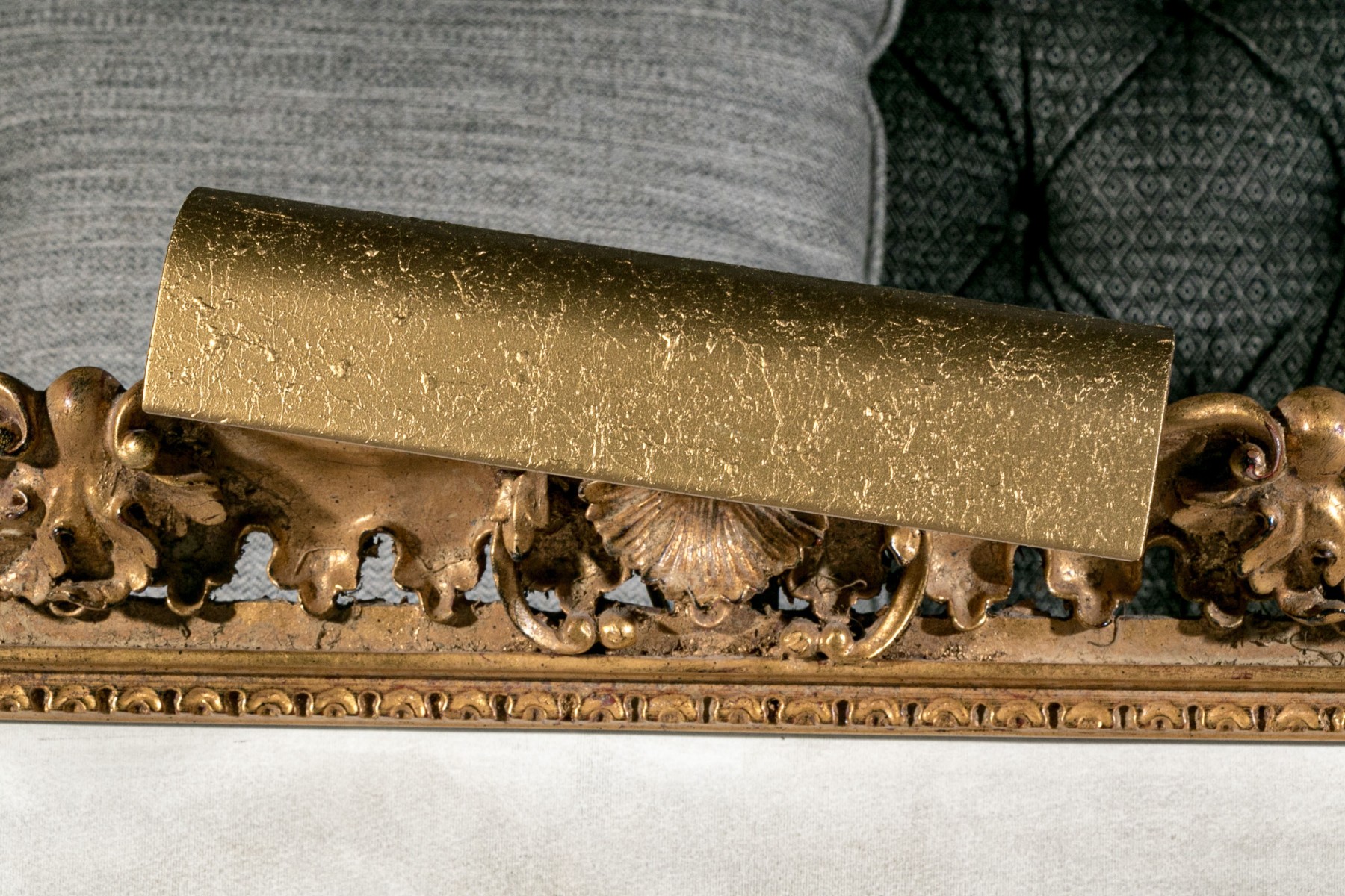 Presented in an elaborately carved gilt finished frame with spotlight.
