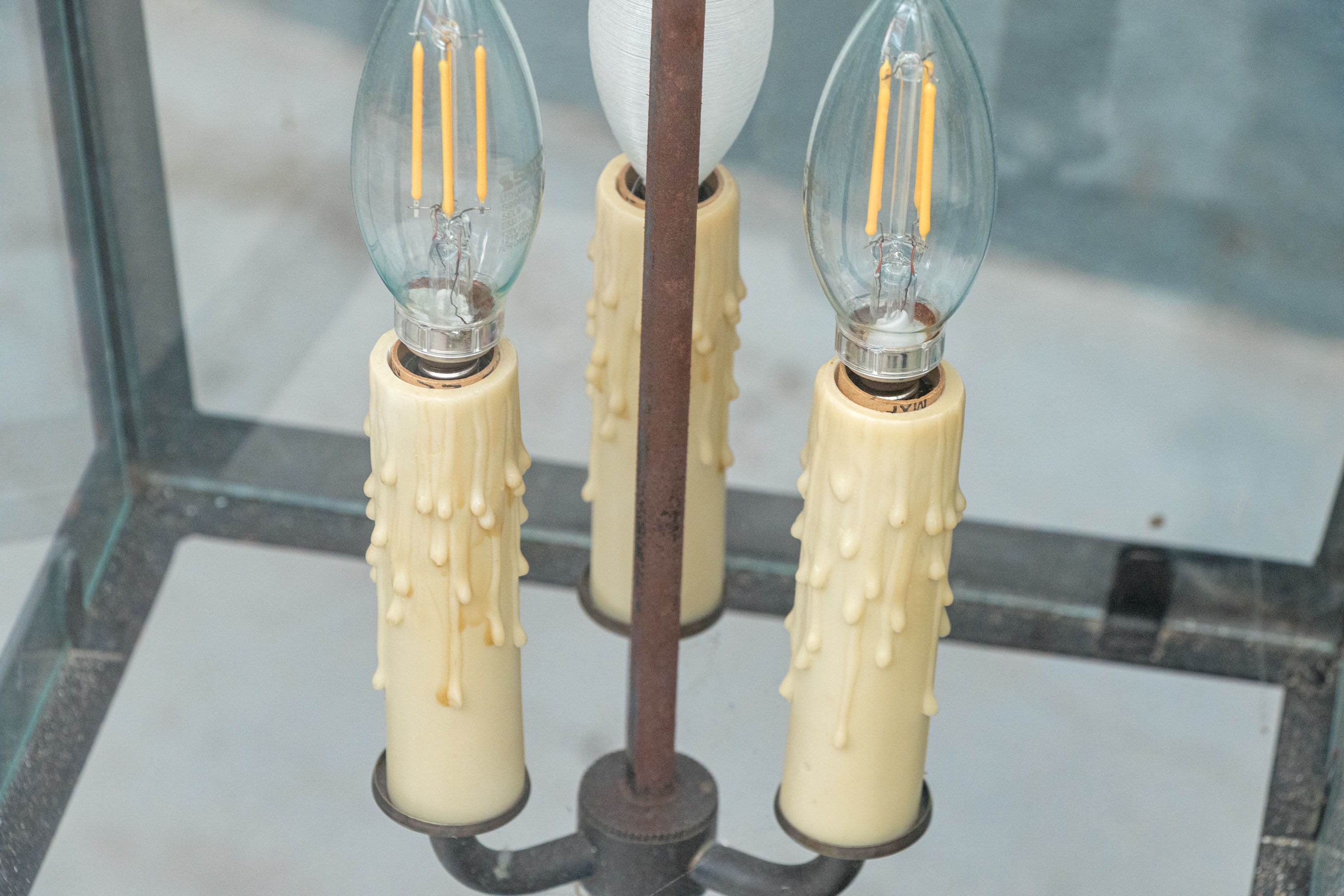 Condition: Please review the detail photos. The are a few minor spots on the upper green leaves. Overall good condition for the elegant fixture.