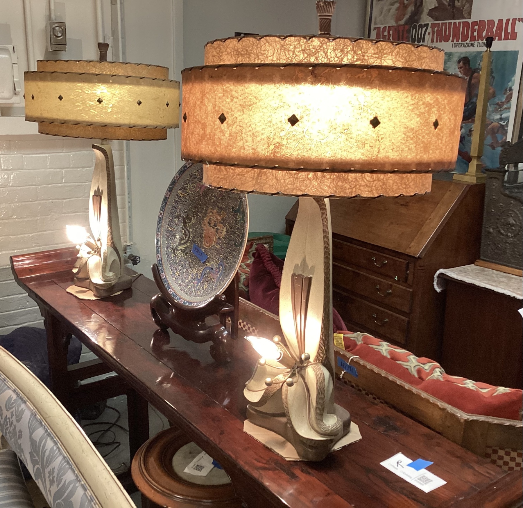 Pair Of 1950's Atomic Plaster Lamps With Fiberglass Shades #472027. Black Rock Galleries provides high end estate liquidation services through online estate auctions and a 50,000 sq ft designer showroom. estate liquidator, estate sale, online auction, antiques, fine art, liquidation, clean outs, auction, consignment, interior design, fine jewelry, collectibles, appraisals, estate appraisals, estate services, decor, furniture, furniture consignment, antique center, consignment shop. We offer appraisal services and specialize in fine art, jewelry, antiques and decorative arts. Sell with us. Black Rock Galleries is the tri-state's largest estate liquidator serving New England and the greater New York City area. We are the trusted source for expert appraisals, auction services, estate sales, and consignments. Black Rock Galleries is the east coast's largest and most trusted estate liquidator, with locations in Connecticut, greater Boston, MA and Raleigh, NC, Fairfield, Southport, Apex, TX. We are the best source for expert appraisals, auction services, estate sales and consignments. We have served thousands of families and estates with compassion, professionalism and expertise. BRG works with attorneys, executors, realtors and families to bring the greatest return on personal and estate property in the current market. Our unique combination of services make us the easy choice to get the job done in a timely and stress-free manner. We are with you from the initial consultation to the final clean out. Our house-built online auction software platform offers clients a dynamic approach to liquidating their personal property. This venue is most successful in bringing the best return with the least amount of disruption for our clients. See our services page for a complete description of this offering. Pair Of 1950's Atomic Plaster Lamps With Fiberglass Shades #472027