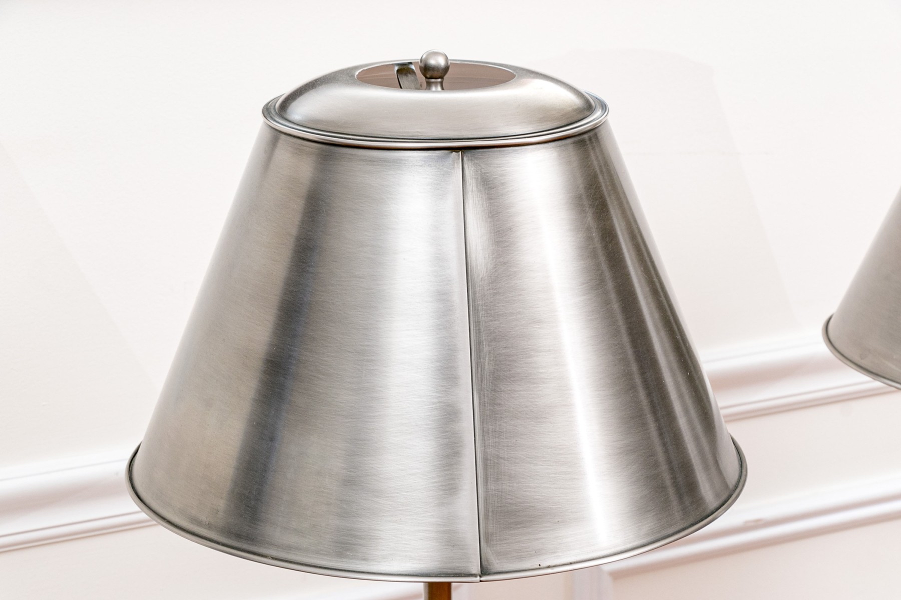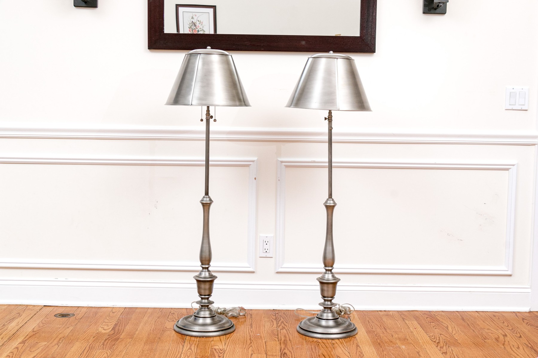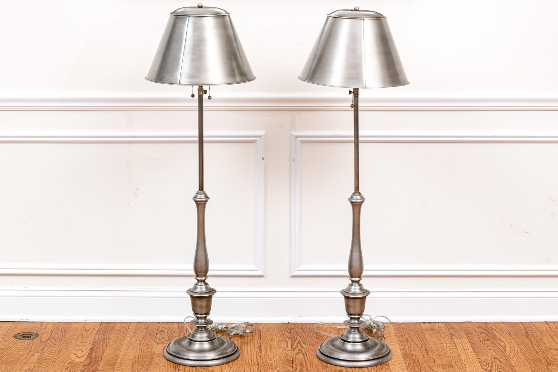 Great pair of Chrome finish floor lamps with cute metallic shades.
