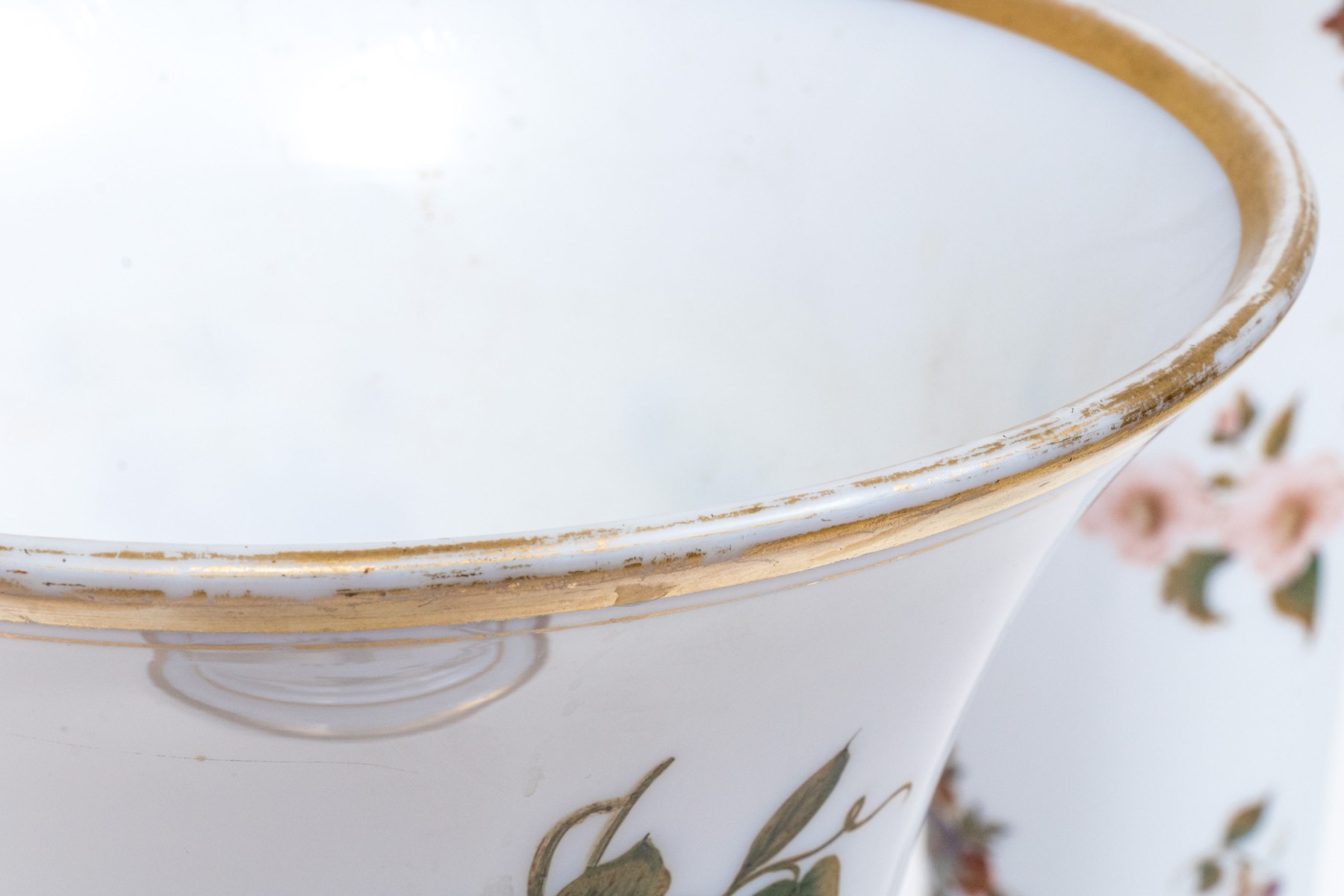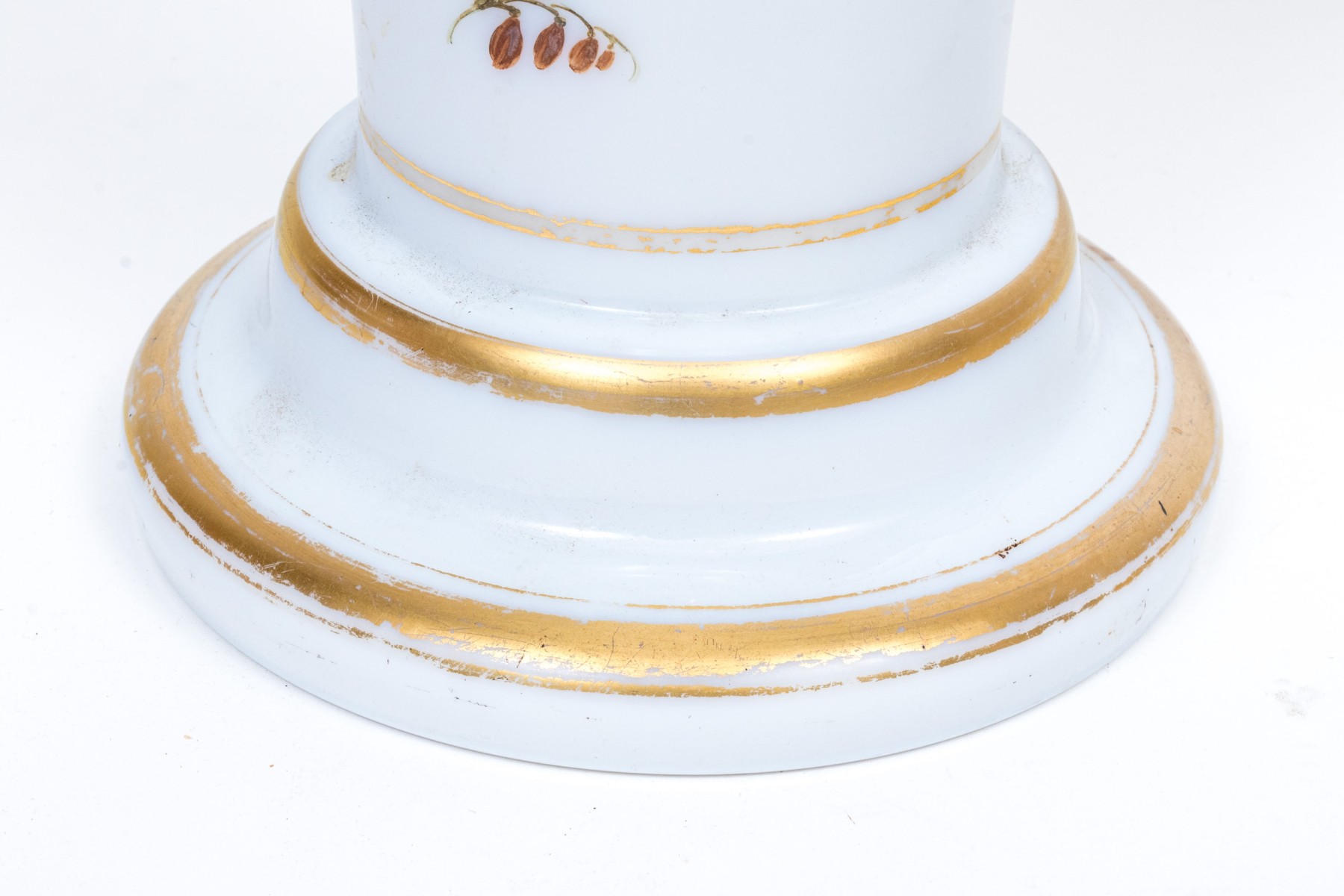 Condition: one with wear to the gilt rim. The other vase with wear to both the gilt rim and base bands. Otherwise gently used. Please review the photos as they are part of the condition report.
