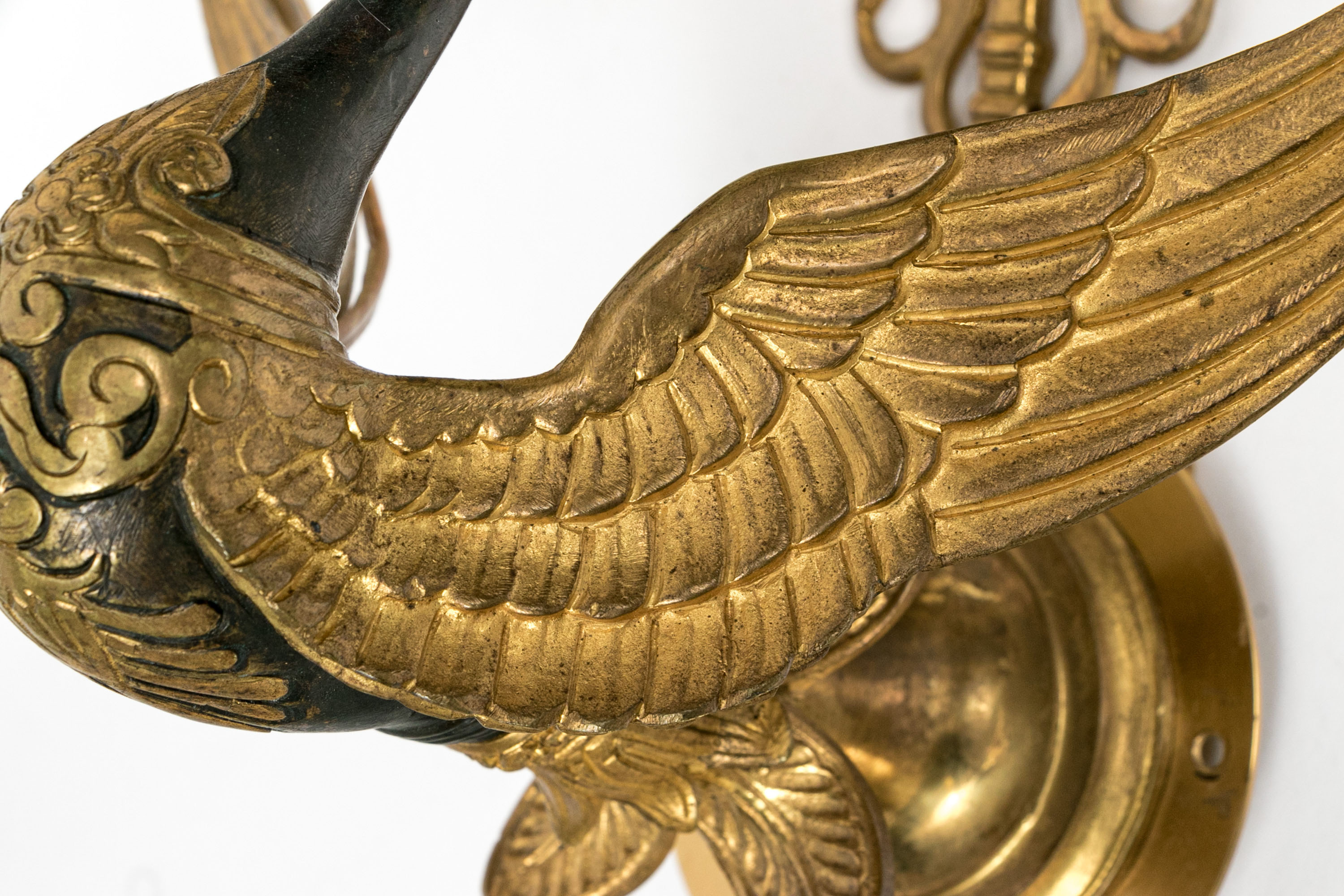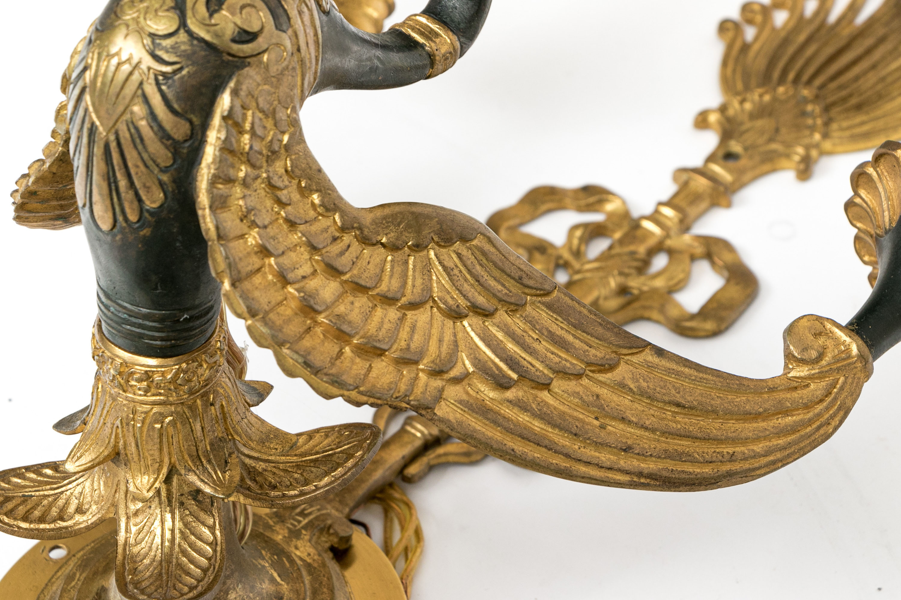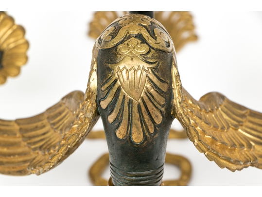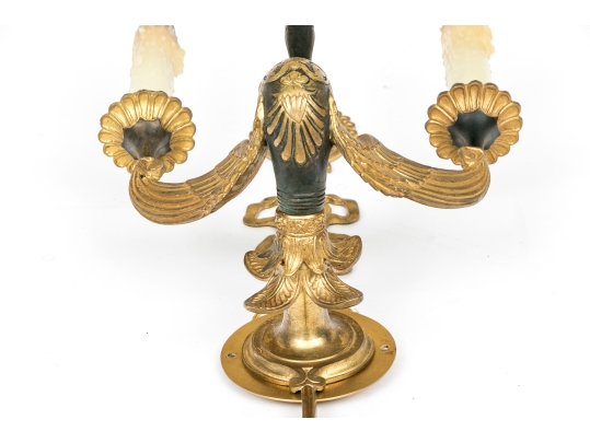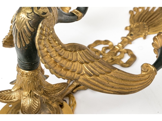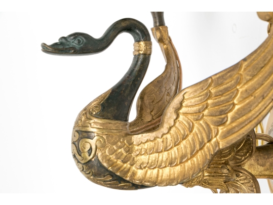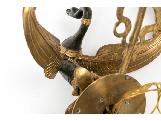 Pair Of Antique Gilt Bronze Empire Style Twin Arm Wall Sconces With Swan Supports