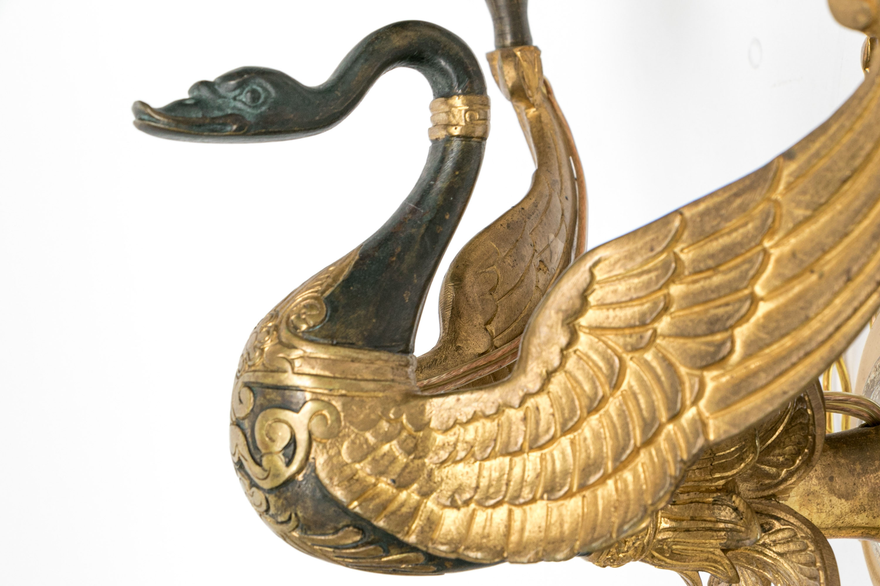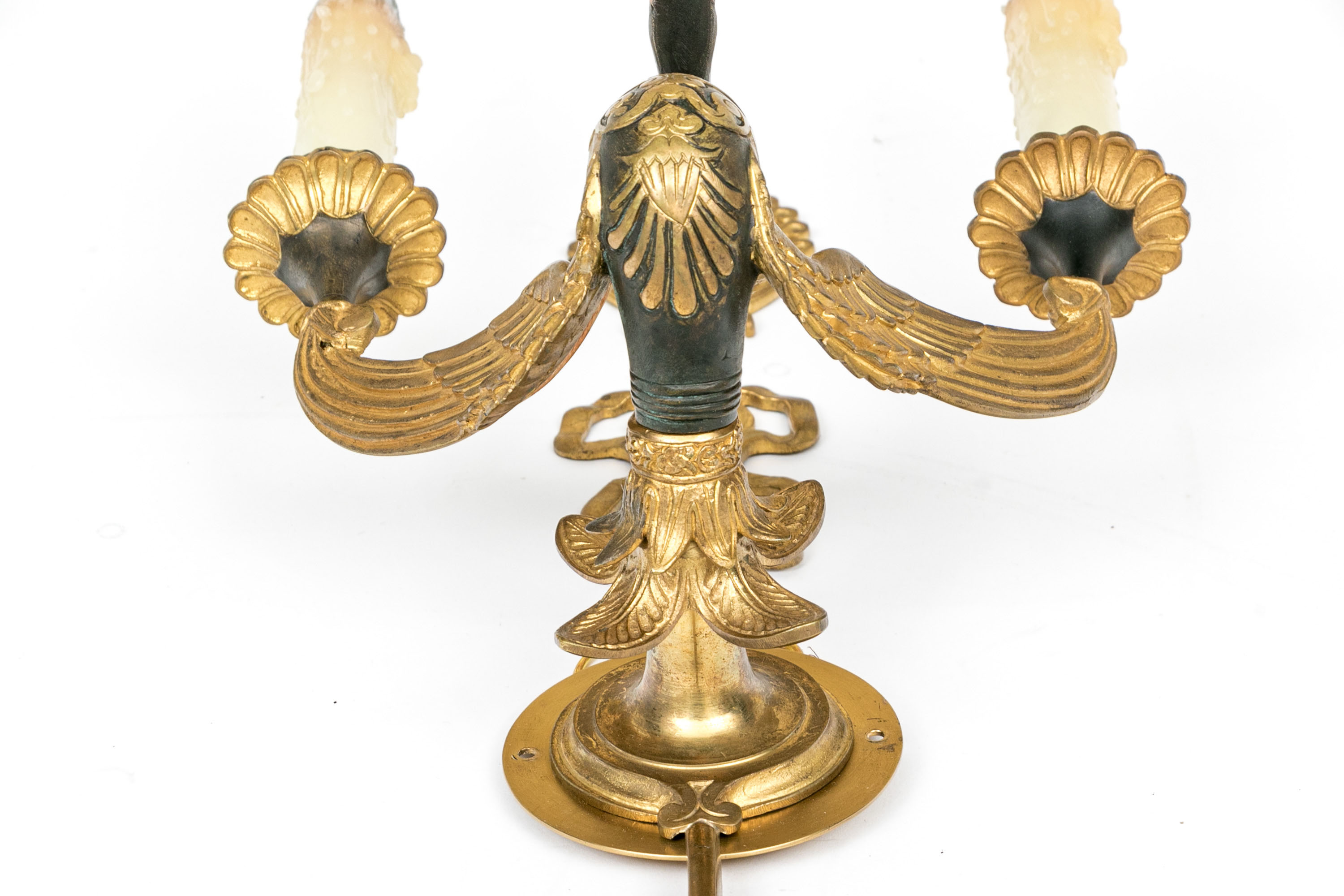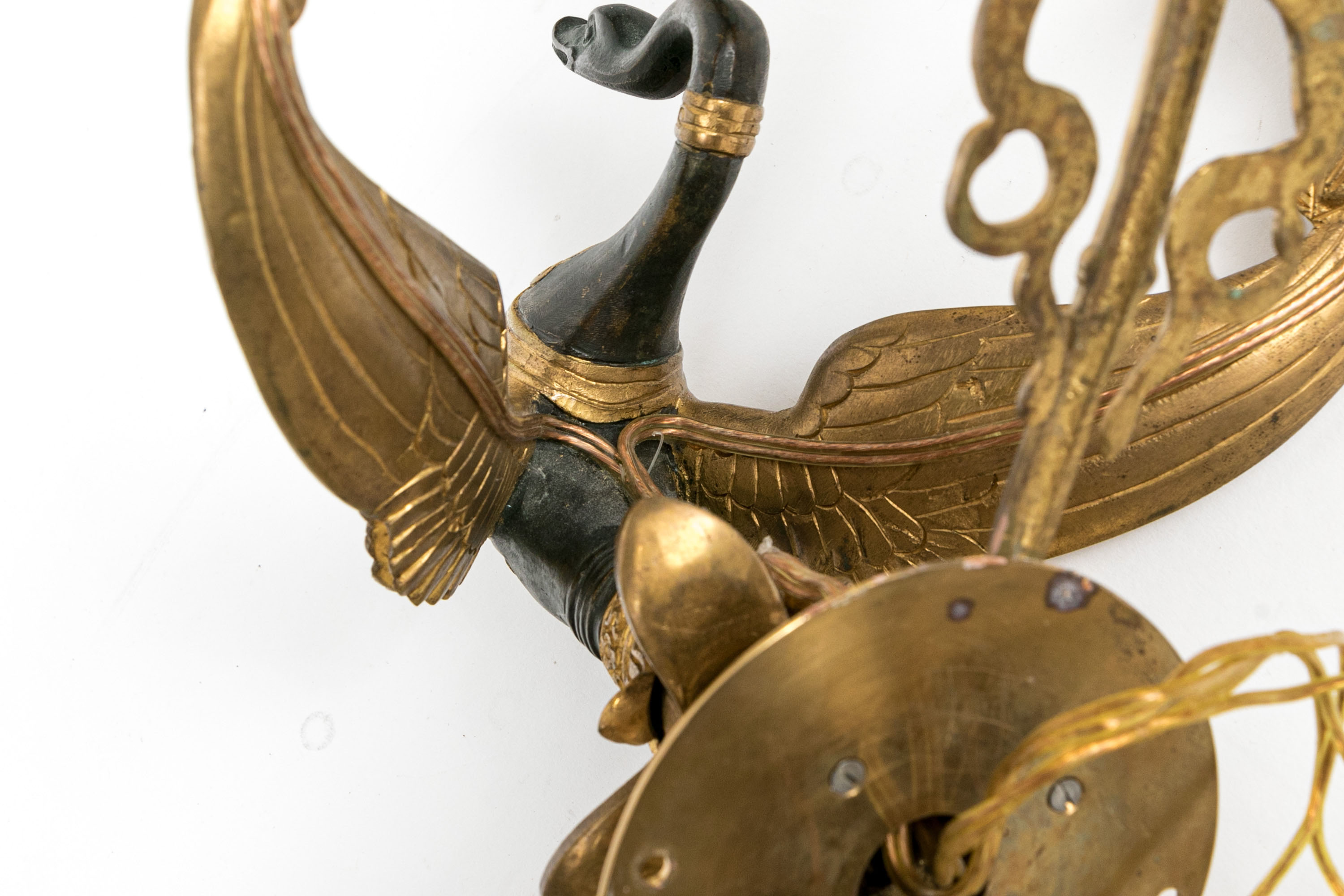 Pair Of Antique Gilt Bronze Empire Style Twin Arm Wall Sconces With Swan Supports