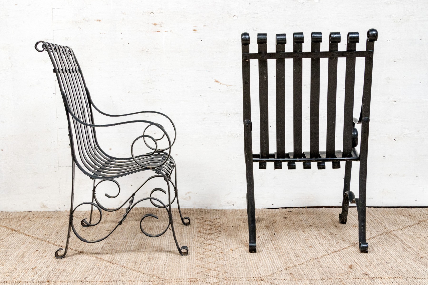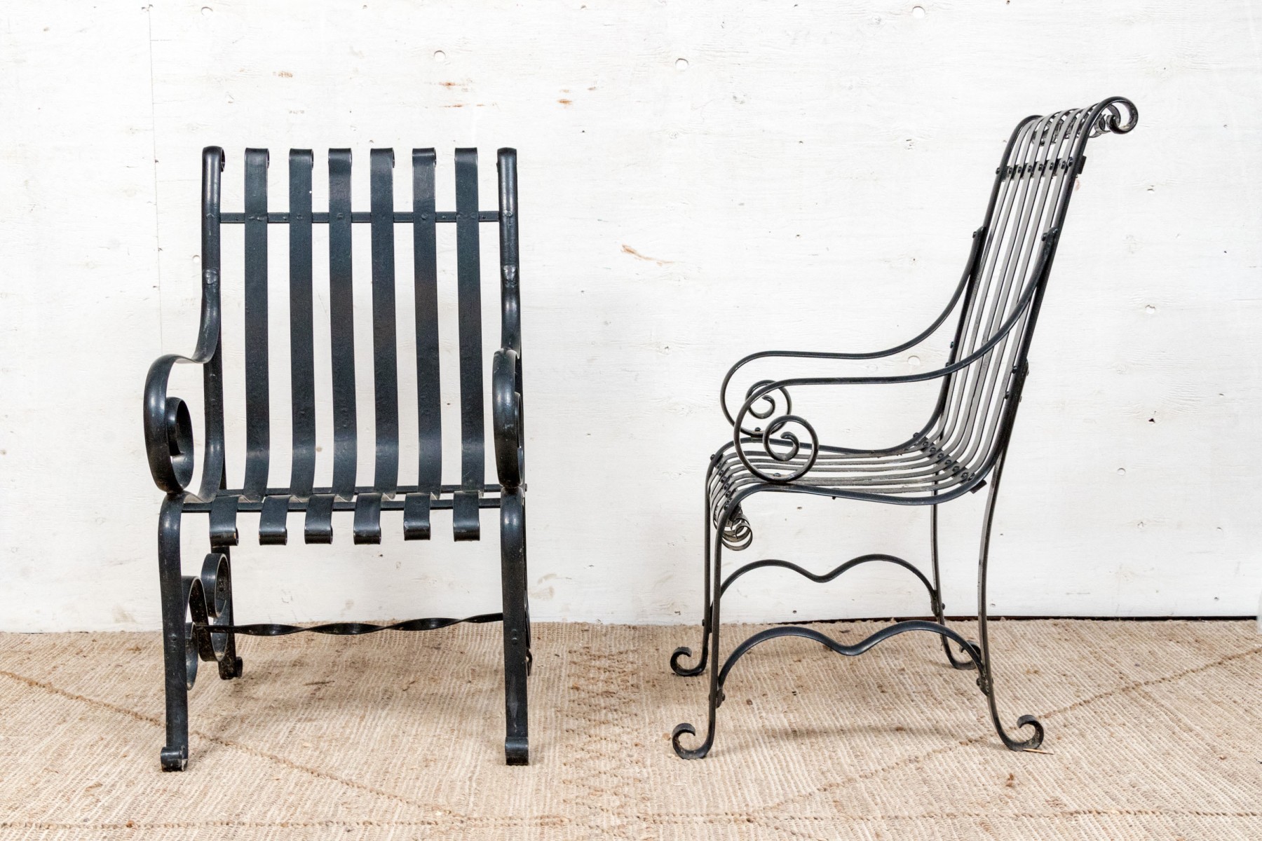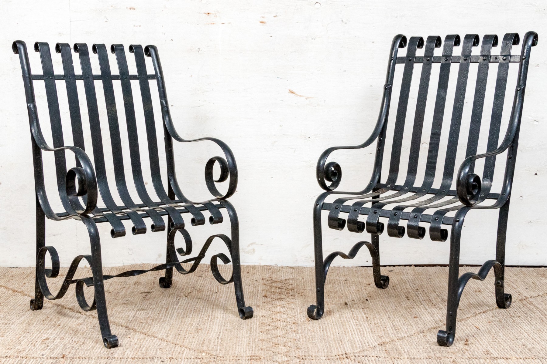 Pair Of Antique Heavy Black Powder Coated Strap Iron Garden Armchairs #440185. Black Rock Galleries provides high end estate liquidation services through online estate auctions and a 50,000 sq ft designer showroom. estate liquidator, estate sale, online auction, antiques, fine art, liquidation, clean outs, auction, consignment, interior design, fine jewelry, collectibles, appraisals, estate appraisals, estate services, decor, furniture, furniture consignment, antique center, consignment shop. We offer appraisal services and specialize in fine art, jewelry, antiques and decorative arts. Sell with us. Black Rock Galleries is the tri-state's largest estate liquidator serving New England and the greater New York City area. We are the trusted source for expert appraisals, auction services, estate sales, and consignments. Black Rock Galleries is the east coast's largest and most trusted estate liquidator, with locations in Connecticut, greater Boston, MA and Raleigh, NC, Fairfield, Southport, Apex, TX. We are the best source for expert appraisals, auction services, estate sales and consignments. We have served thousands of families and estates with compassion, professionalism and expertise. BRG works with attorneys, executors, realtors and families to bring the greatest return on personal and estate property in the current market. Our unique combination of services make us the easy choice to get the job done in a timely and stress-free manner. We are with you from the initial consultation to the final clean out. Our house-built online auction software platform offers clients a dynamic approach to liquidating their personal property. This venue is most successful in bringing the best return with the least amount of disruption for our clients. See our services page for a complete description of this offering. Pair Of Antique Heavy Black Powder Coated Strap Iron Garden Armchairs #440185