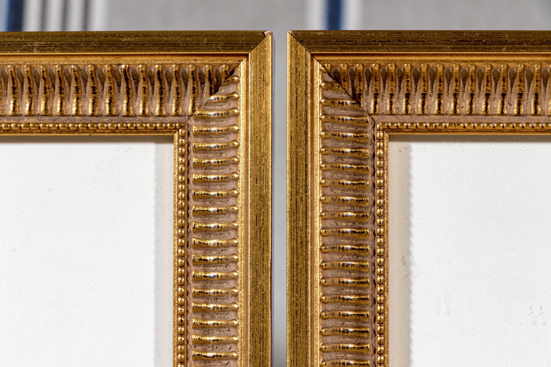 Displayed glazed with plexiglass and matted in gilt frames with fine fluted trims.