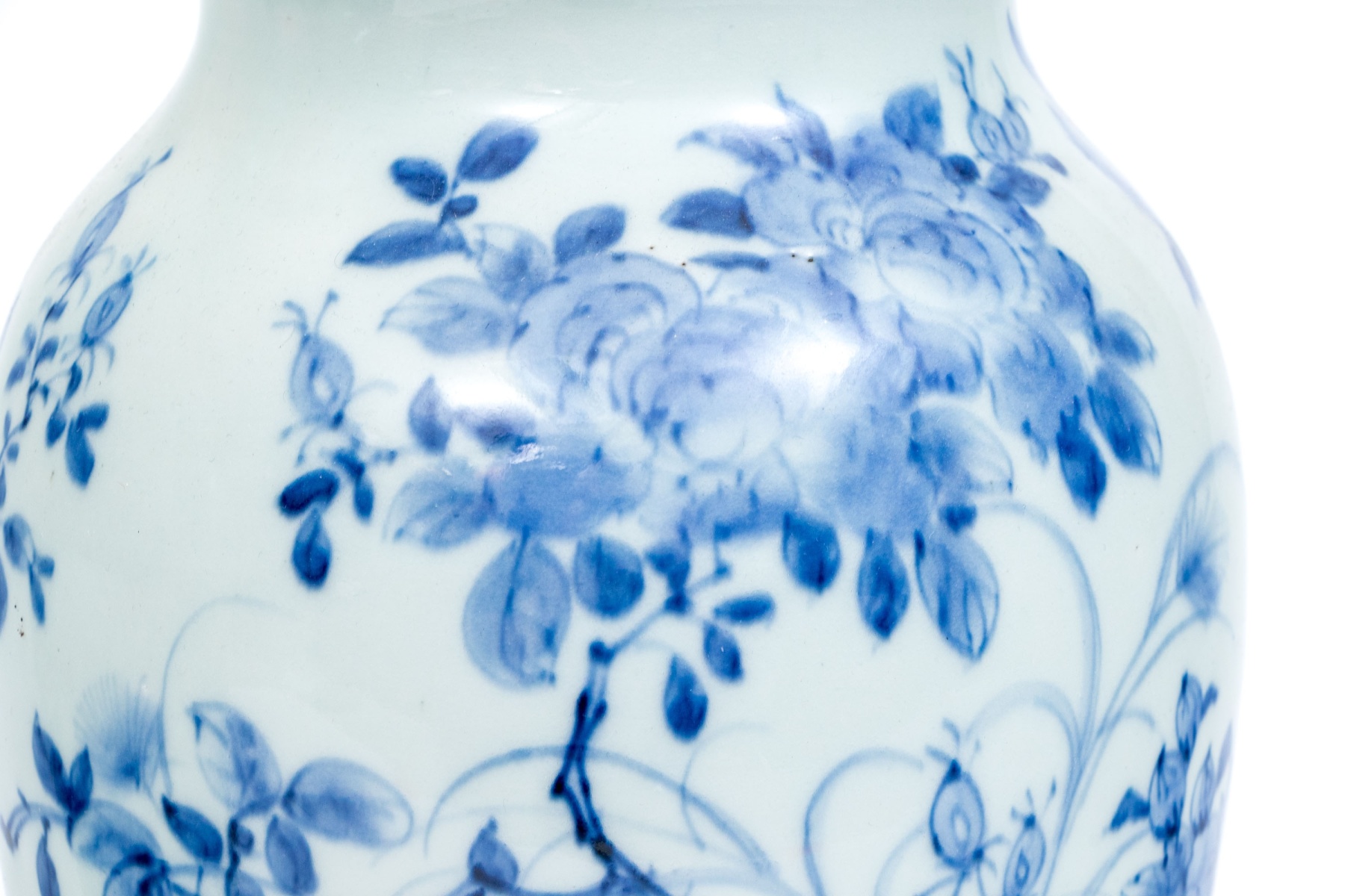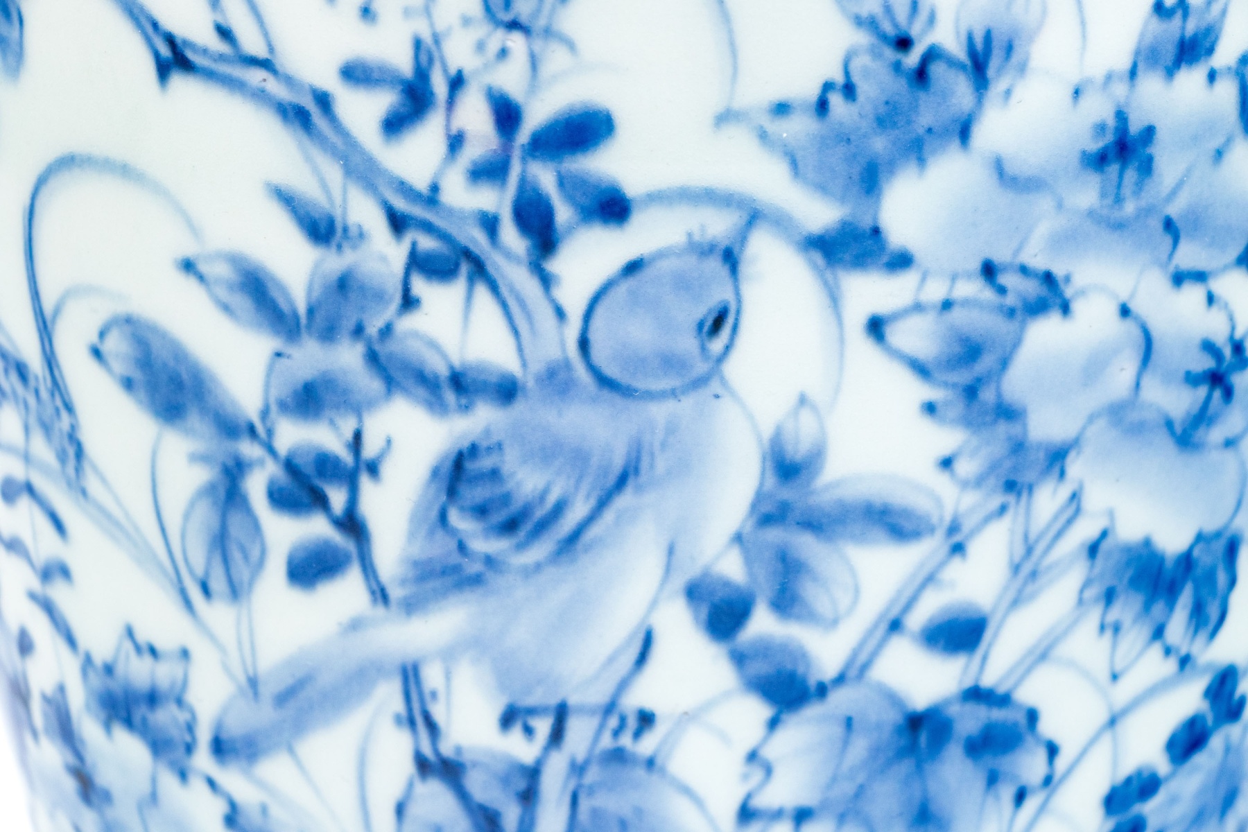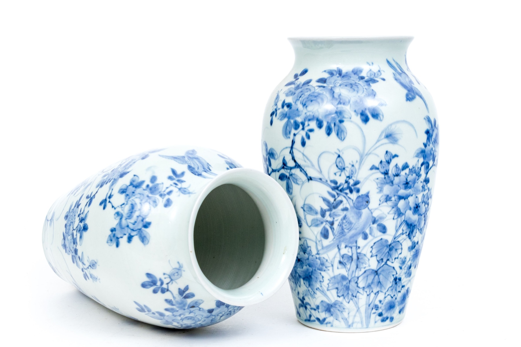 A lovely pair of porcelain vases decorated with blue underglaze flowering trees.