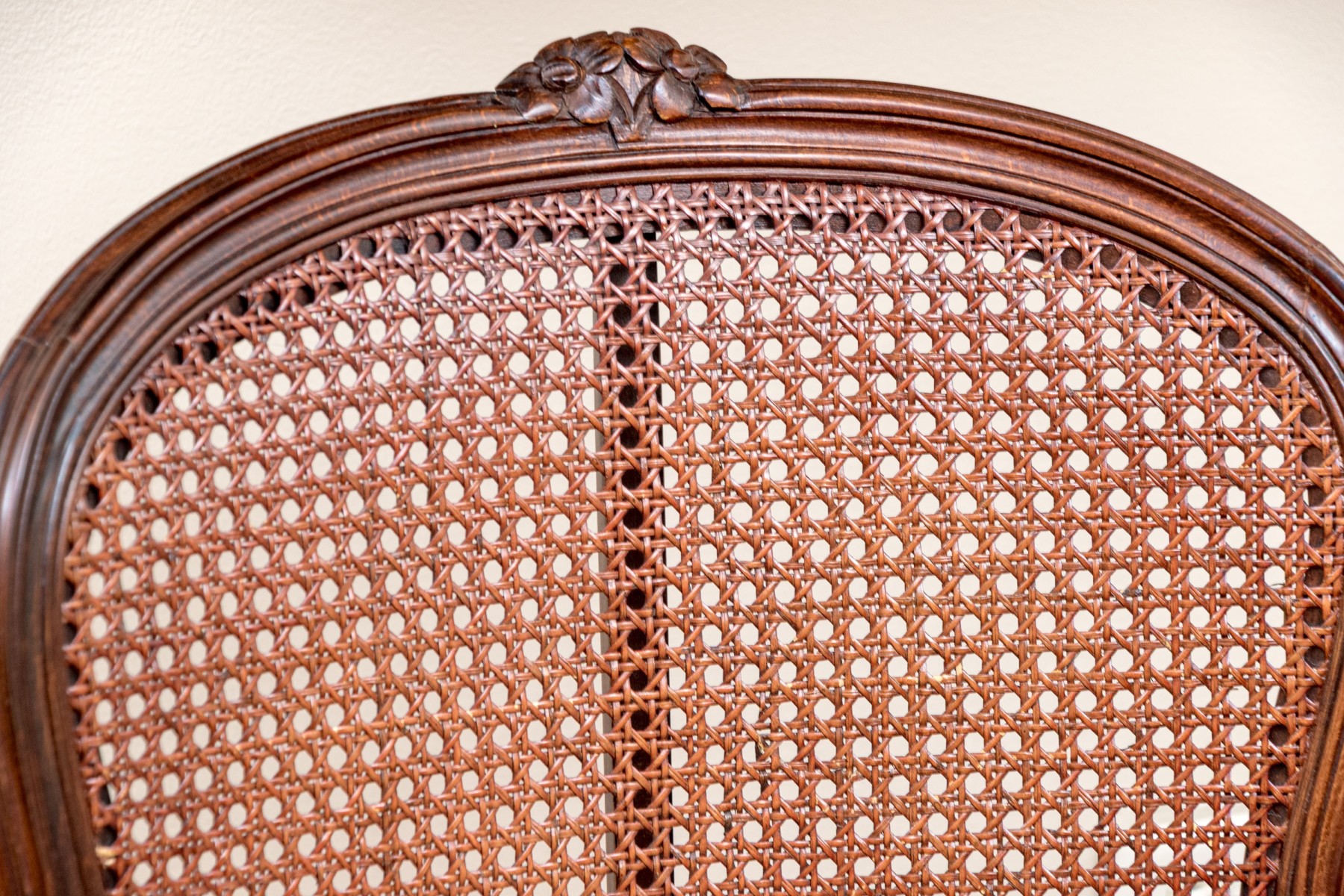 Wear to the upholstery and gentle wear to frames including some breaks to the caning but overall the chairs present well.