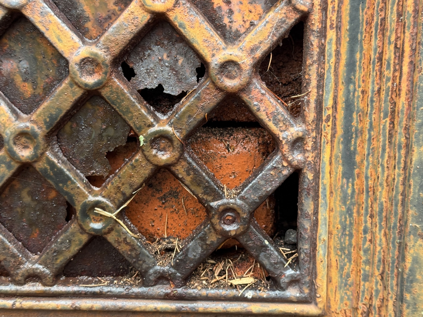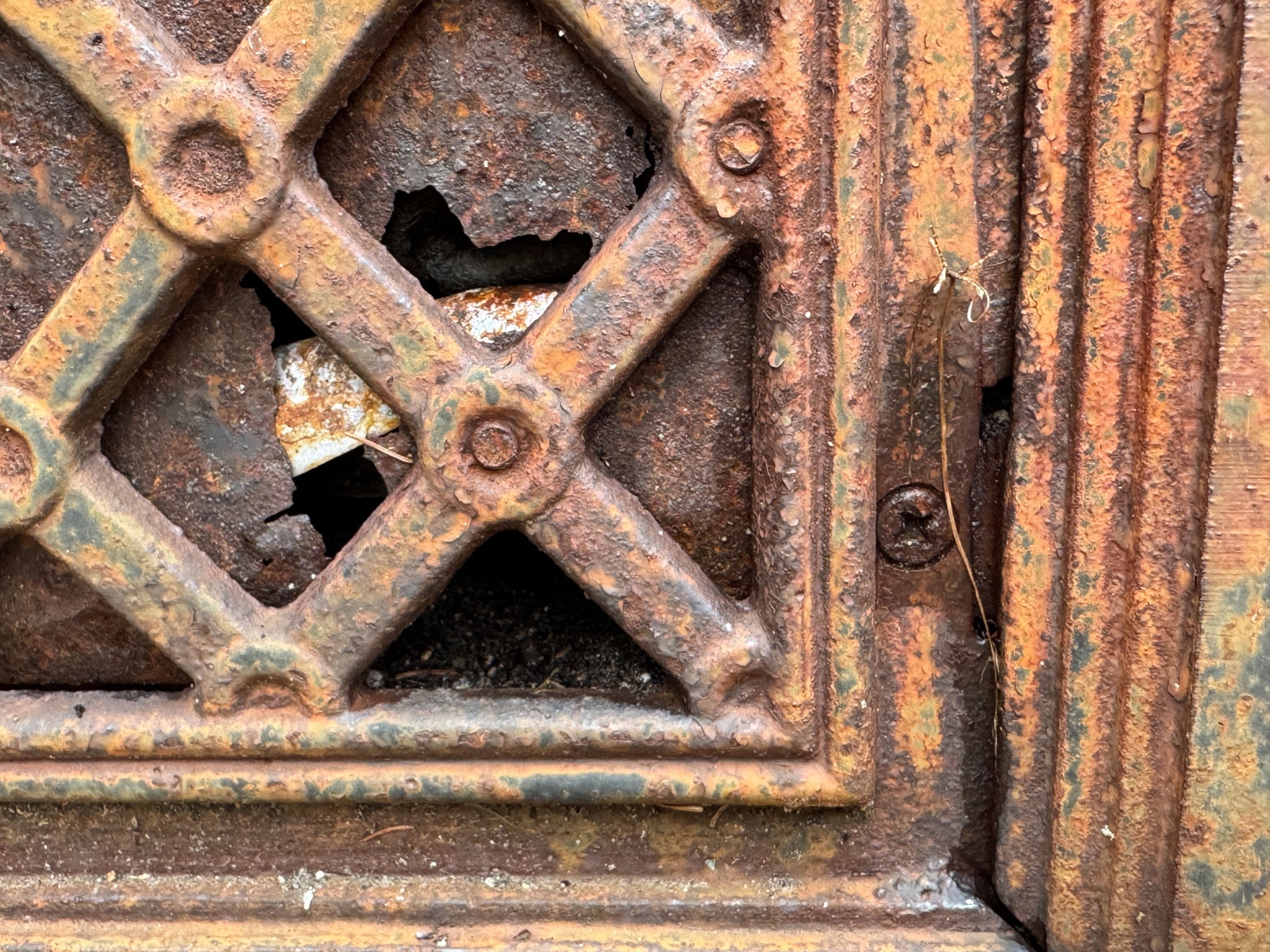 Heavy wear, oxidation, and rotted inserts. As-is but still with a great rustic appearance.
