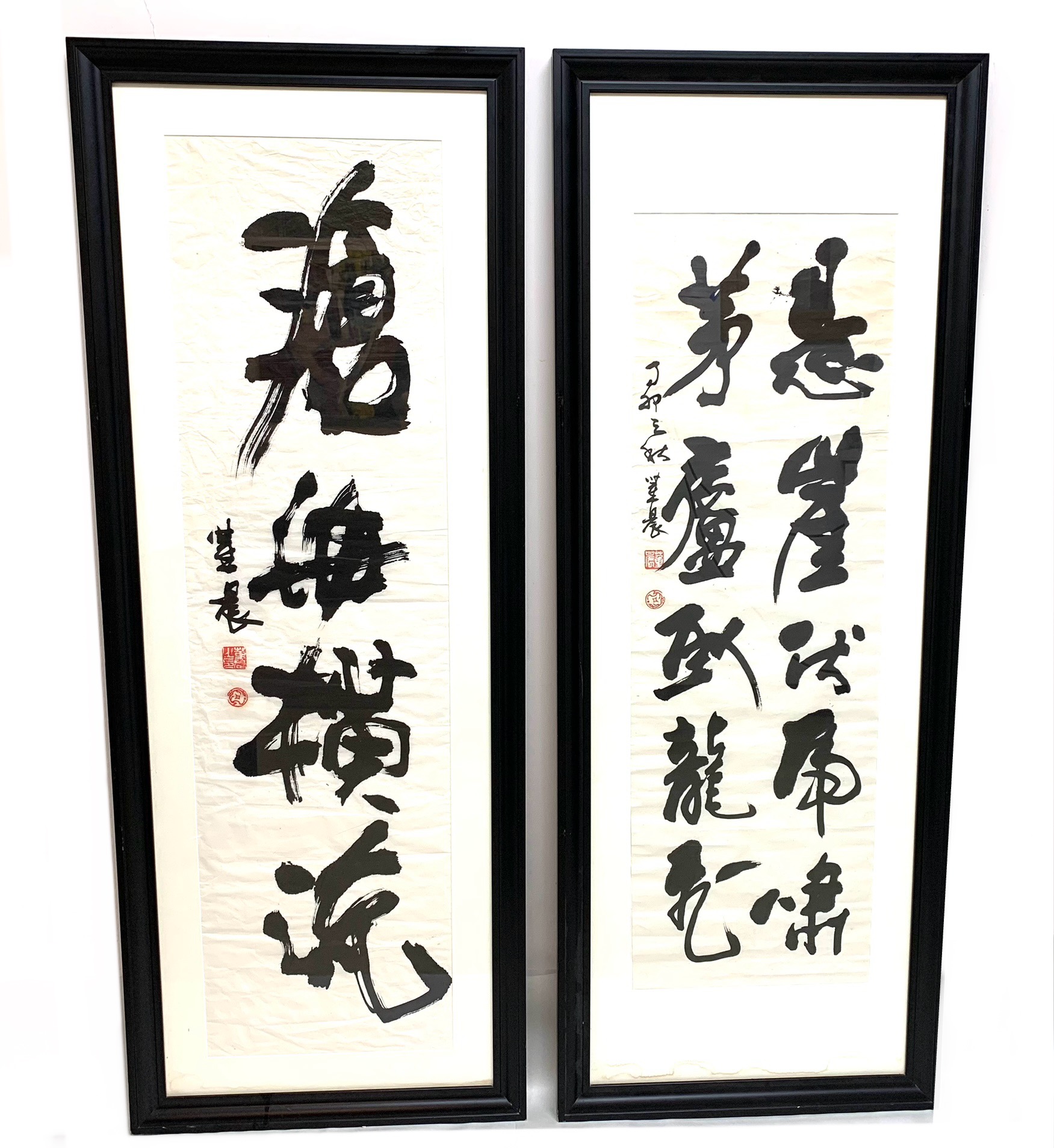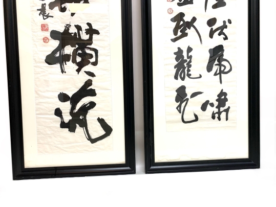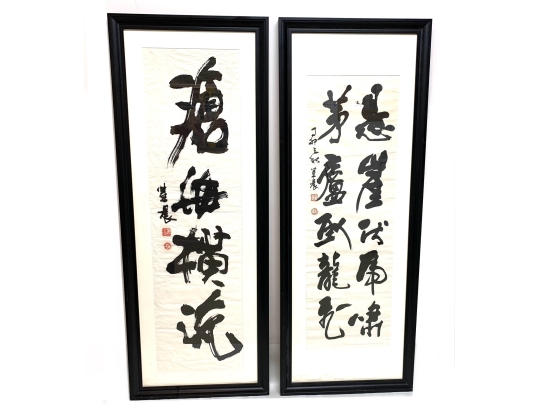 Pair Of Chinese Calligraphy Scrolls In Mark Humphrey Gallery Frames