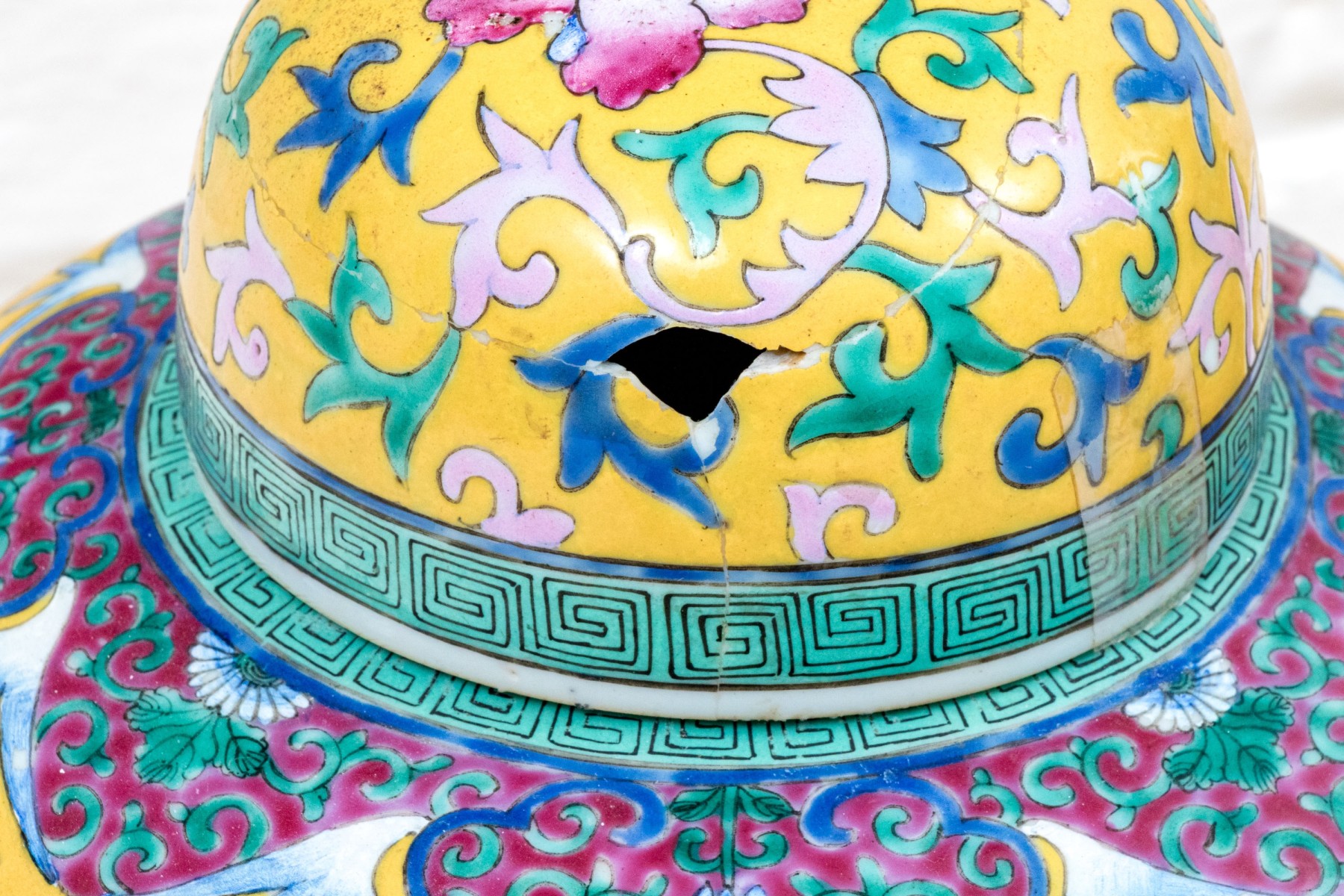 One lid had a previous break with small loss and sections are glued but overall both present well.