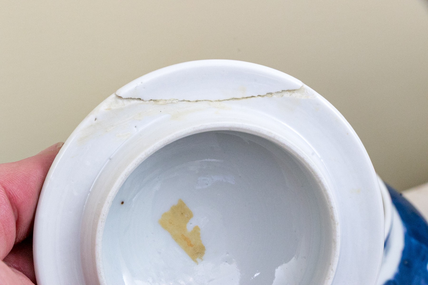 One lid has been previously repaired.