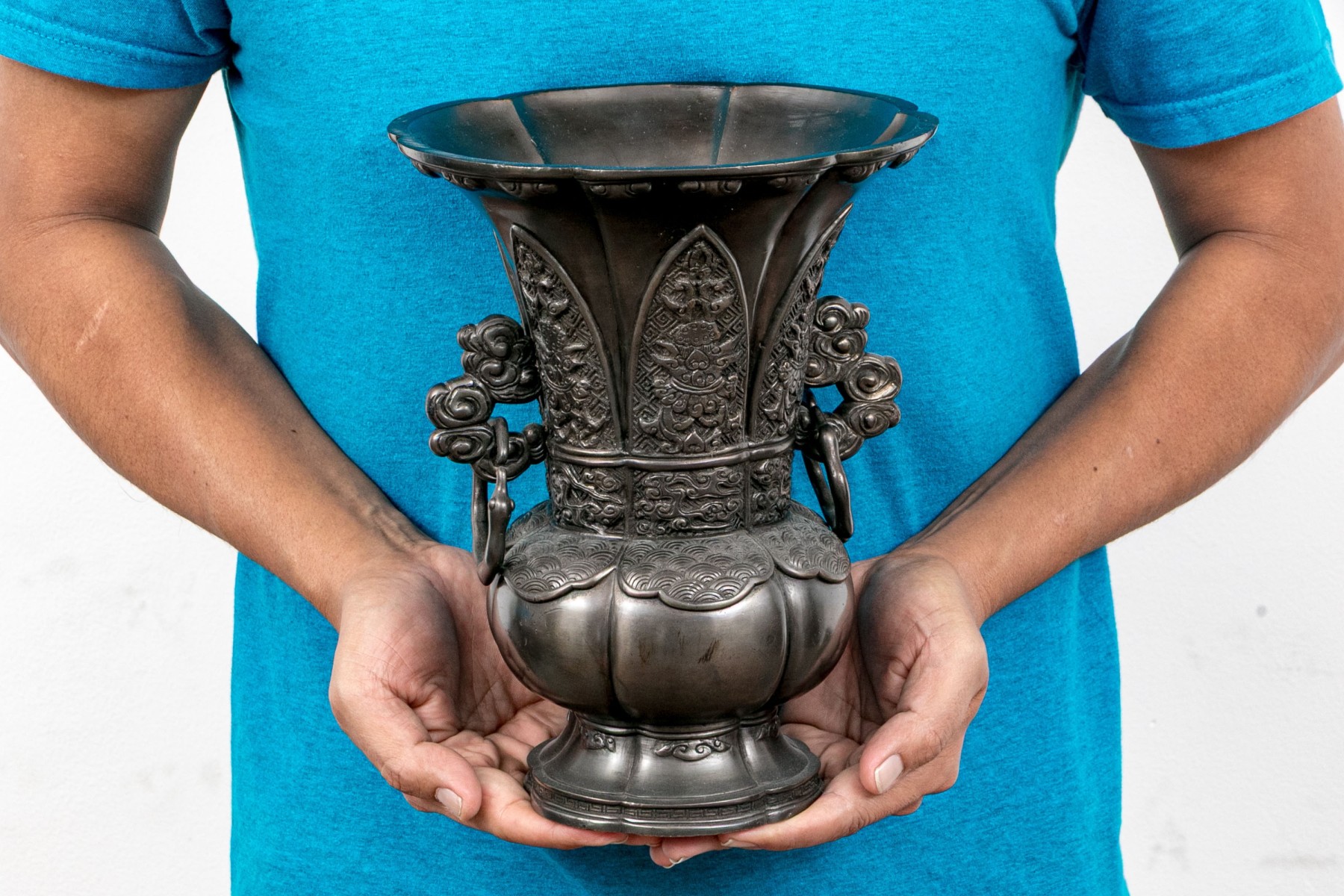 Pair Of Chinese Pewter Patinated Bronze Gu Form Vases #463017. Black Rock Galleries provides high end estate liquidation services through online estate auctions and a 50,000 sq ft designer showroom. estate liquidator, estate sale, online auction, antiques, fine art, liquidation, clean outs, auction, consignment, interior design, fine jewelry, collectibles, appraisals, estate appraisals, estate services, decor, furniture, furniture consignment, antique center, consignment shop. We offer appraisal services and specialize in fine art, jewelry, antiques and decorative arts. Sell with us. Black Rock Galleries is the tri-state's largest estate liquidator serving New England and the greater New York City area. We are the trusted source for expert appraisals, auction services, estate sales, and consignments. Black Rock Galleries is the east coast's largest and most trusted estate liquidator, with locations in Connecticut, greater Boston, MA and Raleigh, NC, Fairfield, Southport, Apex, TX. We are the best source for expert appraisals, auction services, estate sales and consignments. We have served thousands of families and estates with compassion, professionalism and expertise. BRG works with attorneys, executors, realtors and families to bring the greatest return on personal and estate property in the current market. Our unique combination of services make us the easy choice to get the job done in a timely and stress-free manner. We are with you from the initial consultation to the final clean out. Our house-built online auction software platform offers clients a dynamic approach to liquidating their personal property. This venue is most successful in bringing the best return with the least amount of disruption for our clients. See our services page for a complete description of this offering. Pair Of Chinese Pewter Patinated Bronze Gu Form Vases #463017