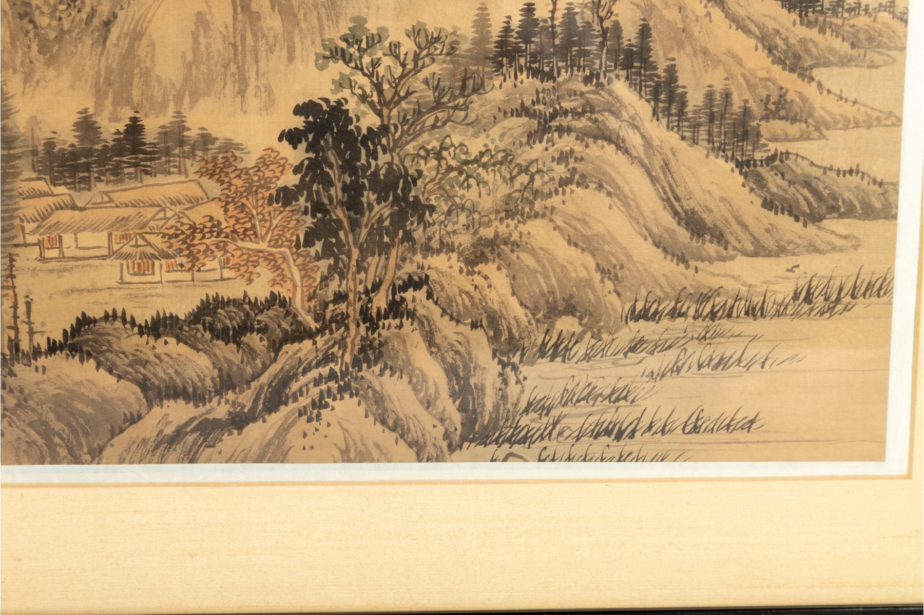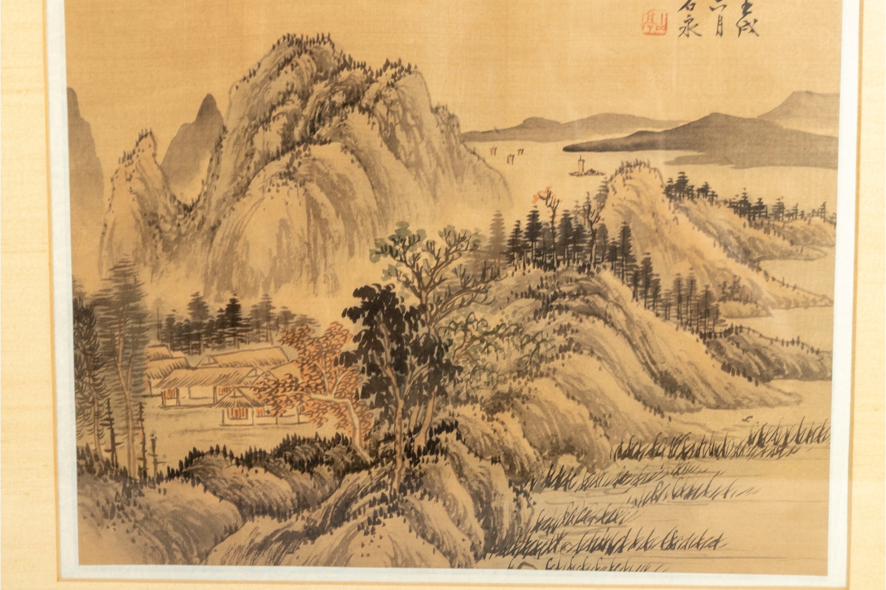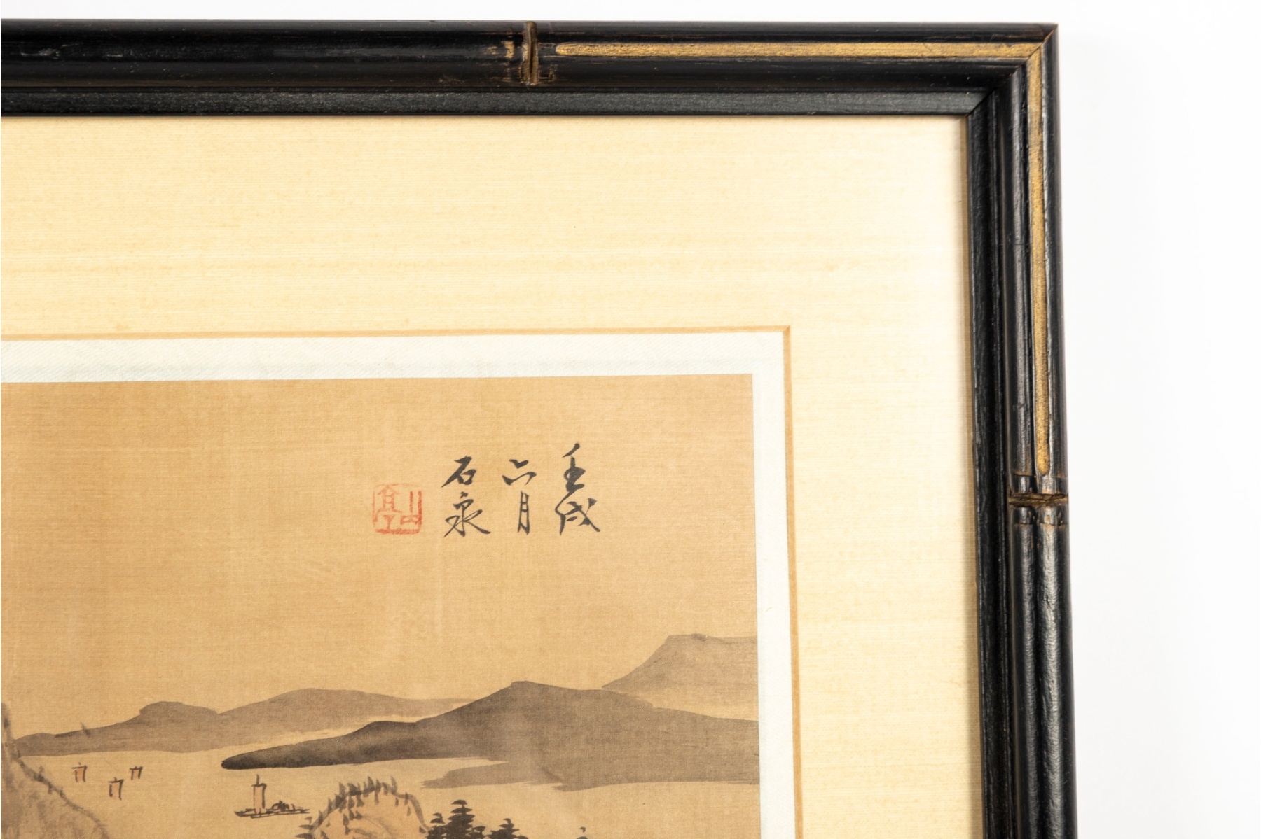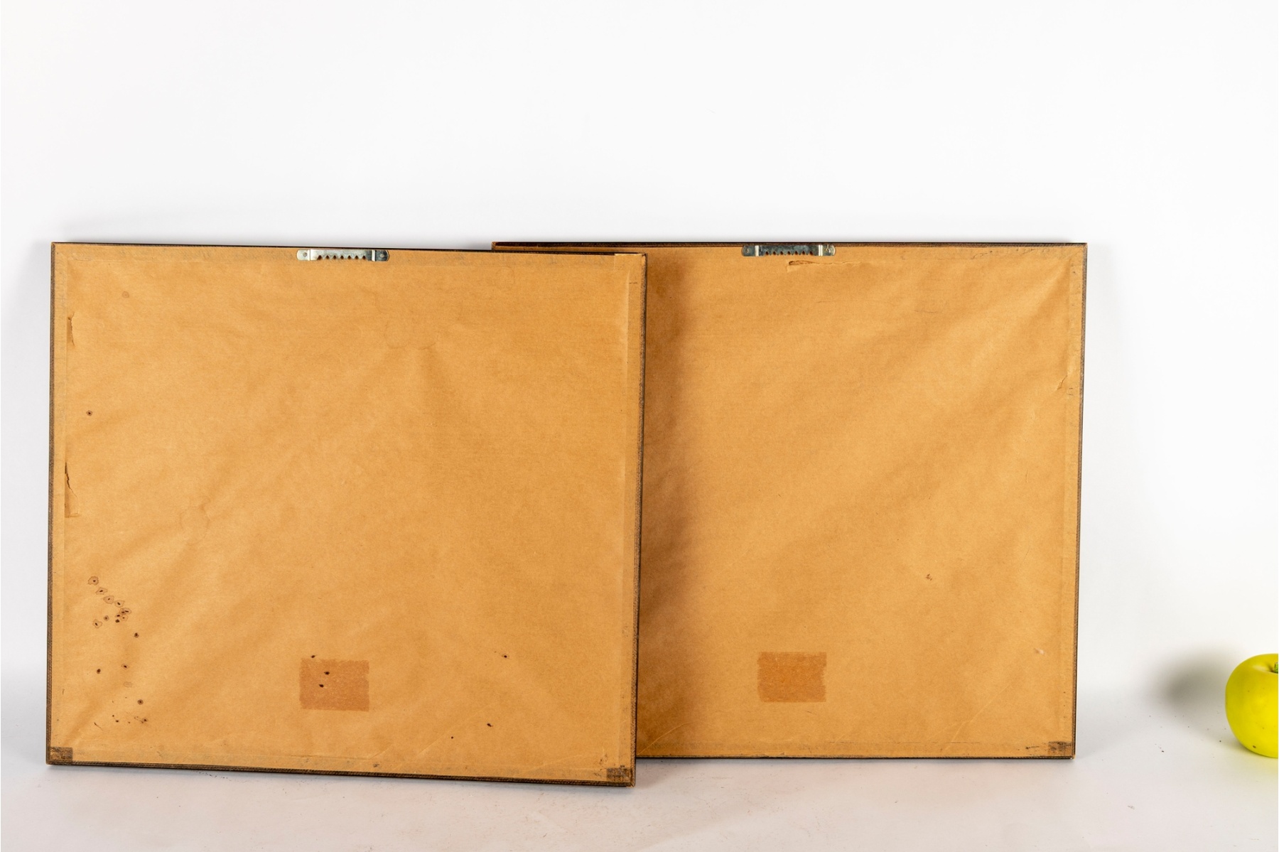 Displayed behind glass within wood frames.