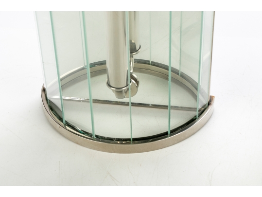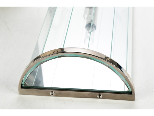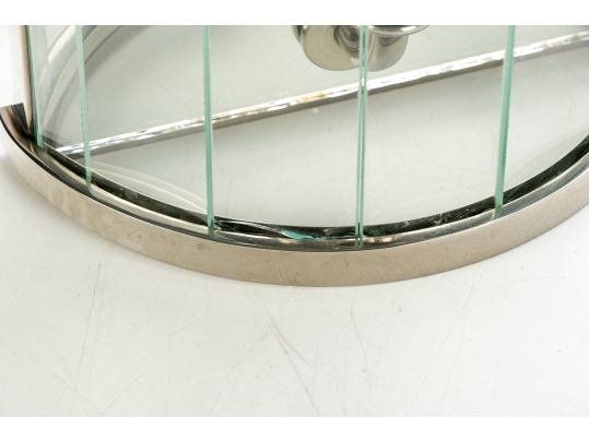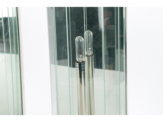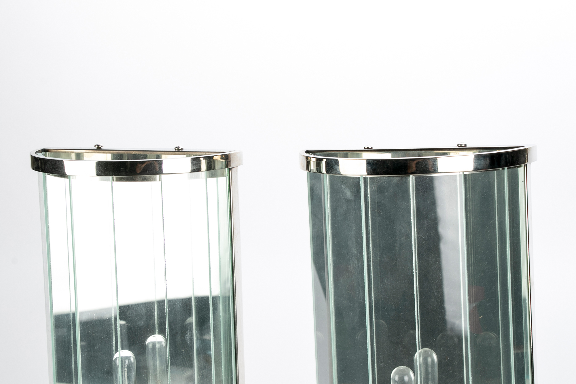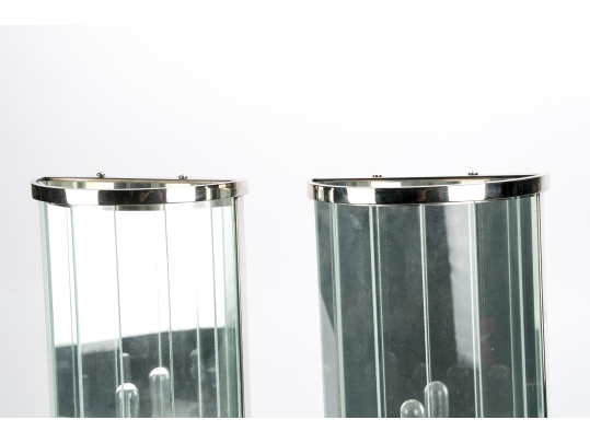 Pair Of Contemporary Mirrored And Glass Faceted Demilune Form Wall Sconces