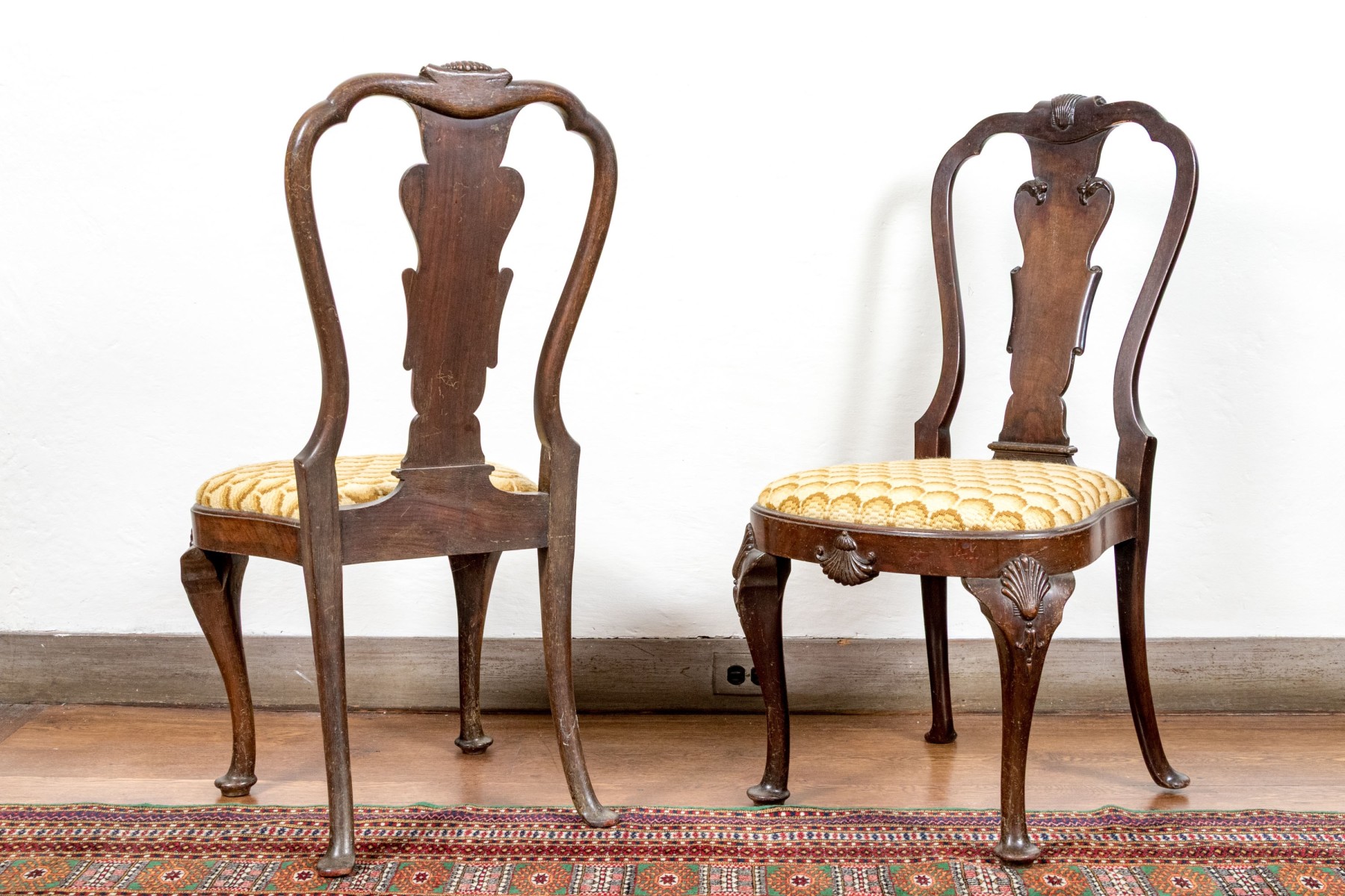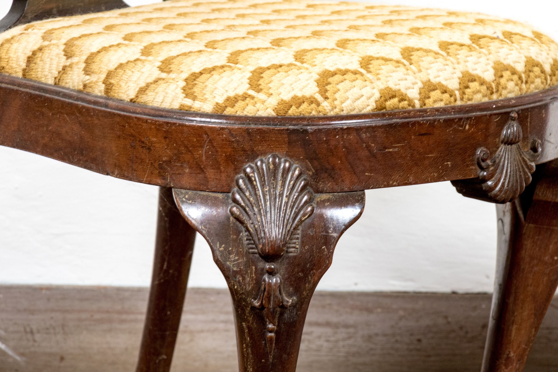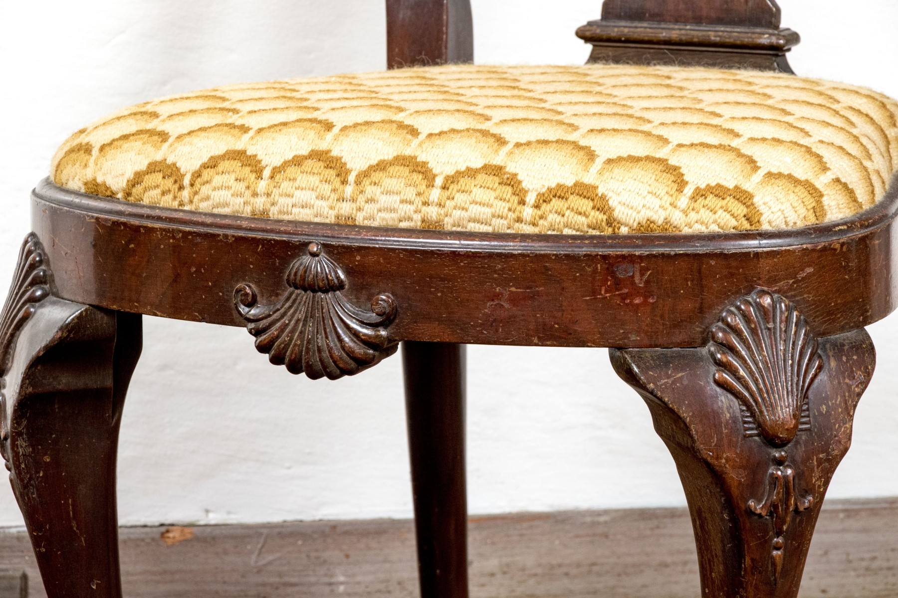 A fabulous pair of 20th century reproduction Philadelphia Chippendale side chairs raised on front cabriolet and pad feet. The chairs are detailed with shell carved motifs to the front legs in relief. Finished with nicely carved back splats and shaped seat back with carved shell and scroll motifs.