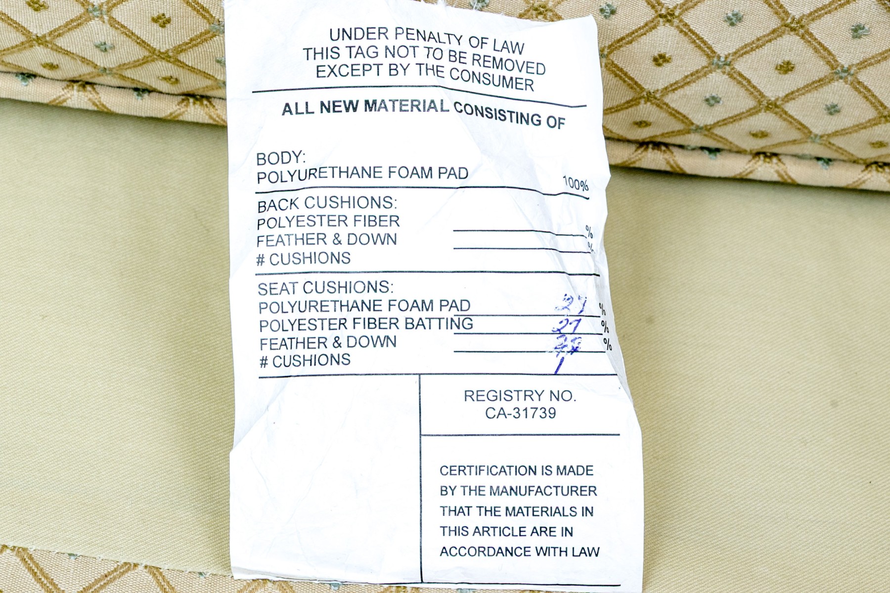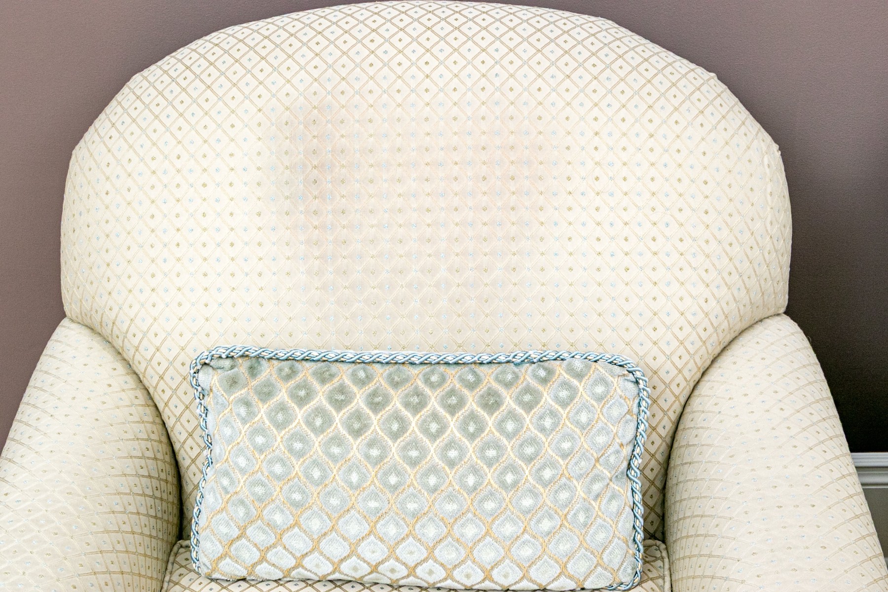 Some wear and staining to the upholstery most notably on the center backs.