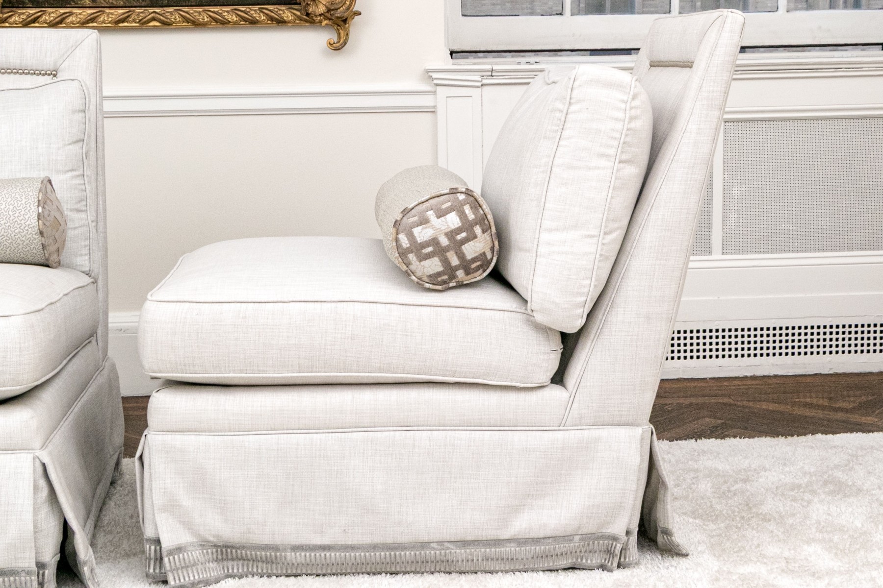 Pair Of Custom Upholstered Slipper Chairs With Accent Bolster Pillows ($6,000) #458403. Black Rock Galleries provides high end estate liquidation services through online estate auctions and a 50,000 sq ft designer showroom. estate liquidator, estate sale, online auction, antiques, fine art, liquidation, clean outs, auction, consignment, interior design, fine jewelry, collectibles, appraisals, estate appraisals, estate services, decor, furniture, furniture consignment, antique center, consignment shop. We offer appraisal services and specialize in fine art, jewelry, antiques and decorative arts. Sell with us. Black Rock Galleries is the tri-state's largest estate liquidator serving New England and the greater New York City area. We are the trusted source for expert appraisals, auction services, estate sales, and consignments. Black Rock Galleries is the east coast's largest and most trusted estate liquidator, with locations in Connecticut, greater Boston, MA and Raleigh, NC, Fairfield, Southport, Apex, TX. We are the best source for expert appraisals, auction services, estate sales and consignments. We have served thousands of families and estates with compassion, professionalism and expertise. BRG works with attorneys, executors, realtors and families to bring the greatest return on personal and estate property in the current market. Our unique combination of services make us the easy choice to get the job done in a timely and stress-free manner. We are with you from the initial consultation to the final clean out. Our house-built online auction software platform offers clients a dynamic approach to liquidating their personal property. This venue is most successful in bringing the best return with the least amount of disruption for our clients. See our services page for a complete description of this offering. Pair Of Custom Upholstered Slipper Chairs With Accent Bolster Pillows ($6,000) #458403