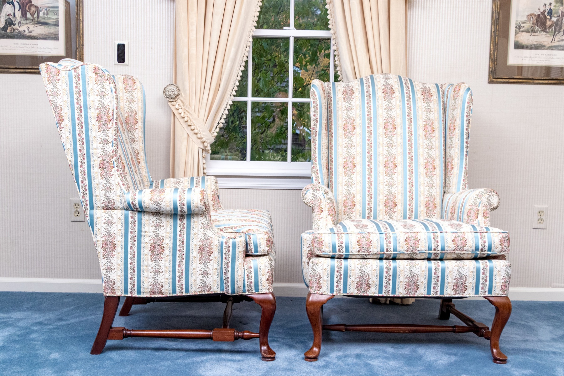 Pair Of Custom Upholstered Wingback Queen Anne Style Armchairs #465060. Black Rock Galleries provides high end estate liquidation services through online estate auctions and a 50,000 sq ft designer showroom. estate liquidator, estate sale, online auction, antiques, fine art, liquidation, clean outs, auction, consignment, interior design, fine jewelry, collectibles, appraisals, estate appraisals, estate services, decor, furniture, furniture consignment, antique center, consignment shop. We offer appraisal services and specialize in fine art, jewelry, antiques and decorative arts. Sell with us. Black Rock Galleries is the tri-state's largest estate liquidator serving New England and the greater New York City area. We are the trusted source for expert appraisals, auction services, estate sales, and consignments. Black Rock Galleries is the east coast's largest and most trusted estate liquidator, with locations in Connecticut, greater Boston, MA and Raleigh, NC, Fairfield, Southport, Apex, TX. We are the best source for expert appraisals, auction services, estate sales and consignments. We have served thousands of families and estates with compassion, professionalism and expertise. BRG works with attorneys, executors, realtors and families to bring the greatest return on personal and estate property in the current market. Our unique combination of services make us the easy choice to get the job done in a timely and stress-free manner. We are with you from the initial consultation to the final clean out. Our house-built online auction software platform offers clients a dynamic approach to liquidating their personal property. This venue is most successful in bringing the best return with the least amount of disruption for our clients. See our services page for a complete description of this offering. Pair Of Custom Upholstered Wingback Queen Anne Style Armchairs #465060