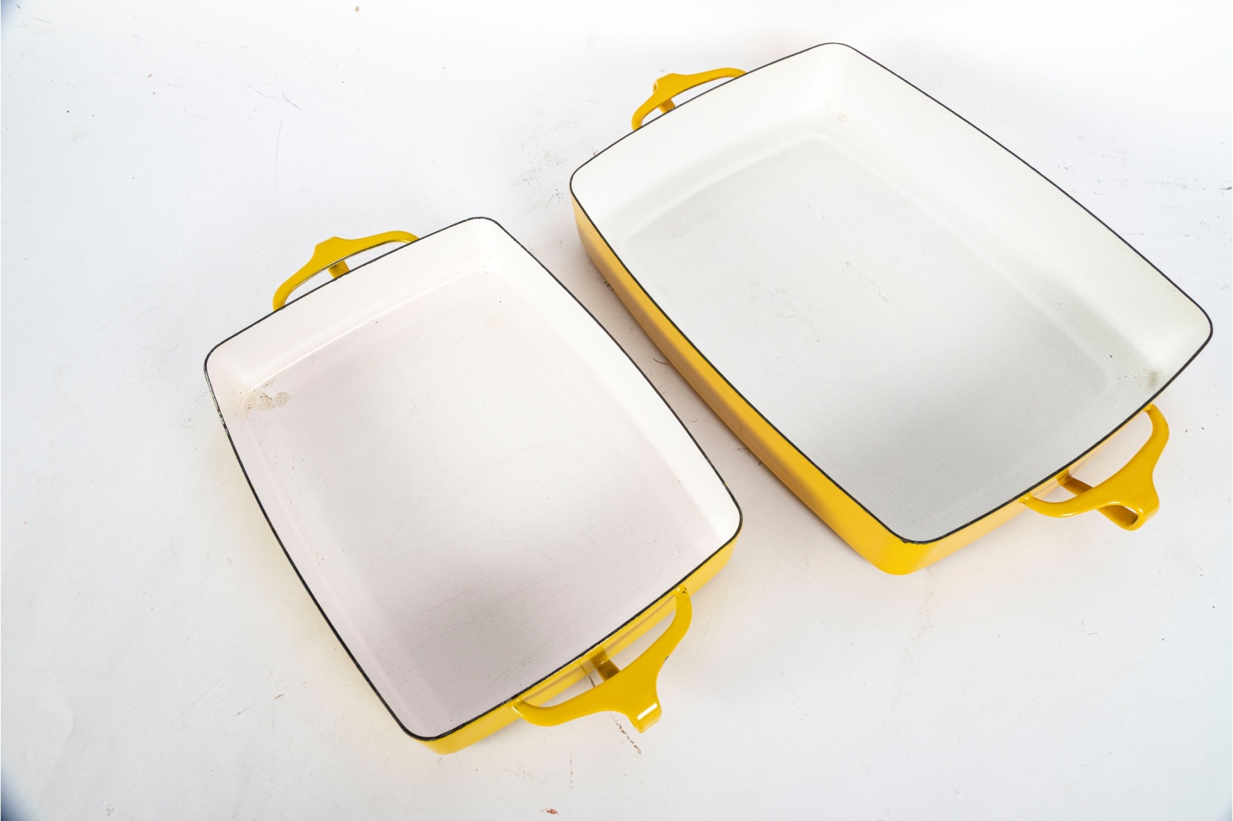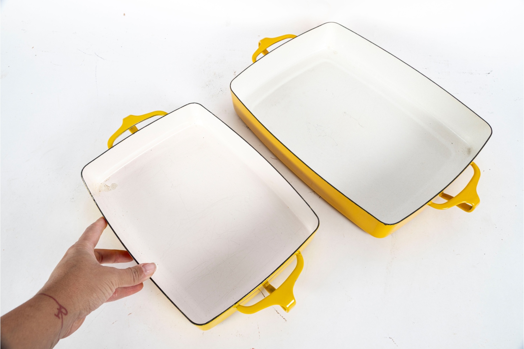 Pair Of Dansk France Yellow Enamel Baking Dishes