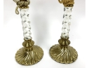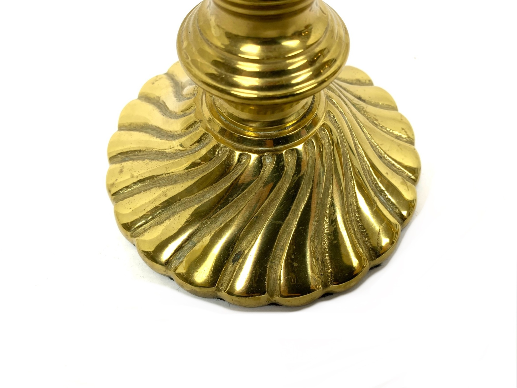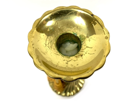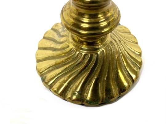 Condition: scratches and wear to inside the bobeche cups, verdigris deposit around the brass base. Please see photos for details of condition.