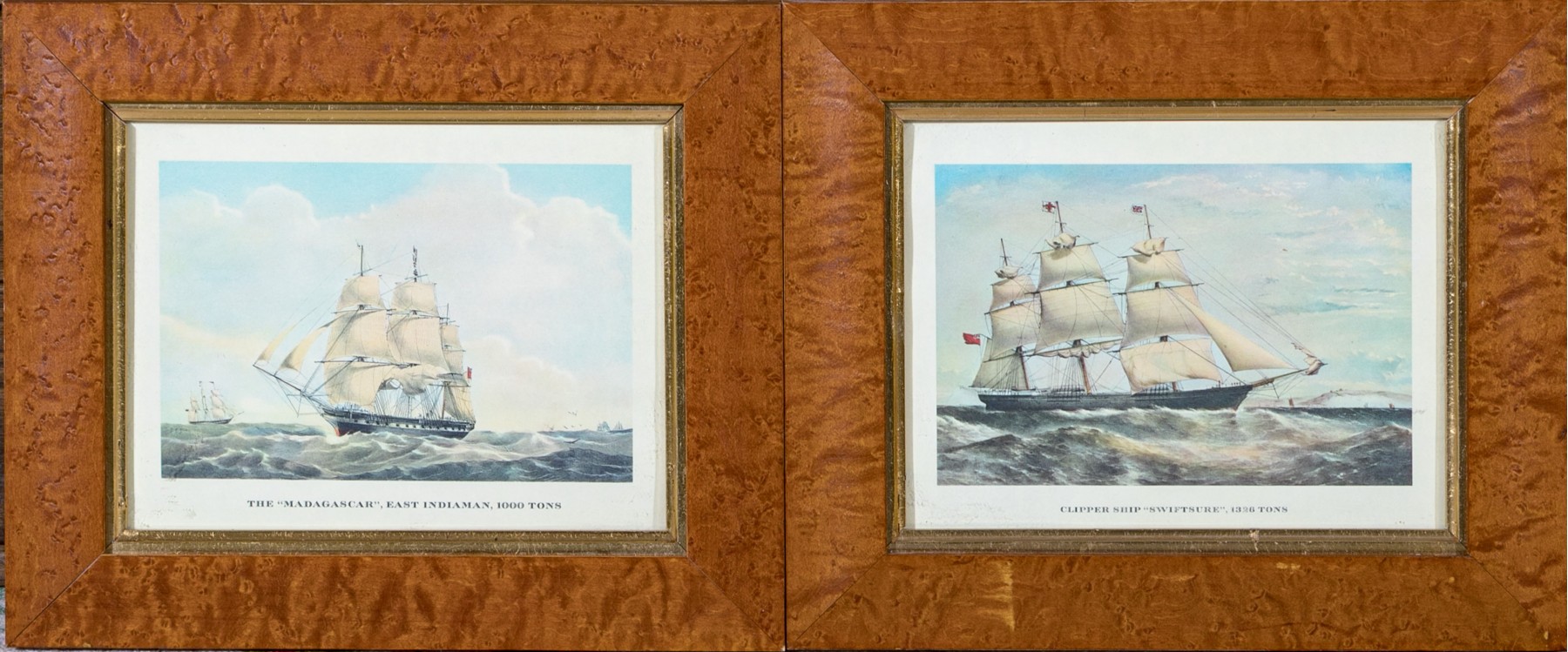 One titled "The "Madagascar", East Indiaman, 1000 TONS", and the second titled "Clipper Ship "Swiftsure", 1326 Tons".