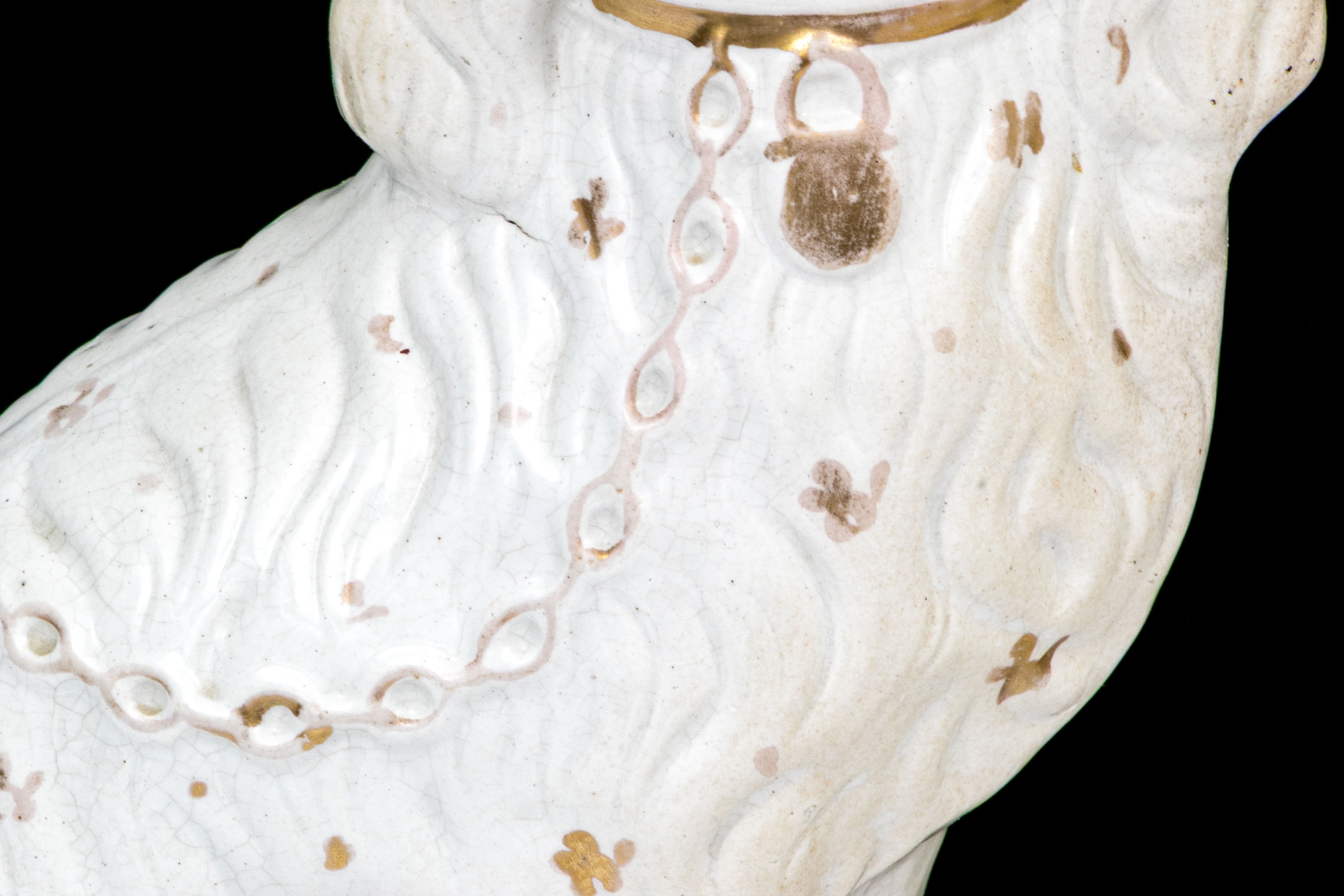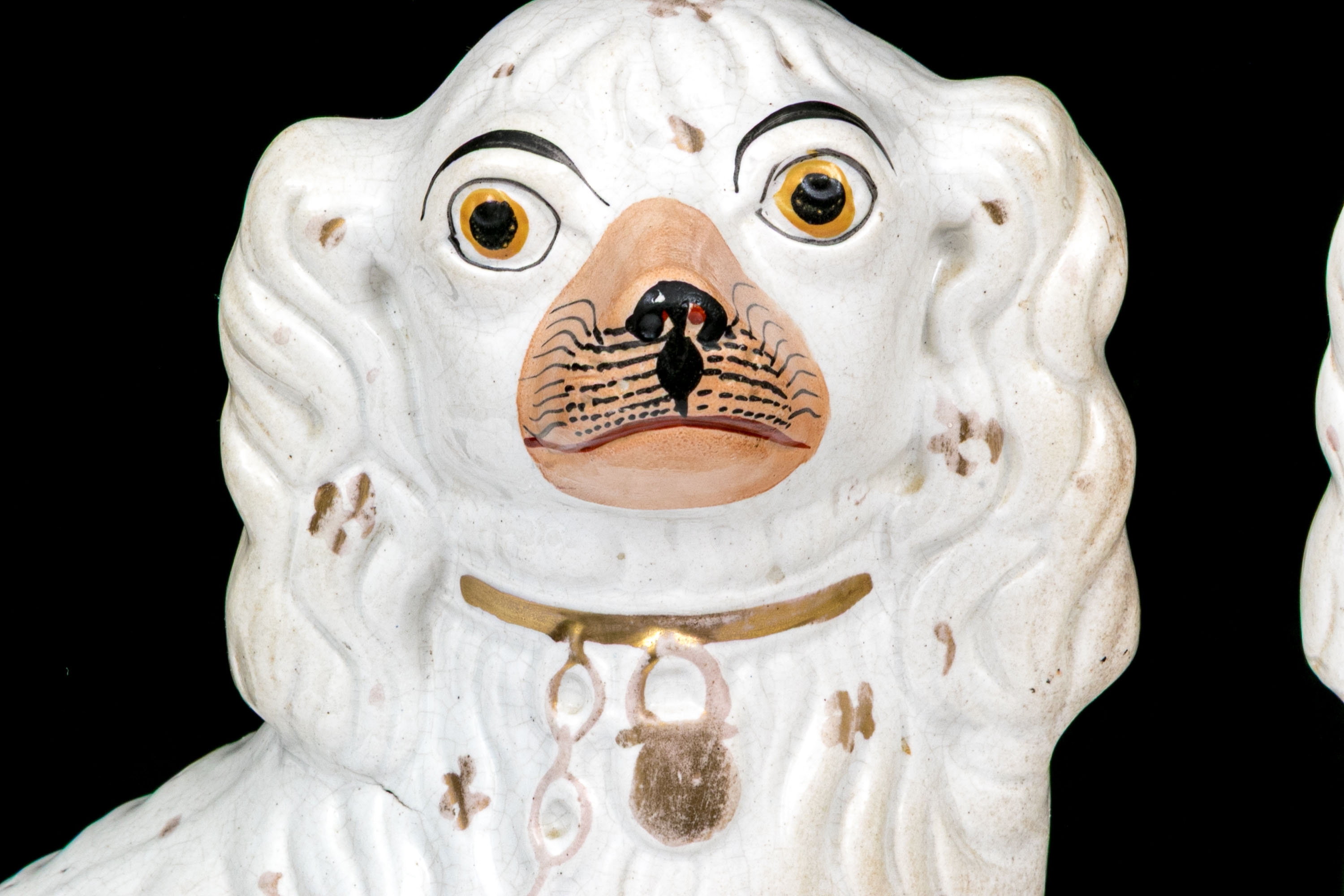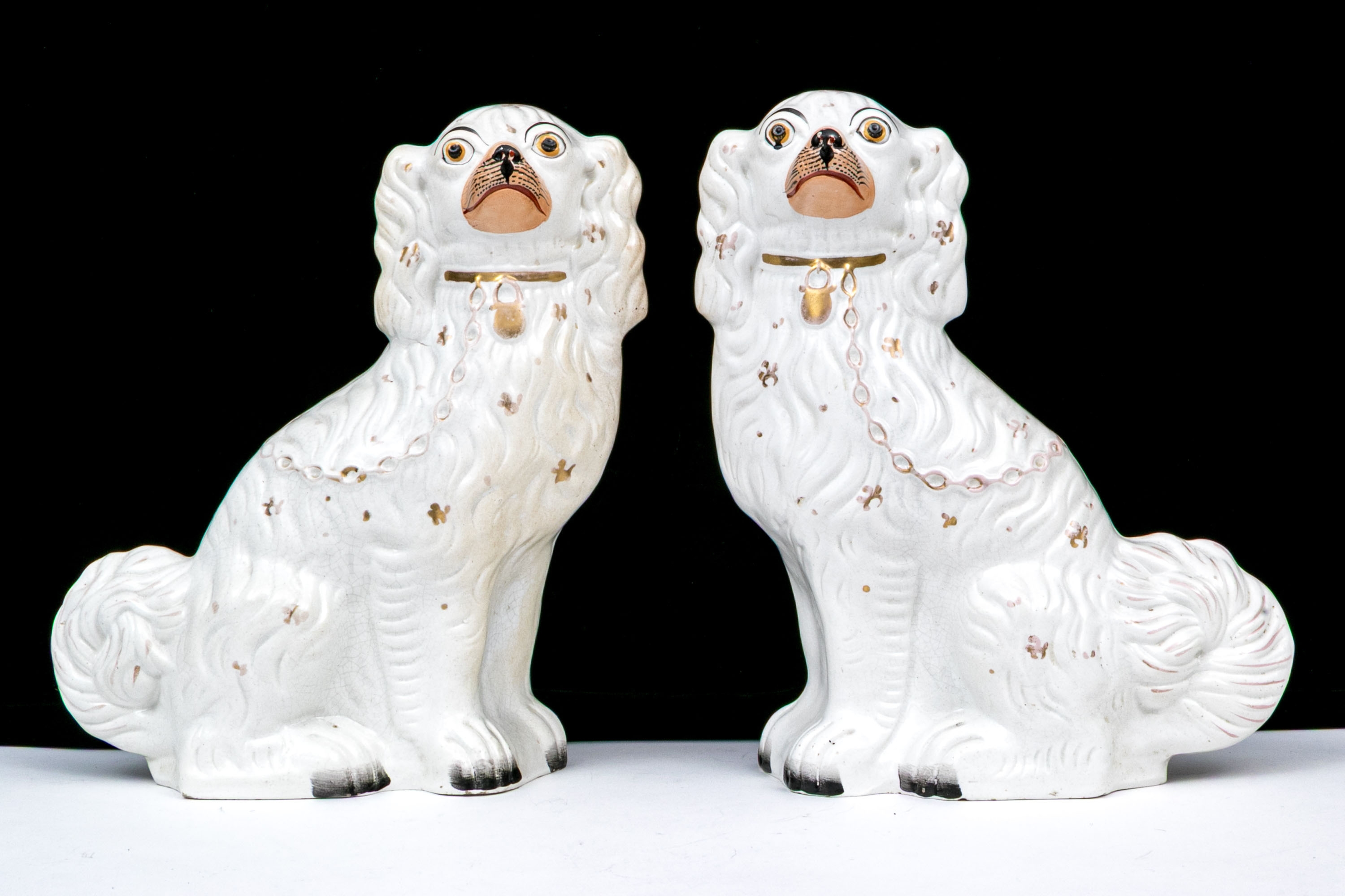 Each is seated with gilt finished collars, chain leashes and lockets.