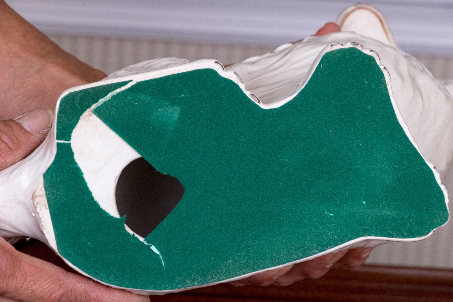 Hairline fracture on the back side of one dog extending up to the shoulder but still presents well.