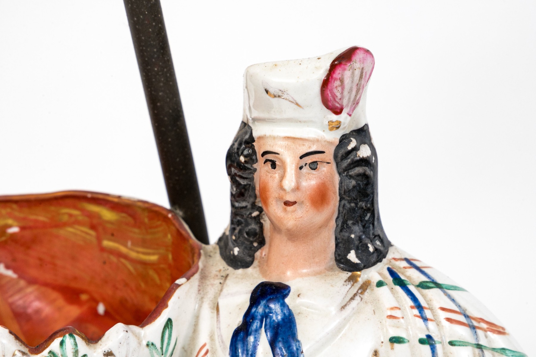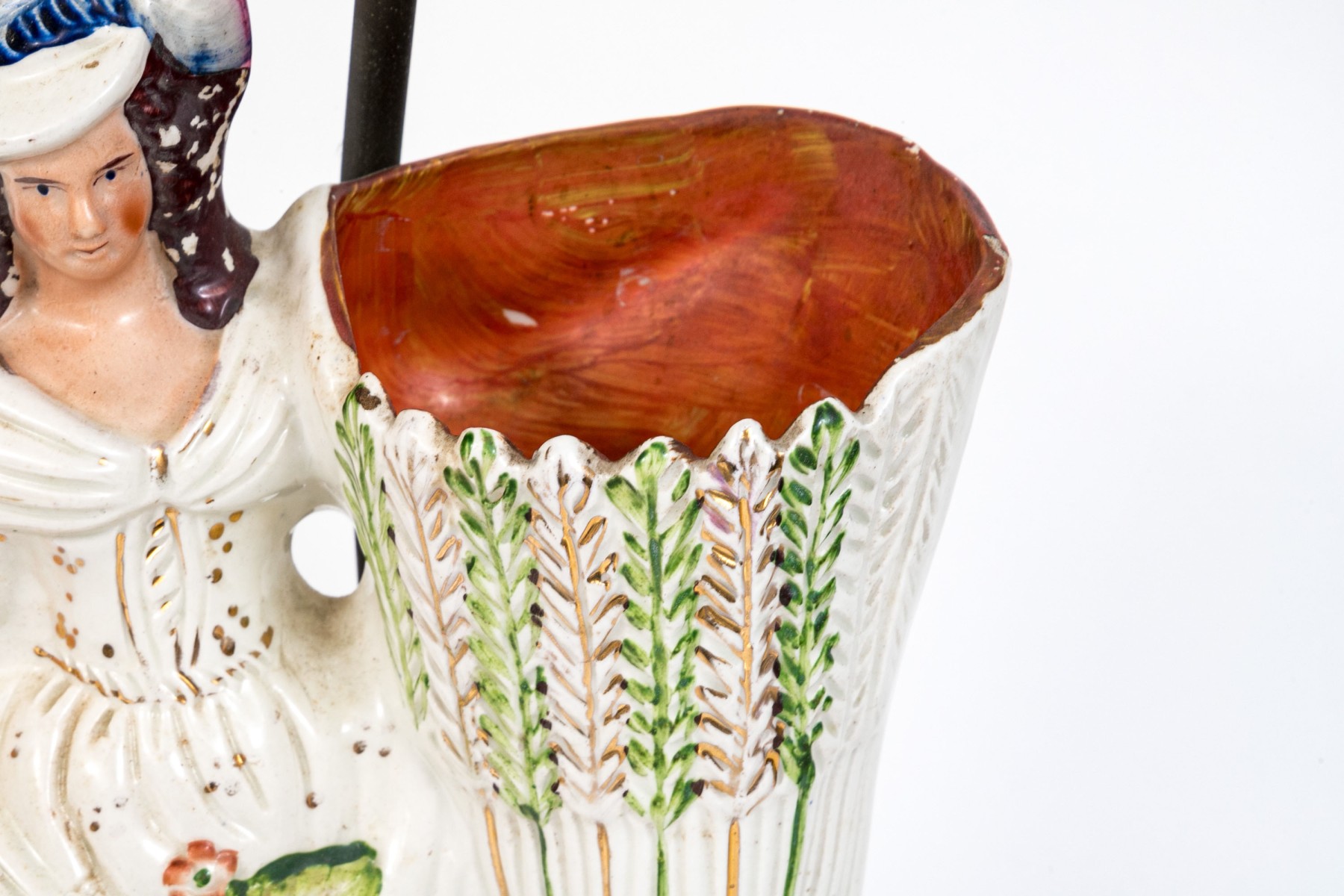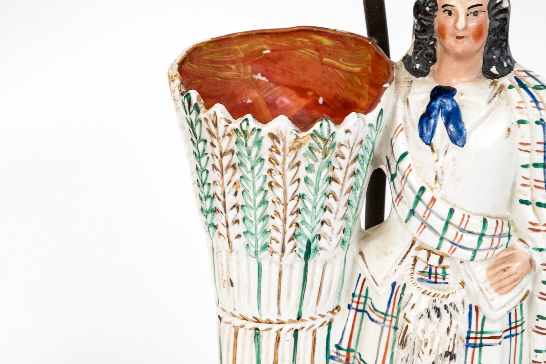 Comprised of a pair of Highlander with wheat sheaf spill vases that are hand painted and mounted and lamps. Lacking shades