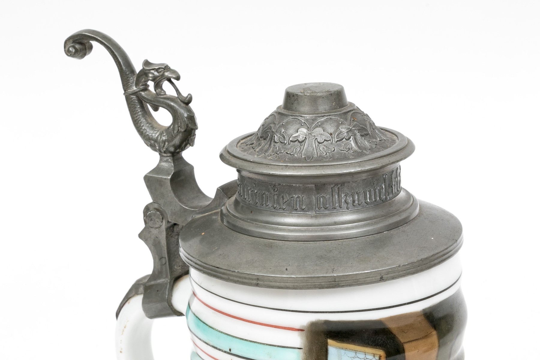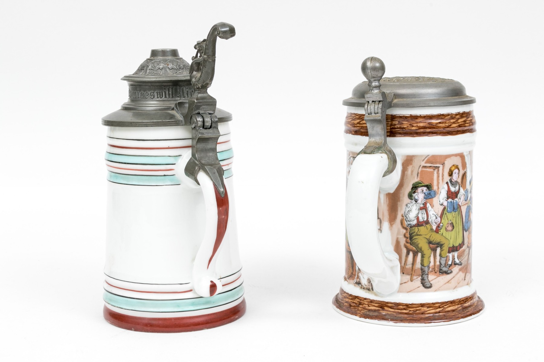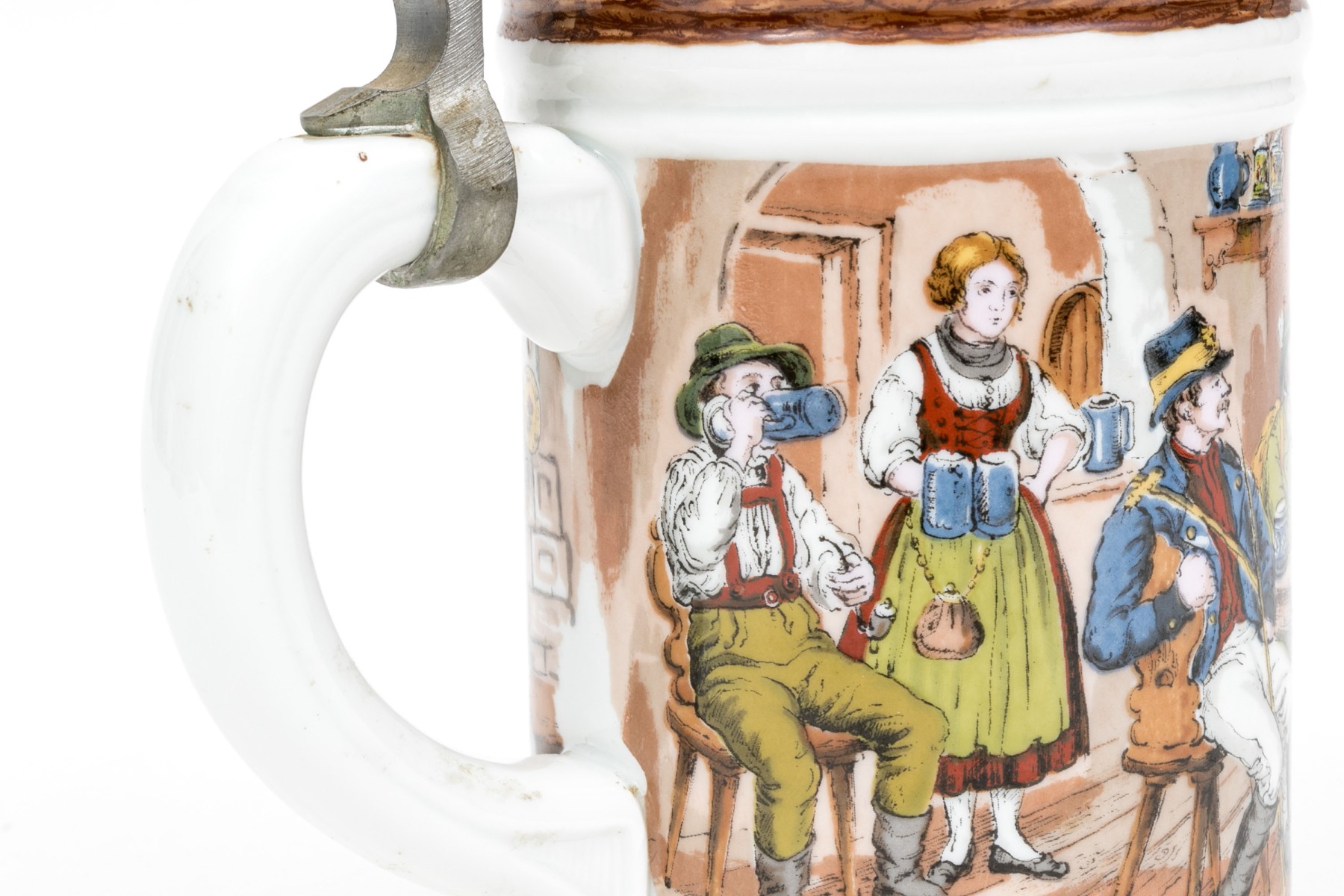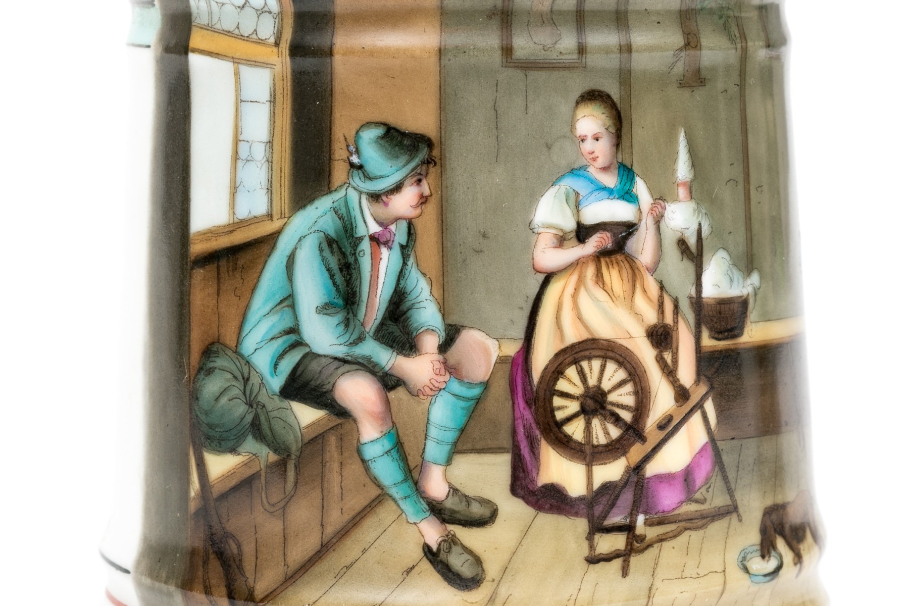 Pair of fabulous German lithopane steins, with scenes in the bottom of the stein