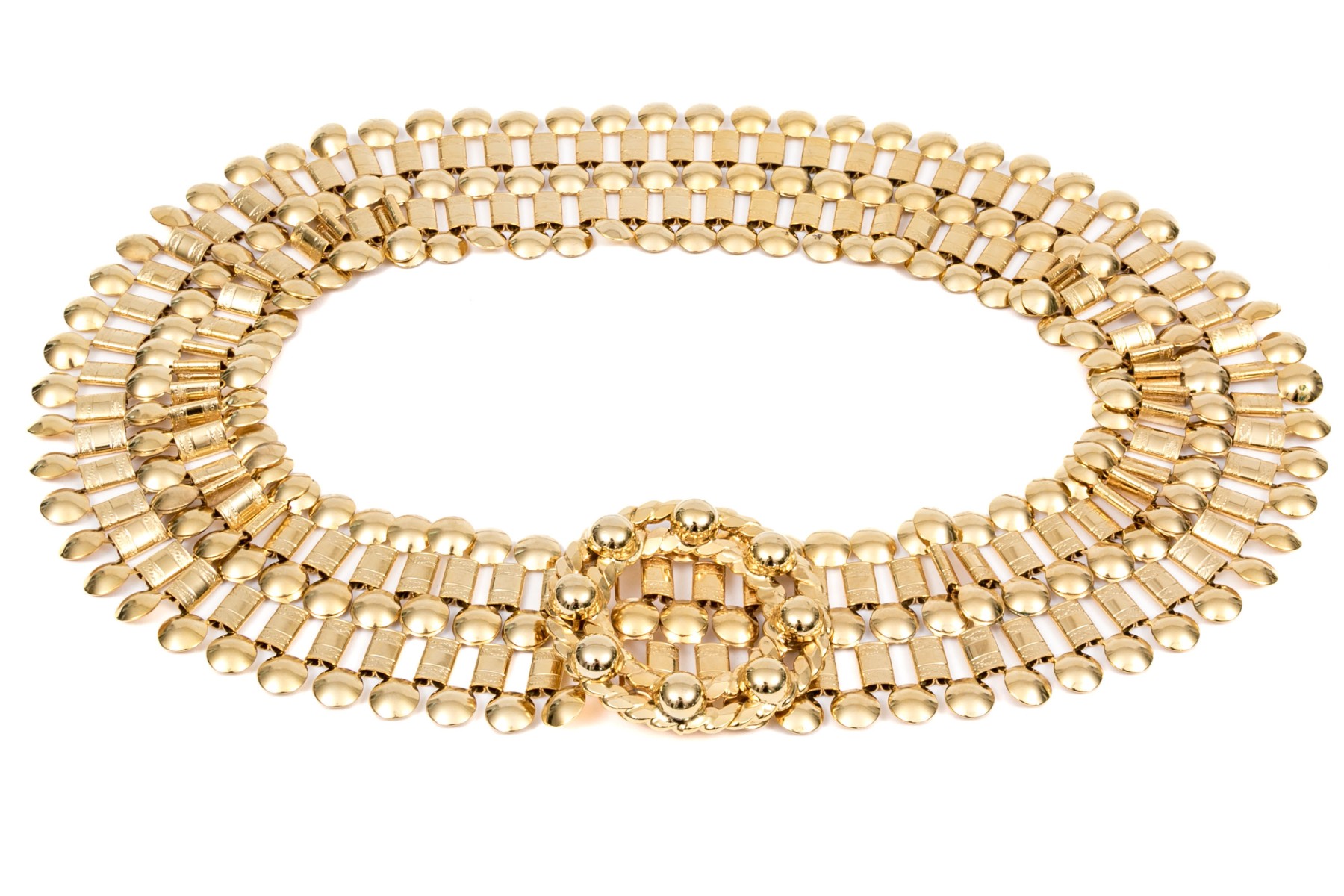 Pair Of Fabulous Vintage 1970's Gold Tone Metal Link Belts #322671. Black Rock Galleries provides high end estate liquidation services through online estate auctions and a 50,000 sq ft designer showroom. estate liquidator, estate sale, online auction, antiques, fine art, liquidation, clean outs, auction, consignment, interior design, fine jewelry, collectibles, appraisals, estate appraisals, estate services, decor, furniture, furniture consignment, antique center, consignment shop. We offer appraisal services and specialize in fine art, jewelry, antiques and decorative arts. Sell with us. Black Rock Galleries is the tri-state's largest estate liquidator serving New England and the greater New York City area. We are the trusted source for expert appraisals, auction services, estate sales, and consignments. Black Rock Galleries is the east coast's largest and most trusted estate liquidator, with locations in Connecticut, greater Boston, MA and Raleigh, NC, Fairfield, Southport, Apex, TX. We are the best source for expert appraisals, auction services, estate sales and consignments. We have served thousands of families and estates with compassion, professionalism and expertise. BRG works with attorneys, executors, realtors and families to bring the greatest return on personal and estate property in the current market. Our unique combination of services make us the easy choice to get the job done in a timely and stress-free manner. We are with you from the initial consultation to the final clean out. Our house-built online auction software platform offers clients a dynamic approach to liquidating their personal property. This venue is most successful in bringing the best return with the least amount of disruption for our clients. See our services page for a complete description of this offering. Pair Of Fabulous Vintage 1970's Gold Tone Metal Link Belts #322671