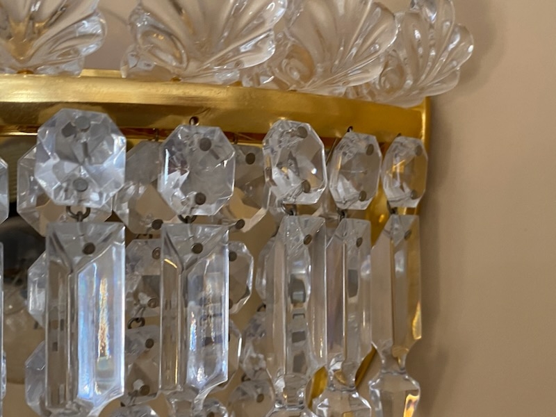 Pair Of Fine Baccarat Gilt Bronze And Crystal Demilune Sconces #4