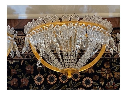Condition: Please review the detail photos. They are in overall fine condition with bright gilt finishes and fine cut crystals in an elegant style.