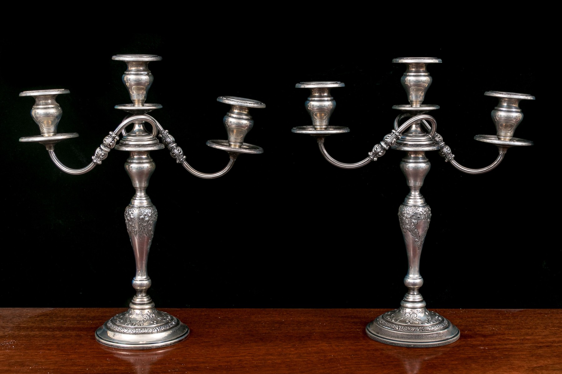 Pair Of Frank M. Whiting Weighted Sterling Silver Candelabras in "Lily" pattern.