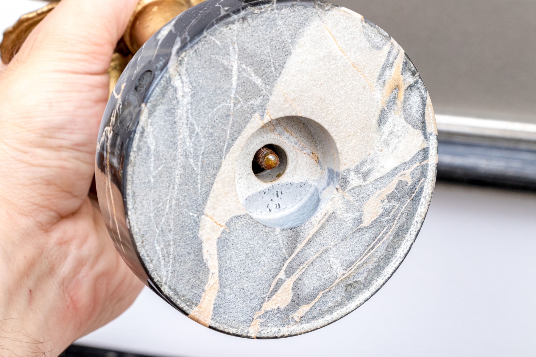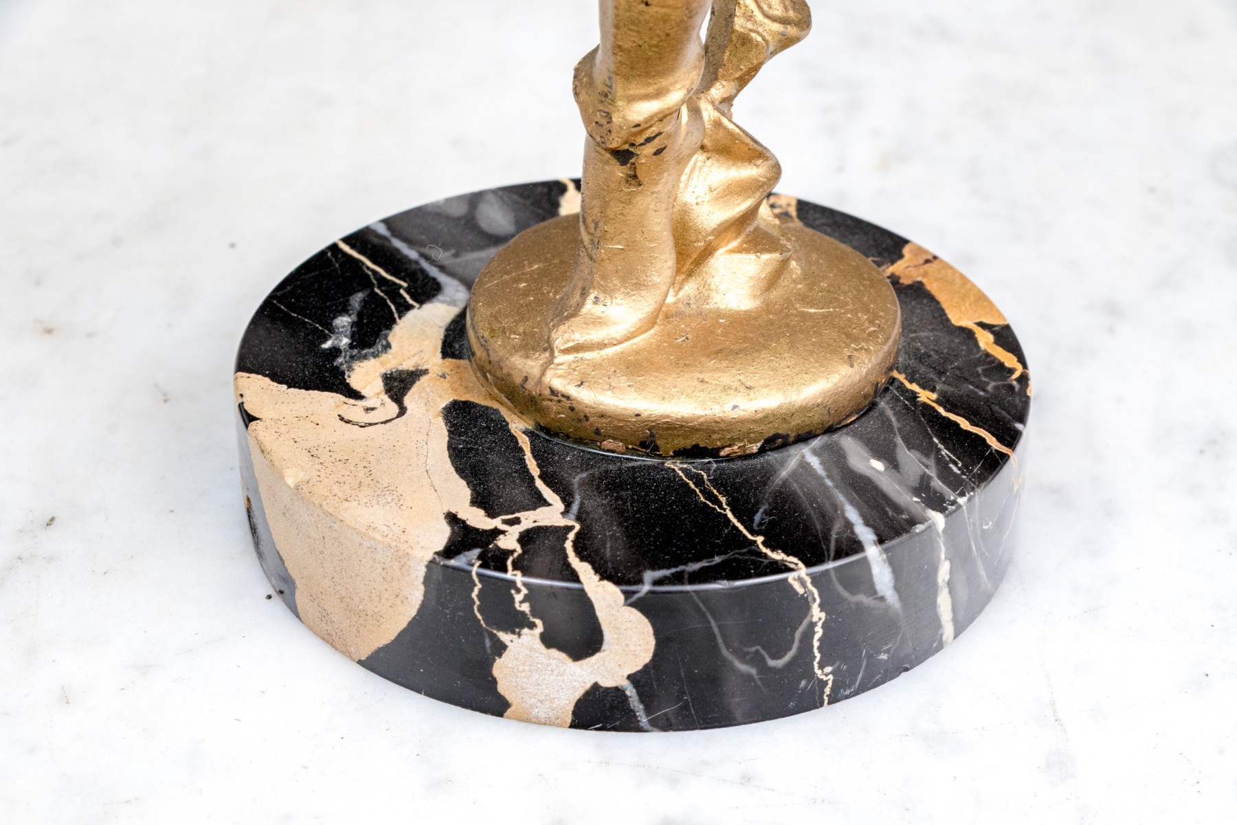 Some losses and wear to the figured fingers but overall presents well. Some glue residue can be seen where they were affixed to the marble bases.