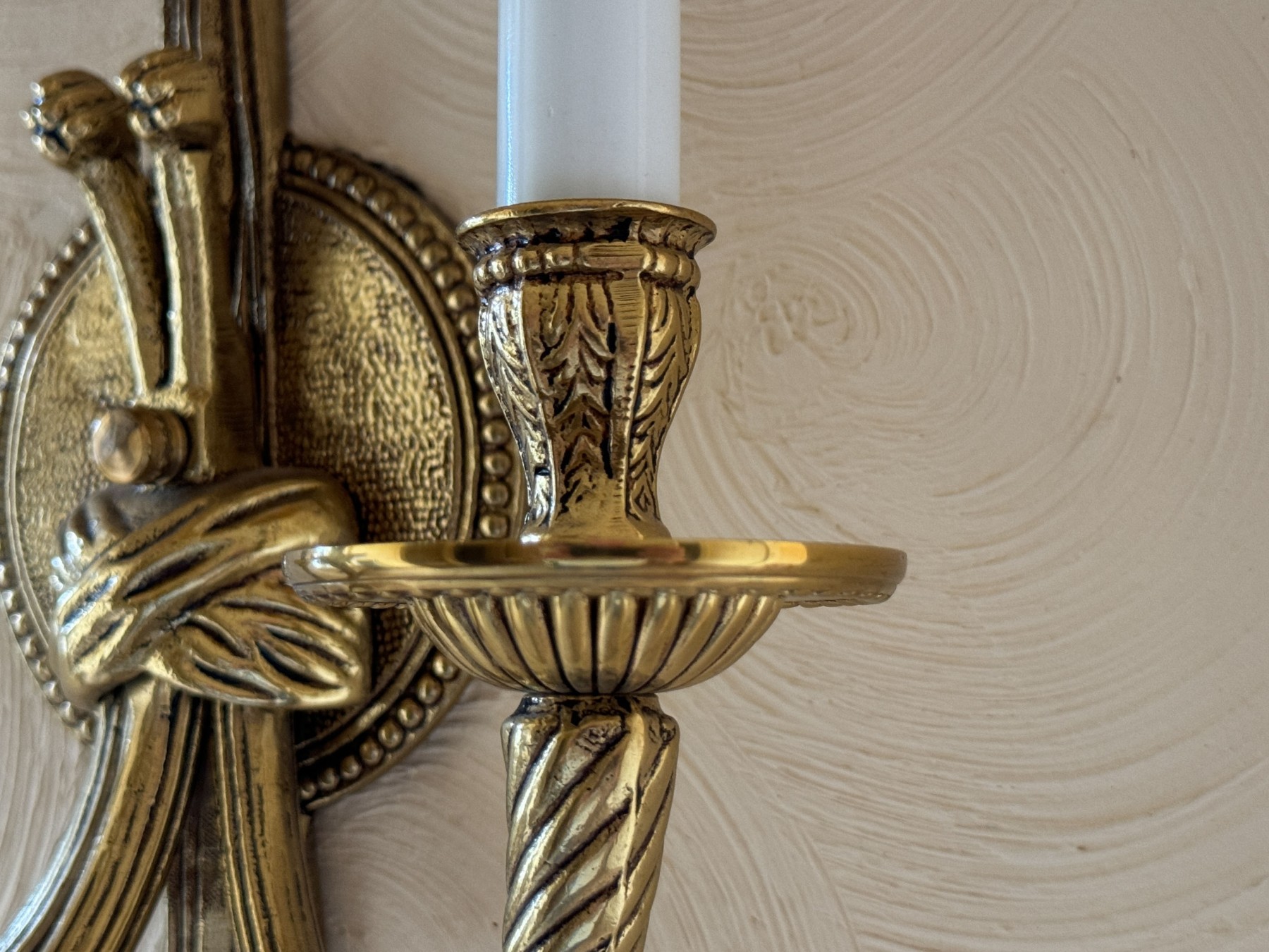 Pair Of French Louis XVI Style Gilt Brass Wall Sconces #340424. Black Rock Galleries provides high end estate liquidation services through online estate auctions and a 50,000 sq ft designer showroom. estate liquidator, estate sale, online auction, antiques, fine art, liquidation, clean outs, auction, consignment, interior design, fine jewelry, collectibles, appraisals, estate appraisals, estate services, decor, furniture, furniture consignment, antique center, consignment shop. We offer appraisal services and specialize in fine art, jewelry, antiques and decorative arts. Sell with us. Black Rock Galleries is the tri-state's largest estate liquidator serving New England and the greater New York City area. We are the trusted source for expert appraisals, auction services, estate sales, and consignments. Black Rock Galleries is the east coast's largest and most trusted estate liquidator, with locations in Connecticut, greater Boston, MA and Raleigh, NC, Fairfield, Southport, Apex, TX. We are the best source for expert appraisals, auction services, estate sales and consignments. We have served thousands of families and estates with compassion, professionalism and expertise. BRG works with attorneys, executors, realtors and families to bring the greatest return on personal and estate property in the current market. Our unique combination of services make us the easy choice to get the job done in a timely and stress-free manner. We are with you from the initial consultation to the final clean out. Our house-built online auction software platform offers clients a dynamic approach to liquidating their personal property. This venue is most successful in bringing the best return with the least amount of disruption for our clients. See our services page for a complete description of this offering. Pair Of French Louis XVI Style Gilt Brass Wall Sconces #340424