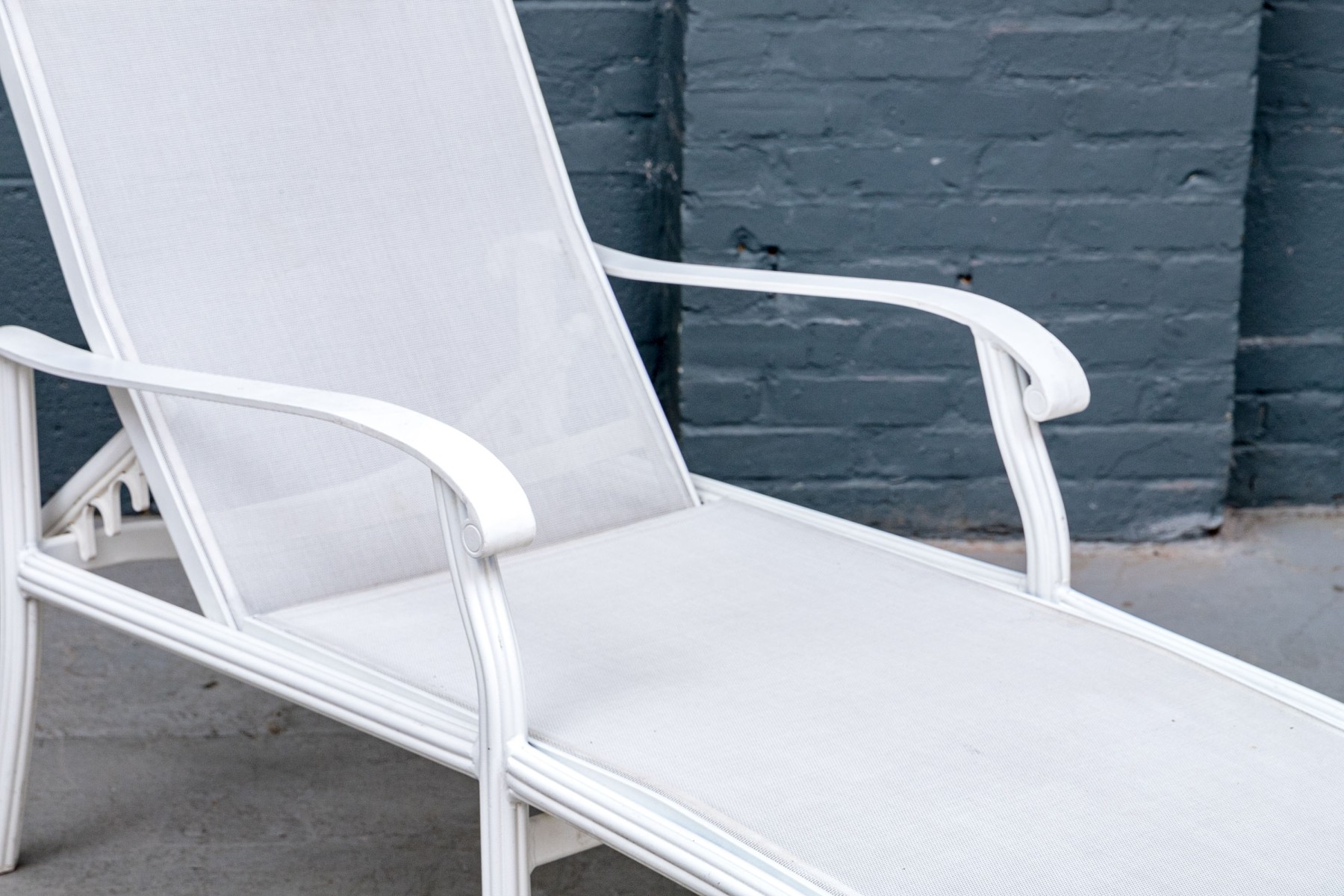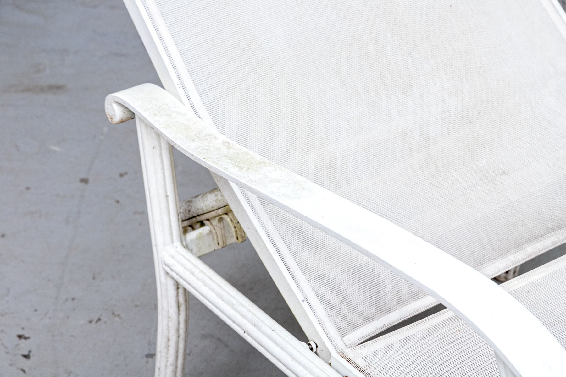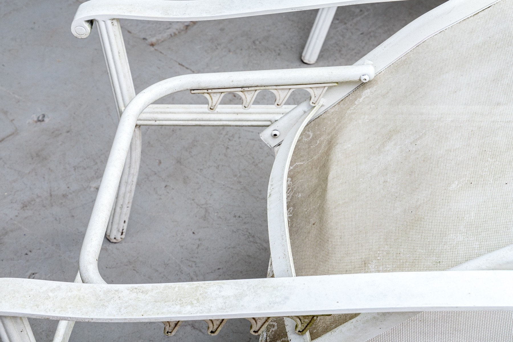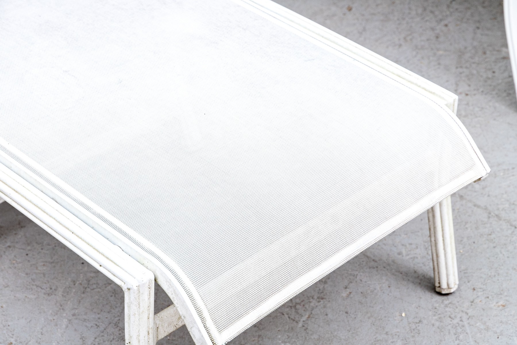 Each with white finished aluminum frames with mesh netted seats and seat backs.