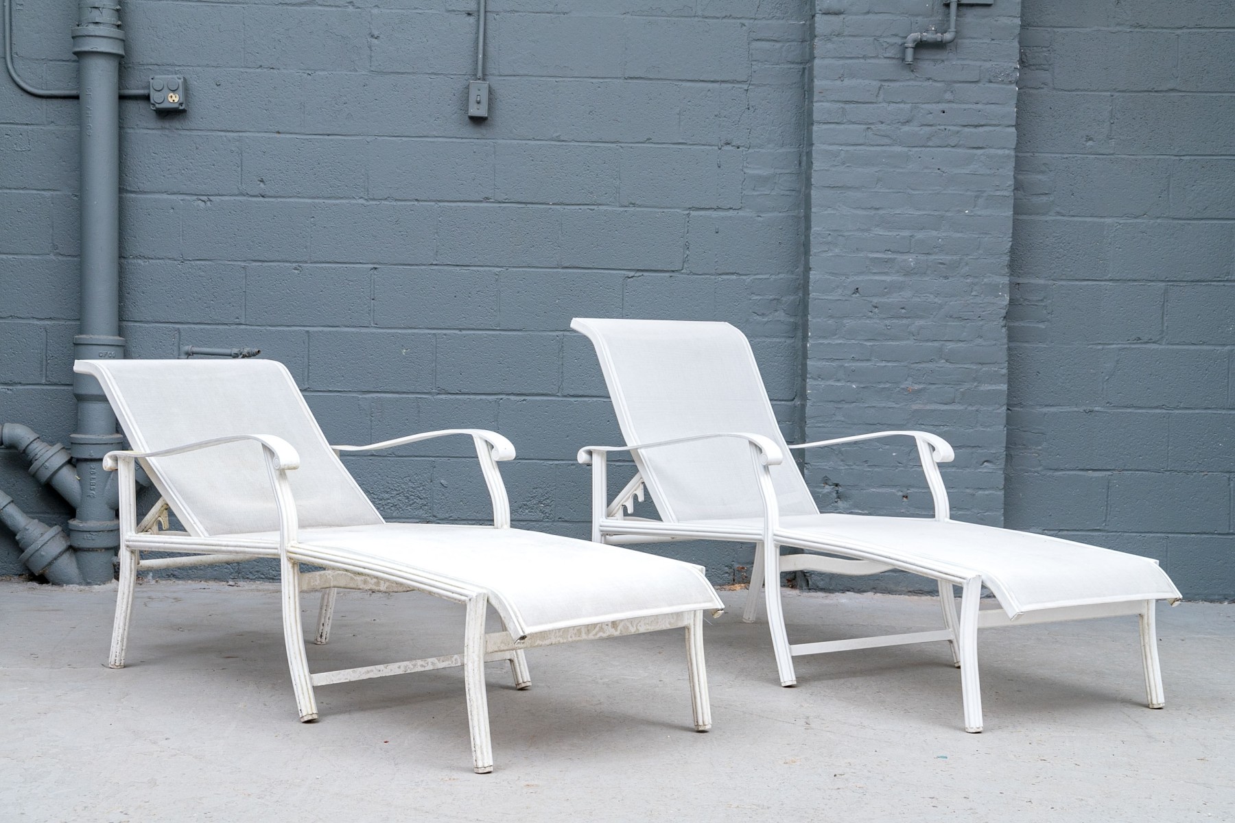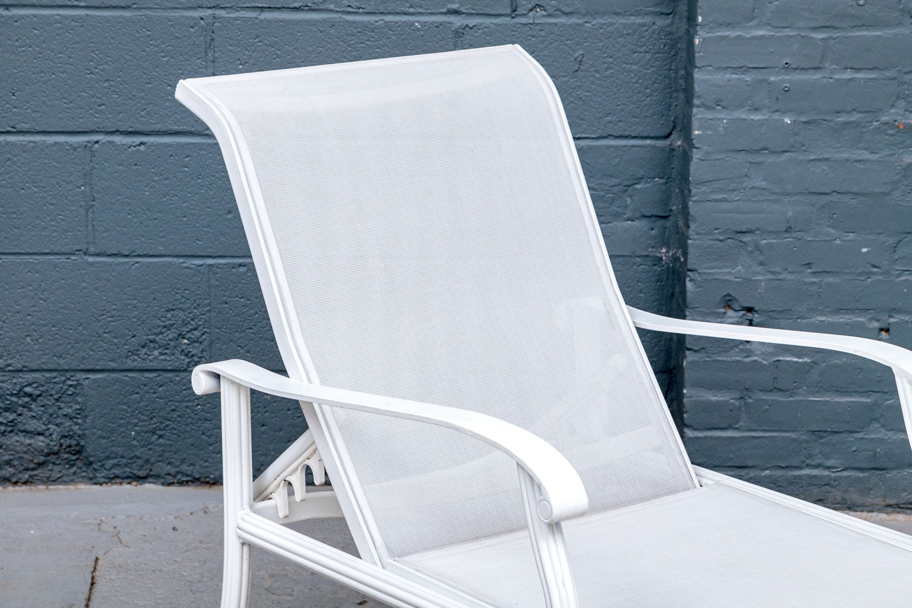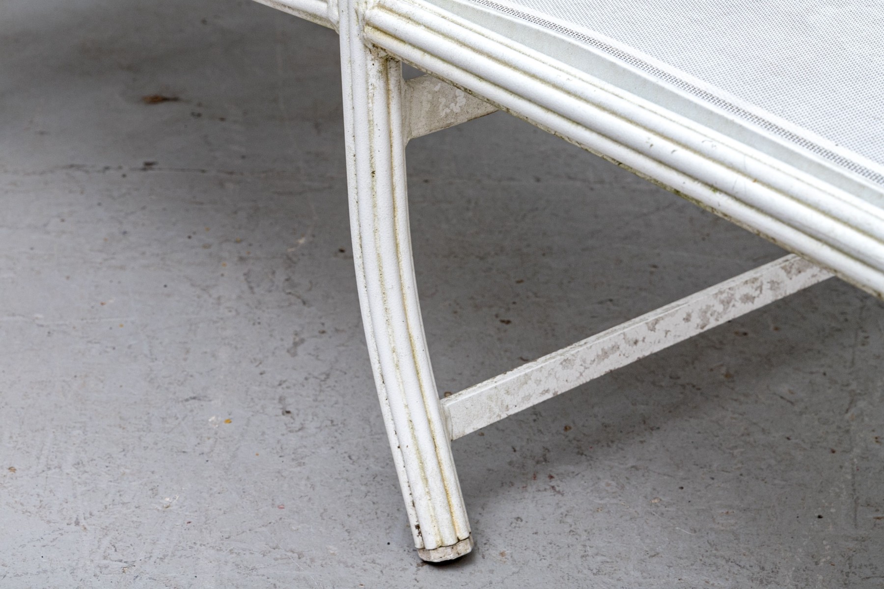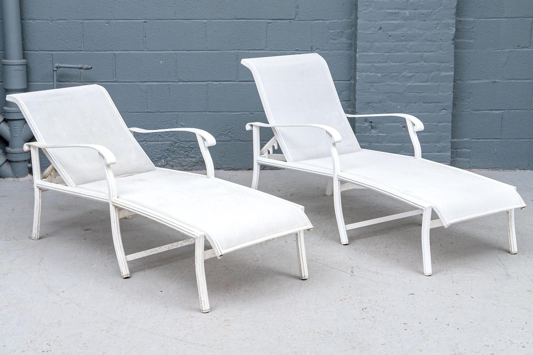 Each with white finished aluminum frames with mesh netted seats and seat backs.